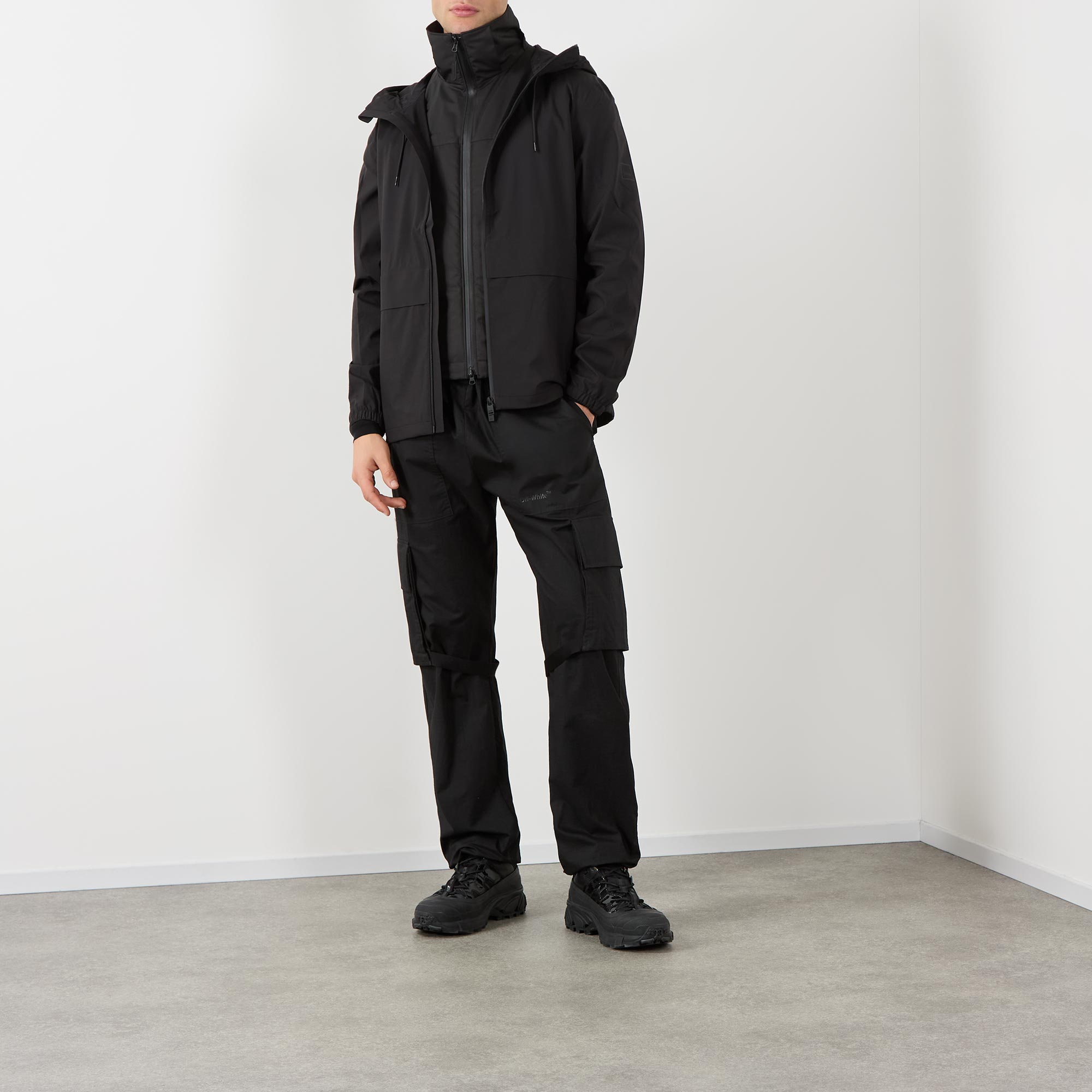 • Waterproof, coated zip closure, hood with drawstring adjustment, side and front zip pockets, rubberised logo detail, drawstring hem adjustment, mechanical stretch for comfort and movement, taped seams, matte surface, lightweight soft finish, windproof, breathable