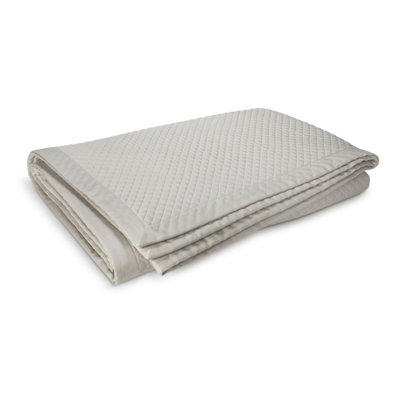 Cotton sateen, 300 threads/inch². A classic quilted cotton sateen bedcover and cushion cover, adds modernity to any room. Available in a selection of smart colours: Onyx, Cape Tan, Silver, White and Navy.