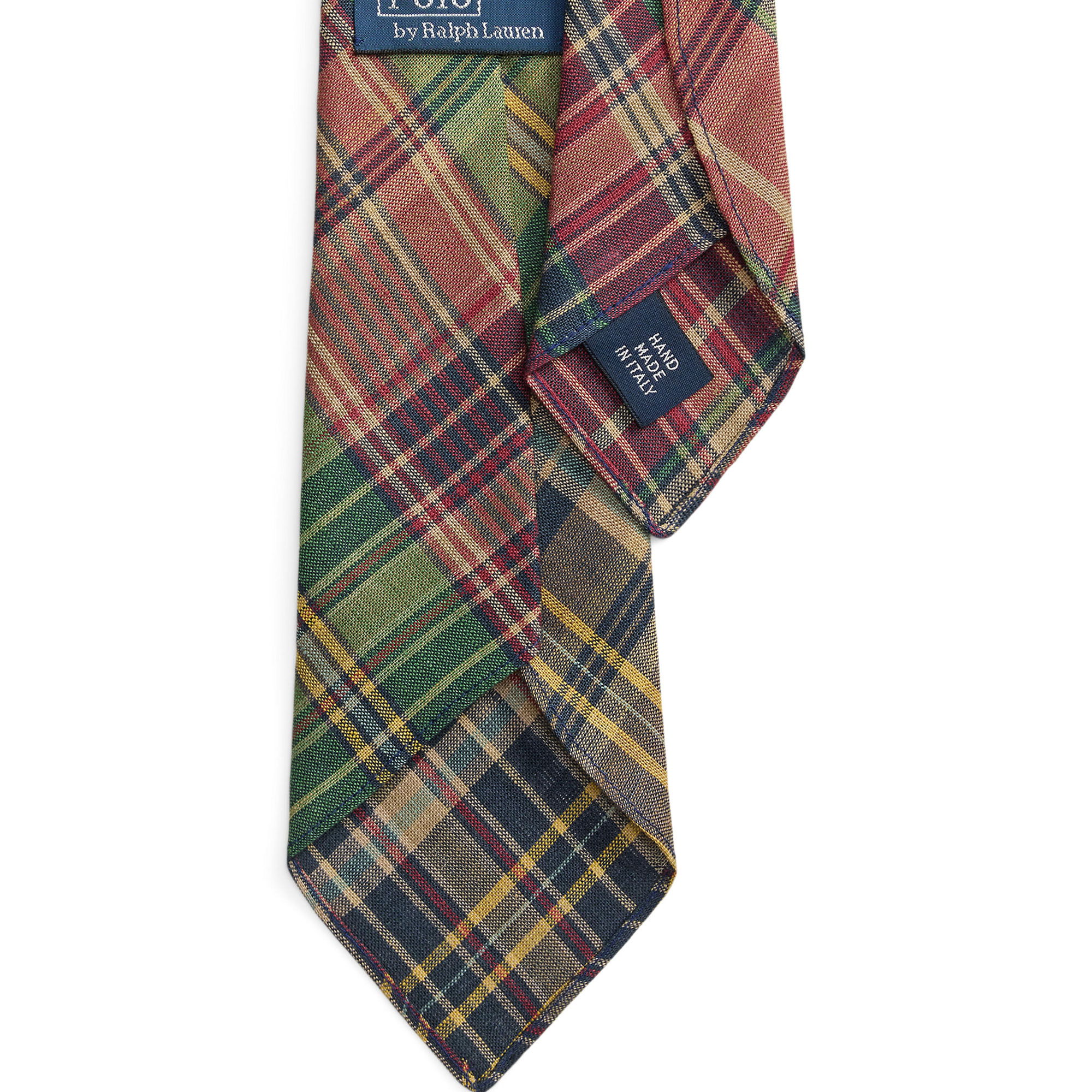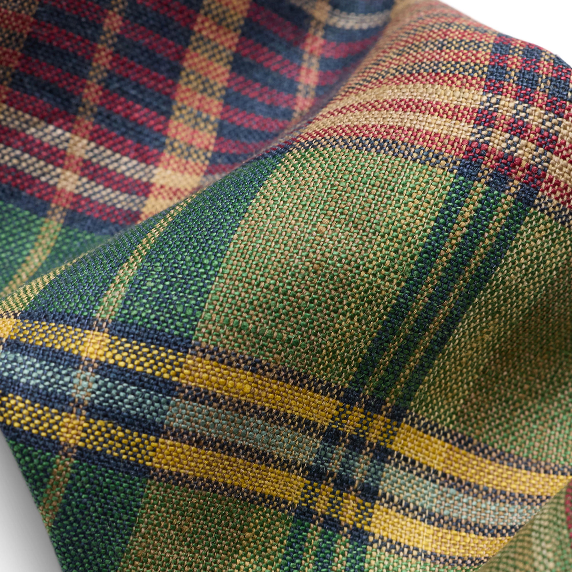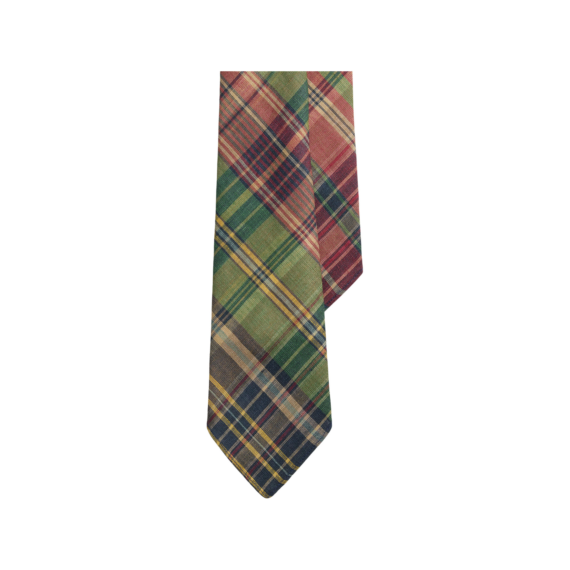 - Signature design, woven, hand-cut on a 45-degree bias, plaid check pattern, lightweight linen cloth