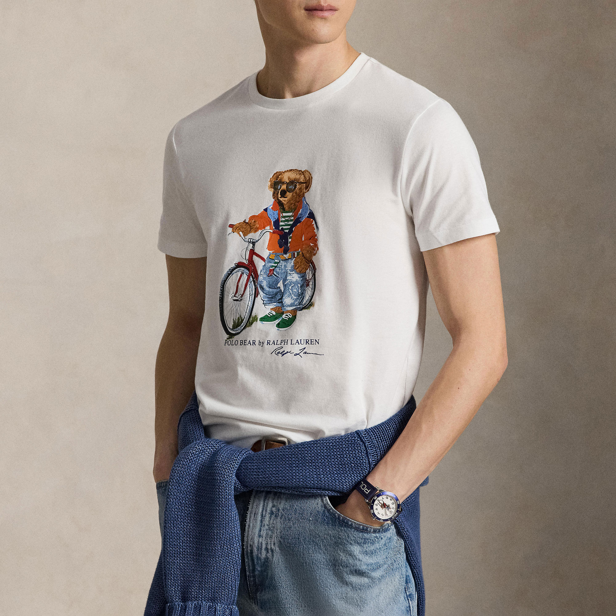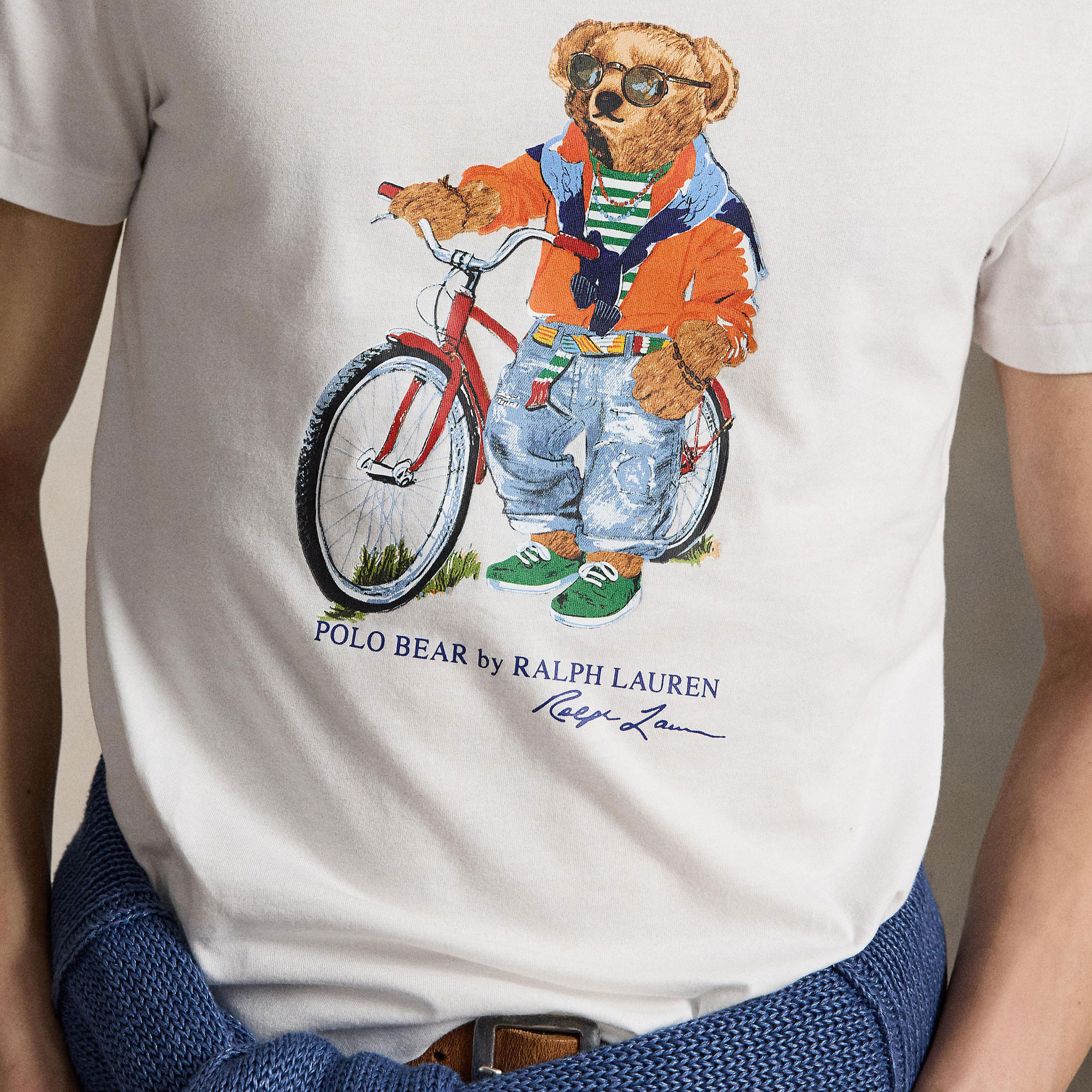 • Crew neckline, short sleeves, Polo Bear graphic, printed script logo, jersey fabric