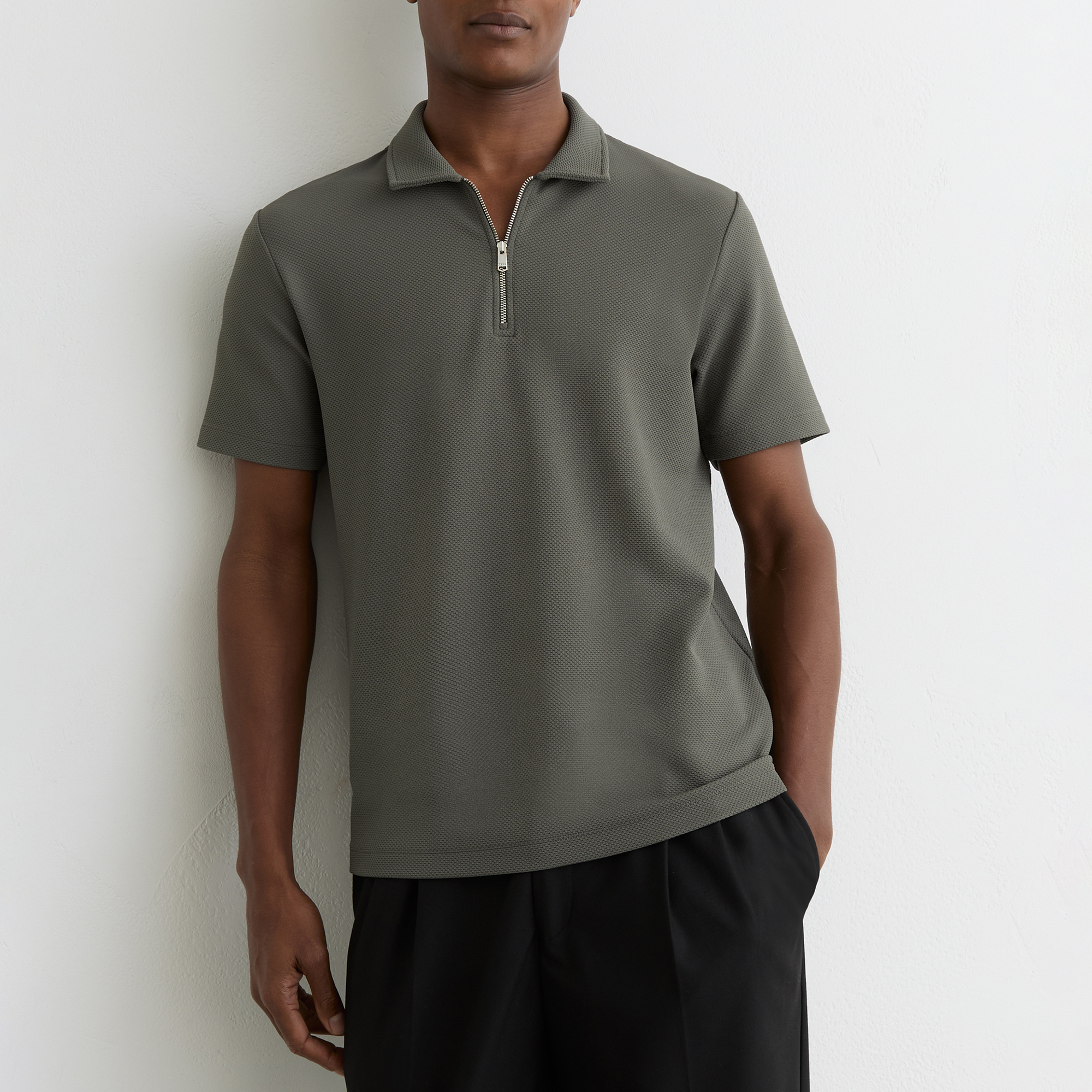 REISS Forno Textured Zip Polo Shirt