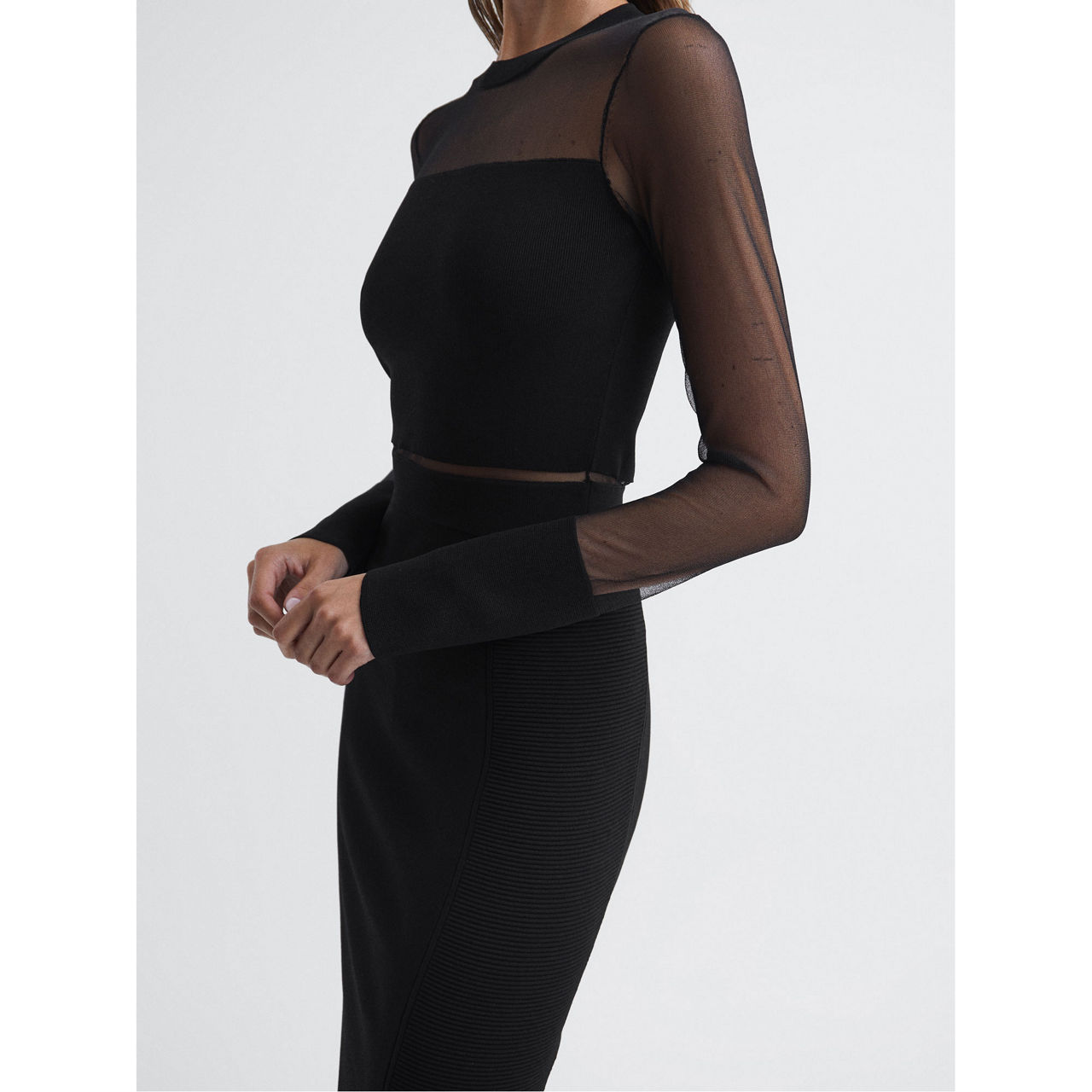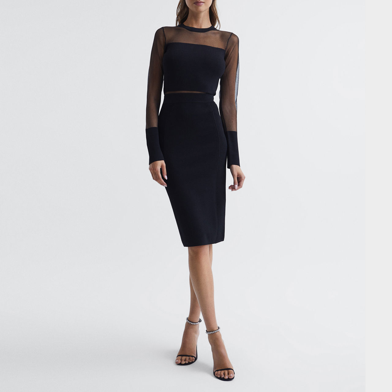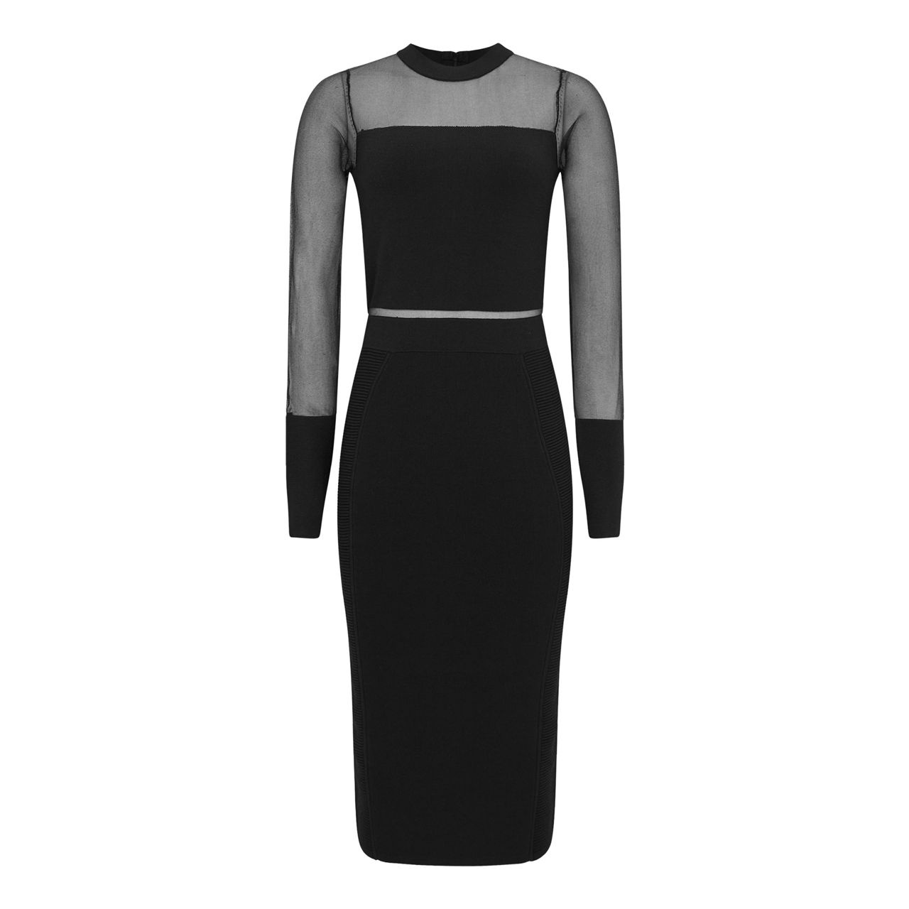 The Lyla dress from Reiss works a sleek bodycon fit, with sheer elements to the sleeves and shoulders for a captivating finish. Style with barely-there heels and glittering accessories for after-dark allure.