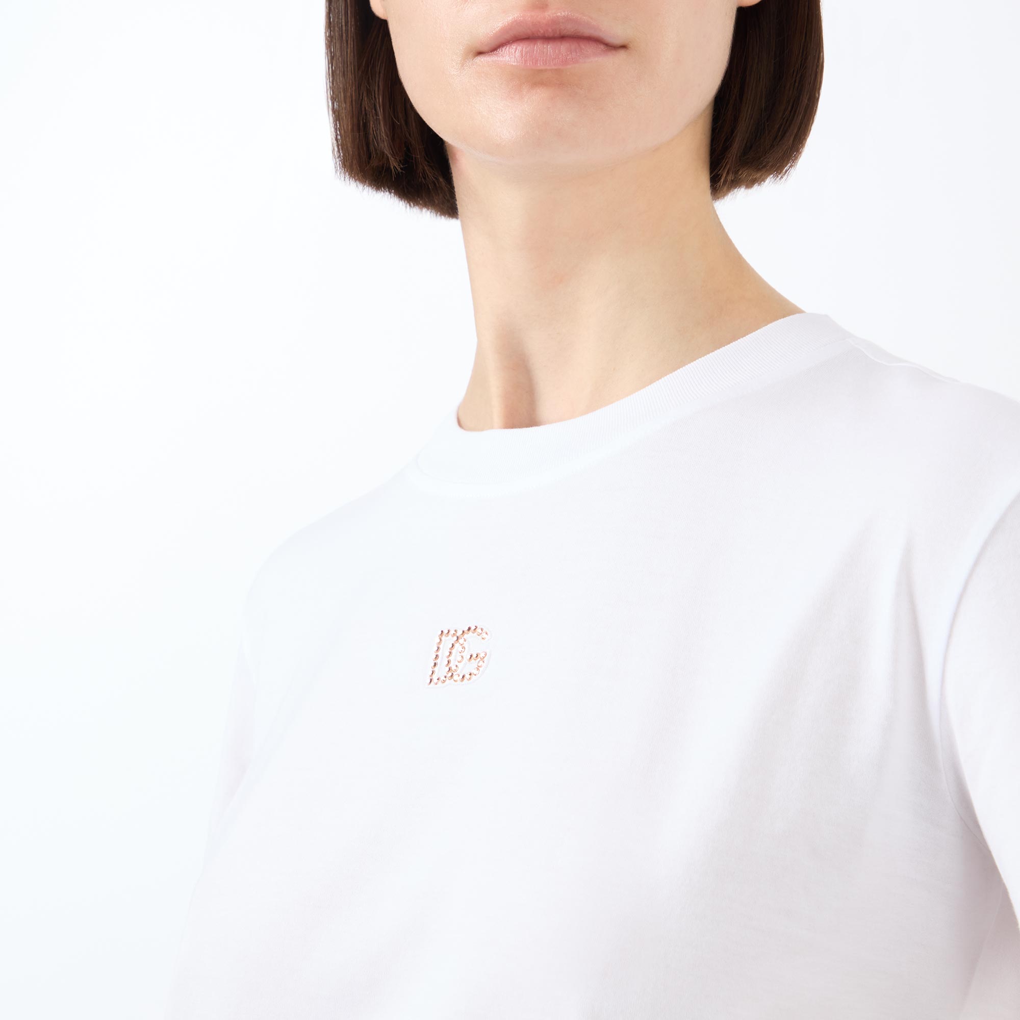 Elevated wardrobe staples are the core building blocks forming the base of many looks throughout Dolce & Gabbana's SS26 collection — take this T-shirt. Crafted from pure cotton and cut to a round neck silhouette, it features short sleeves and a straight hem, finished with a rhinestone-embellished monogram logo detail at the centre of the chest.