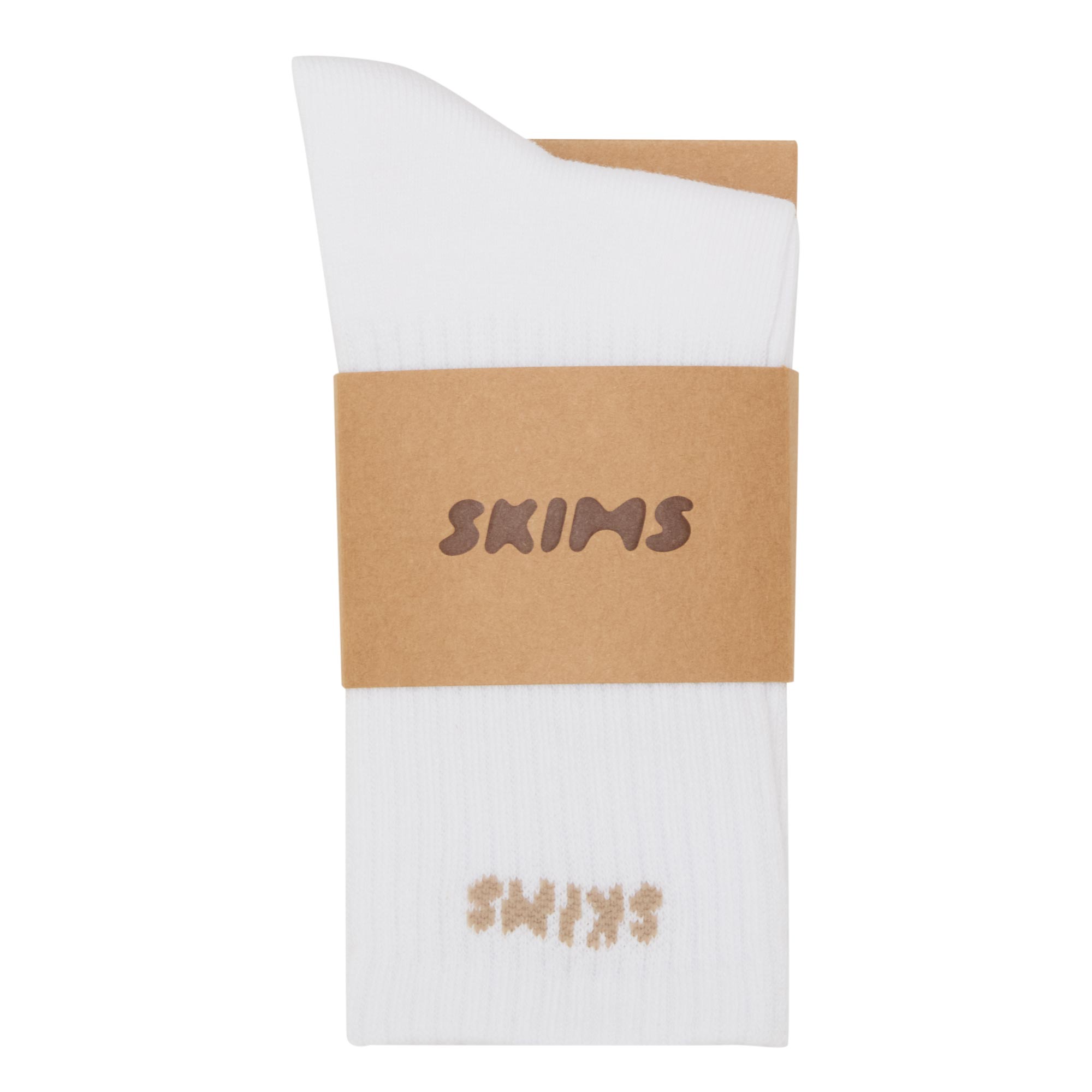 Everyday essential. Designed in SKIMS' mid-weight cotton-elastic blend, these crew socks feature ribbed knit detailing at the cuff, including a SKIMS logo.