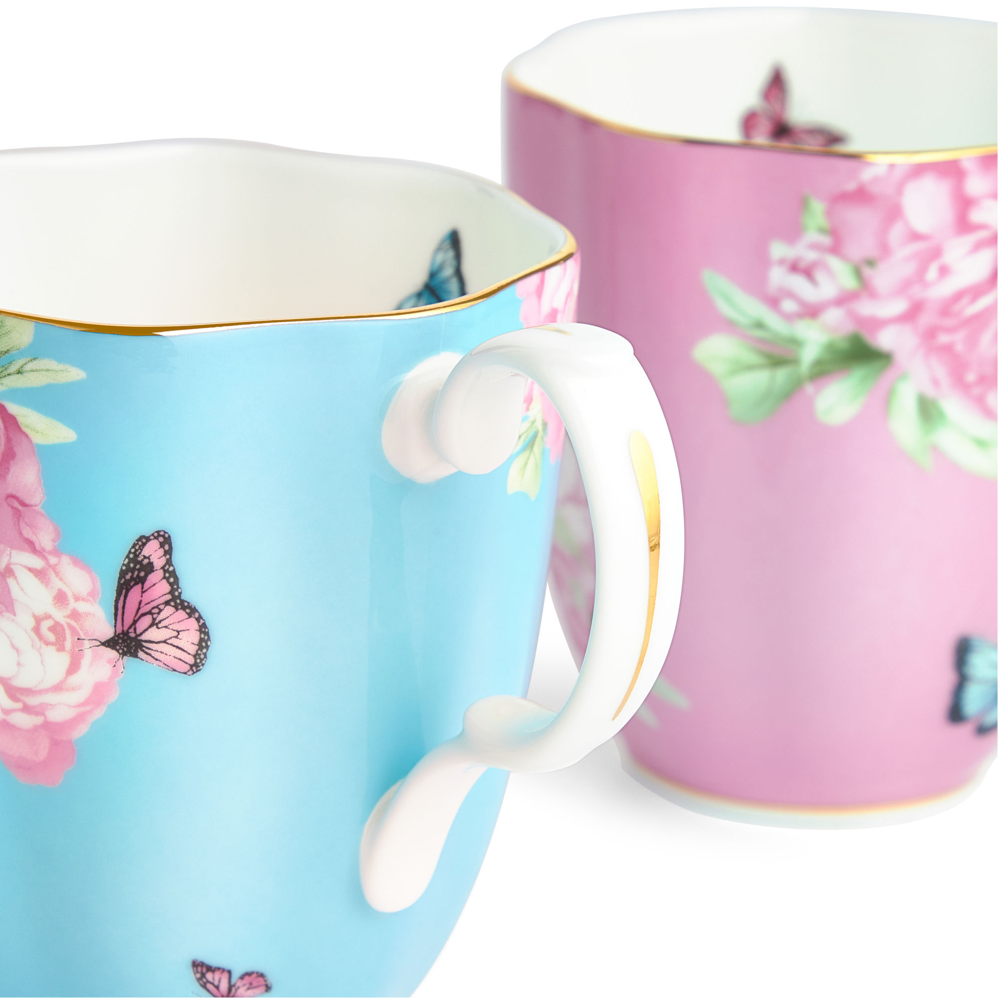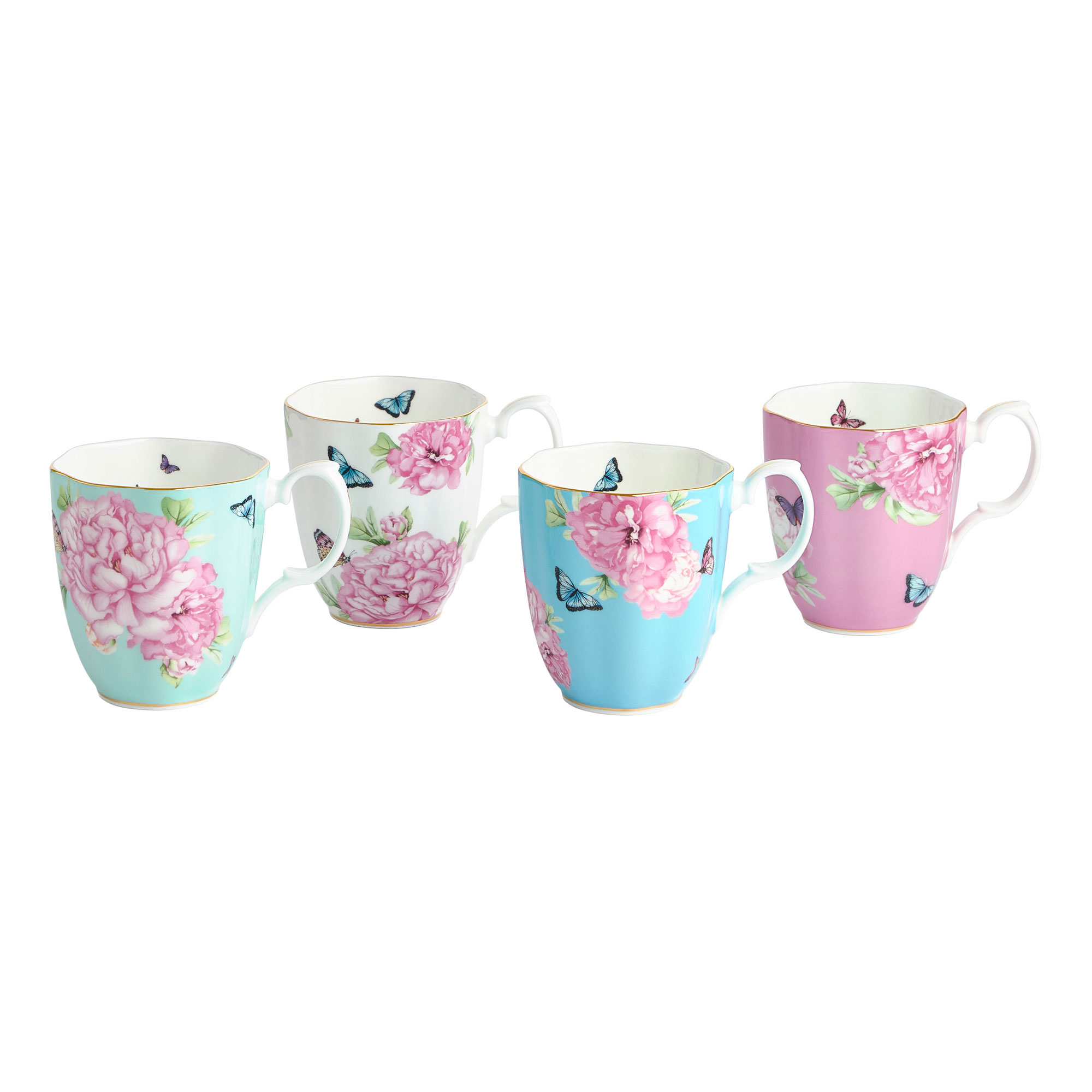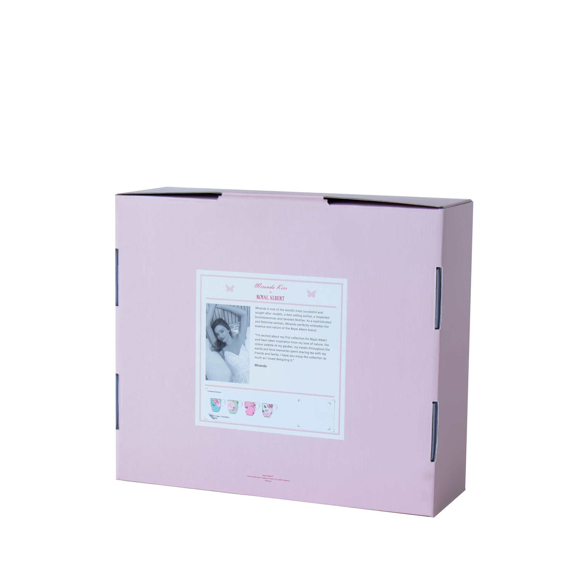 This beautiful four-piece Friendship Mug set from the Miranda Kerr Collection is made of fine bone china. Decorated with bright floral patterns and butterfly accents, this charming mix and match set is ideal for hosting family and friends at home for tea.