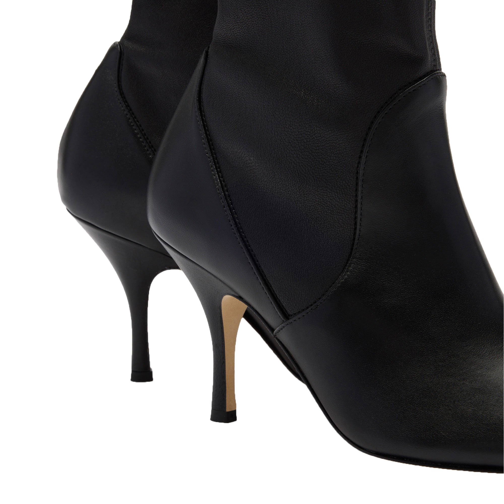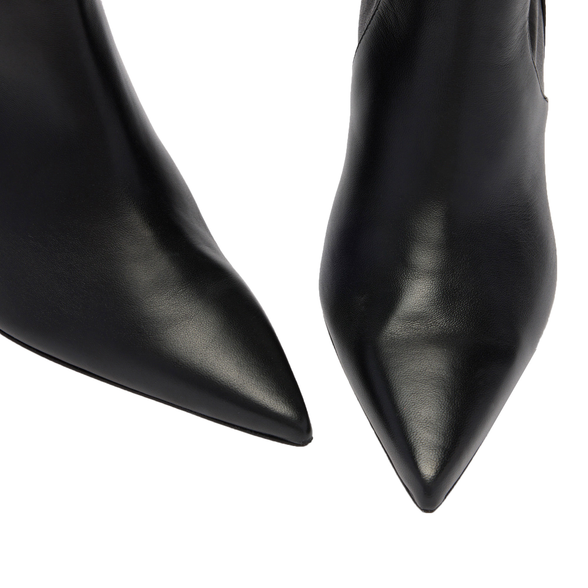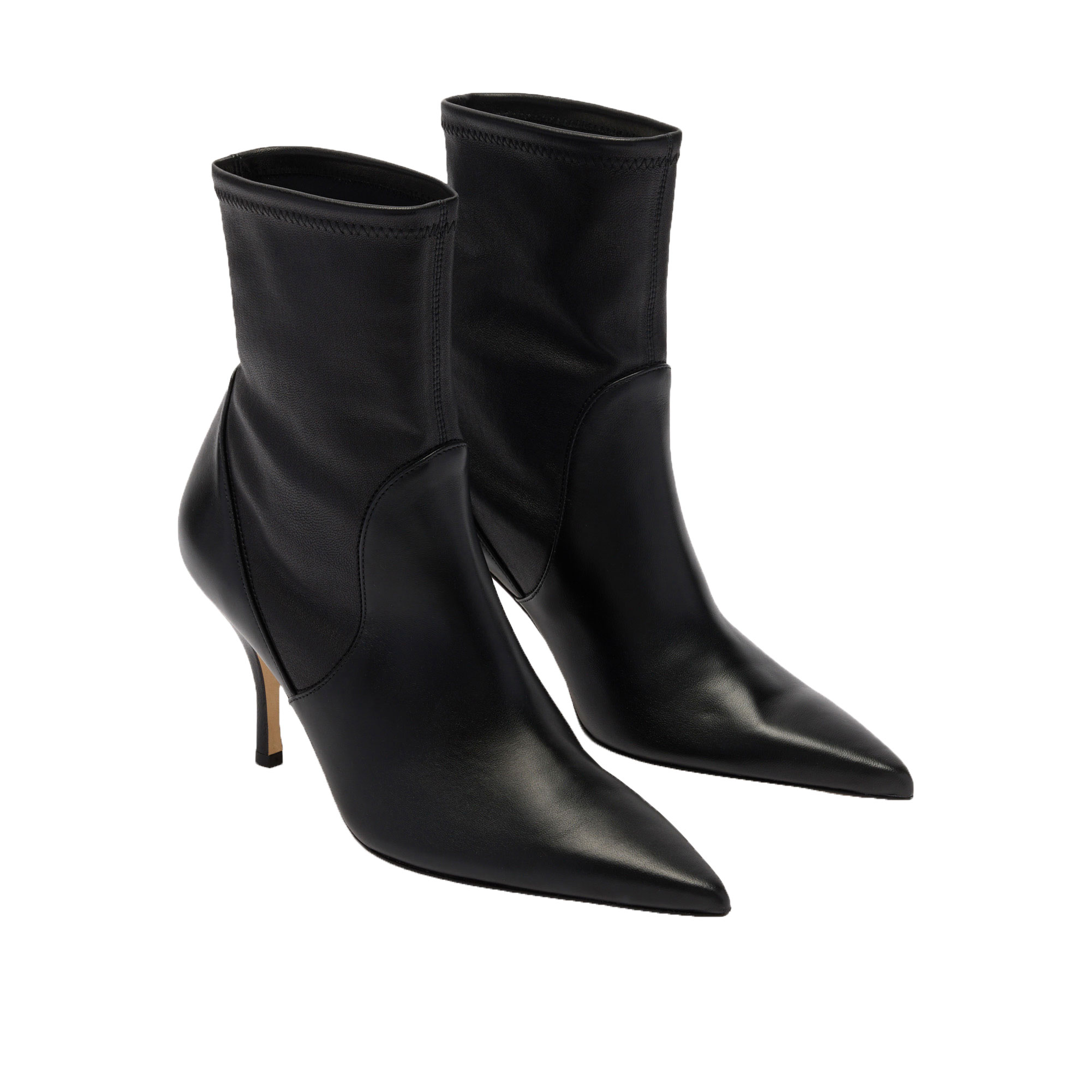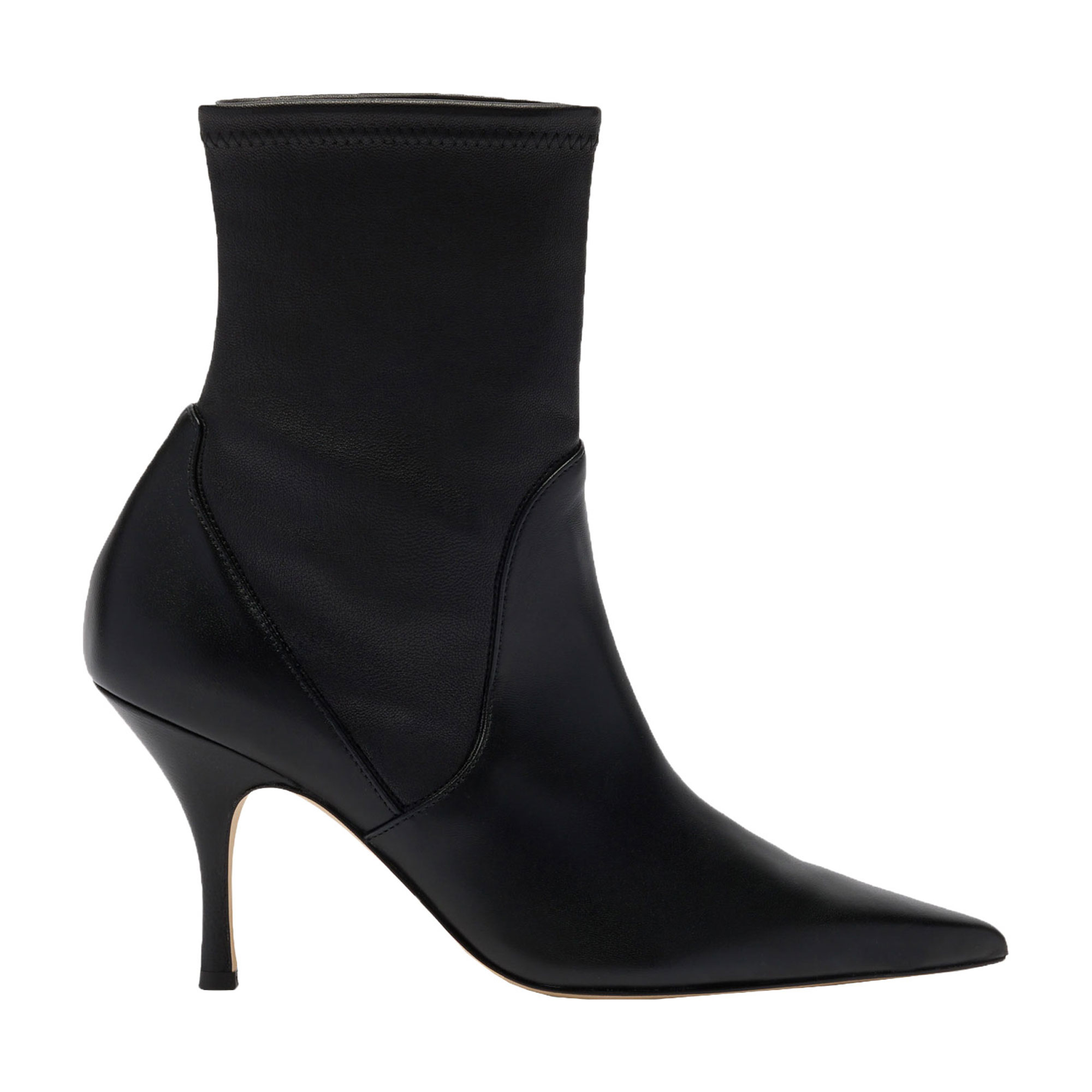 - Pointed toe, sculpted stiletto, bold ankle boot, clean lean silhouette
