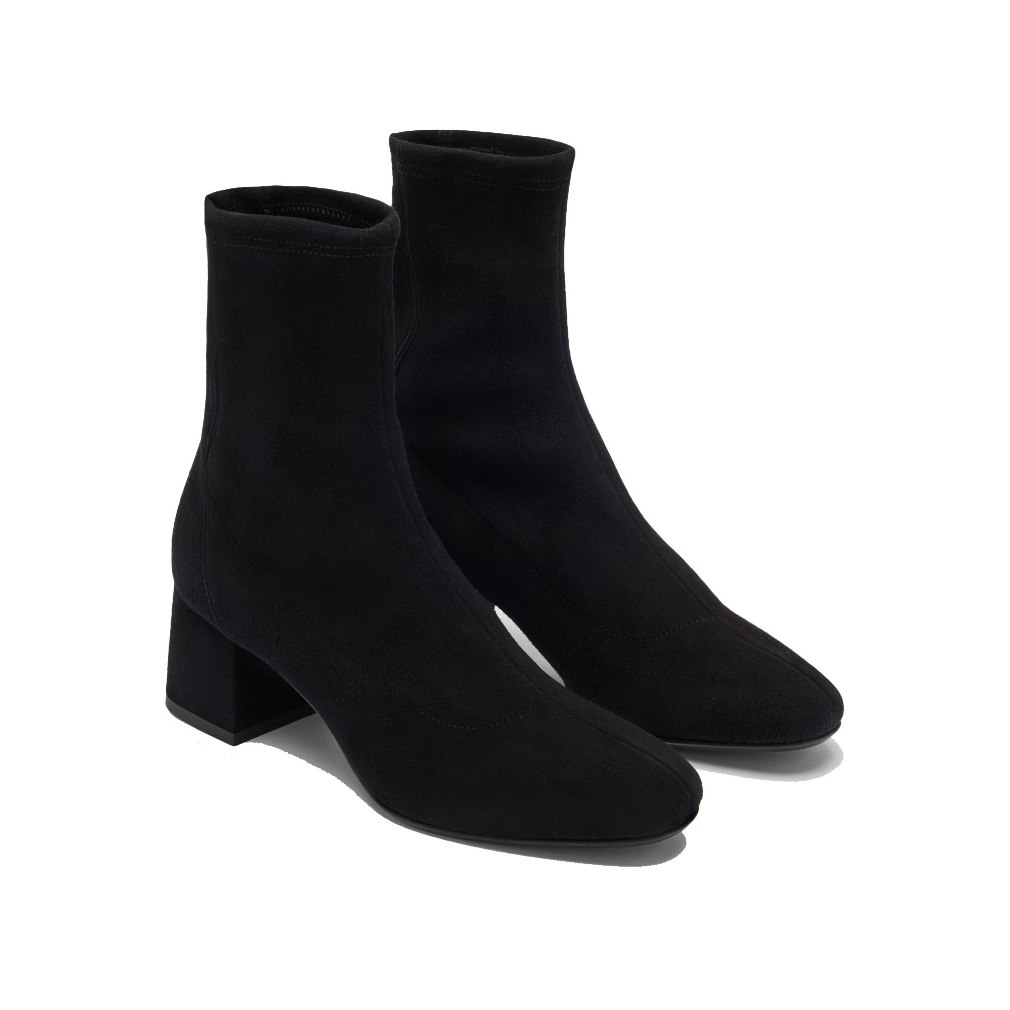 - Rounded toe, clean lines, block heel, pull-on stretch-fit, effortlessly sculpted