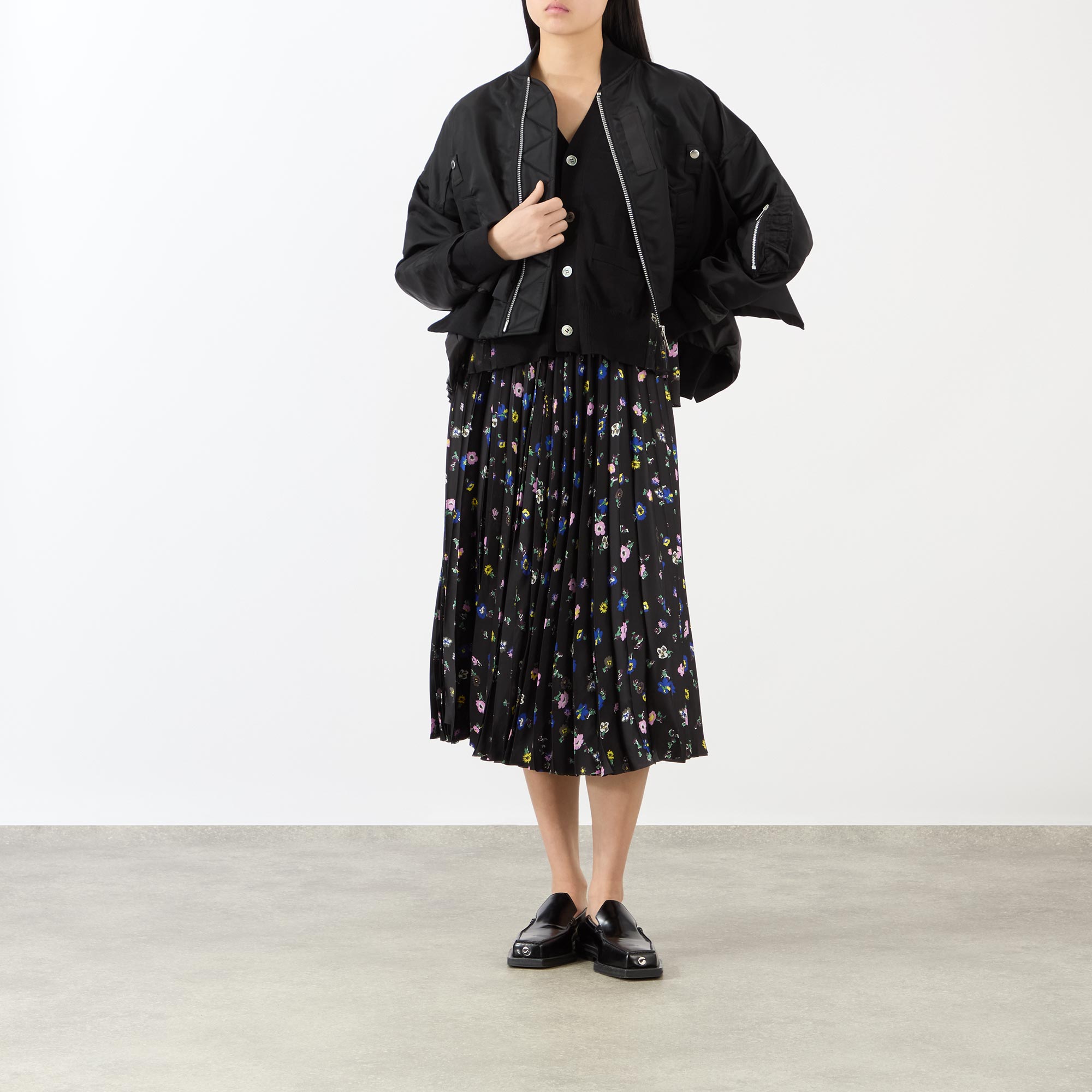 SACAI High-Rise Floral Pleated Skirt
