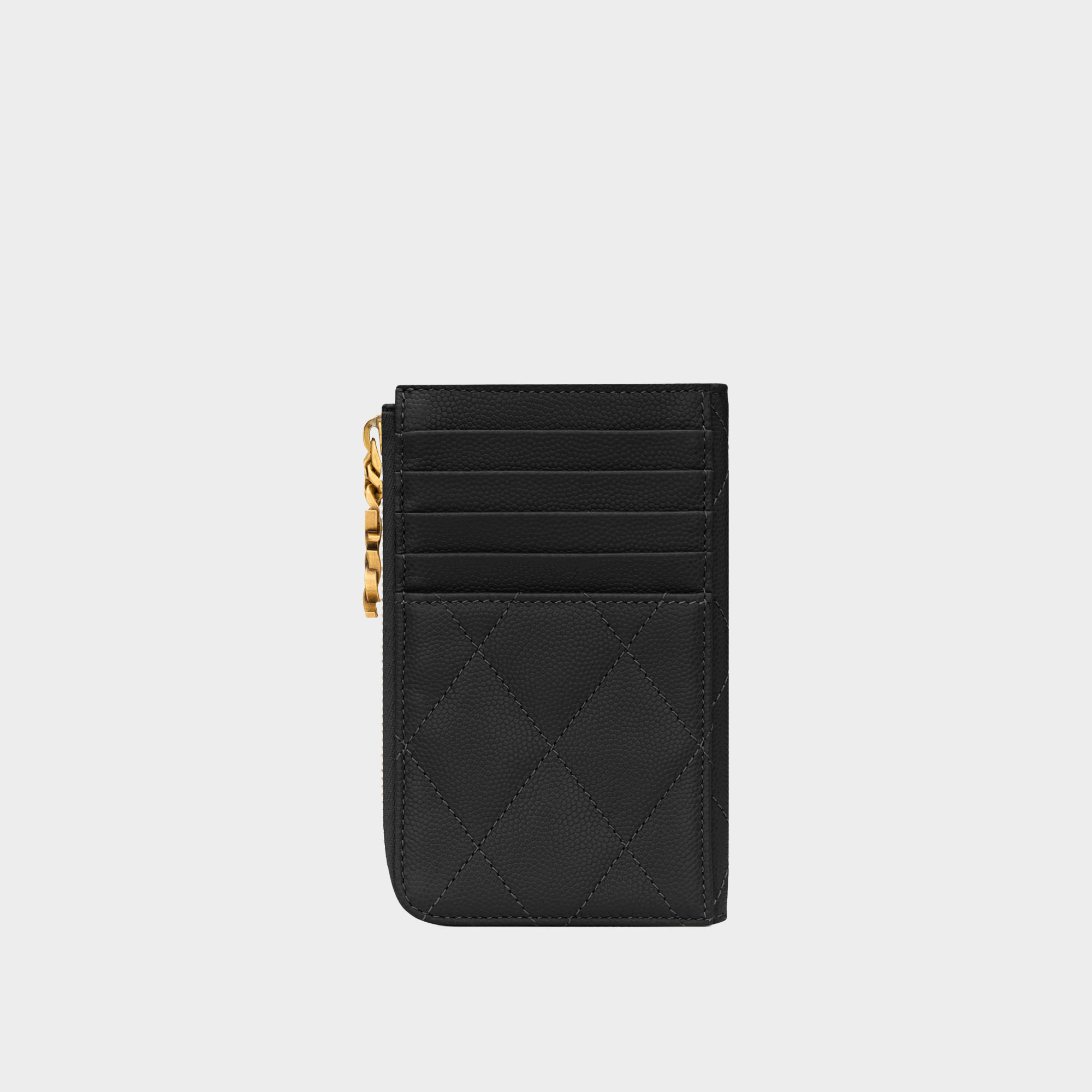- Zip fastening, Cassandre jewellery zip pull, diamond-quilted topstitching, gold-tone hardware, card slots