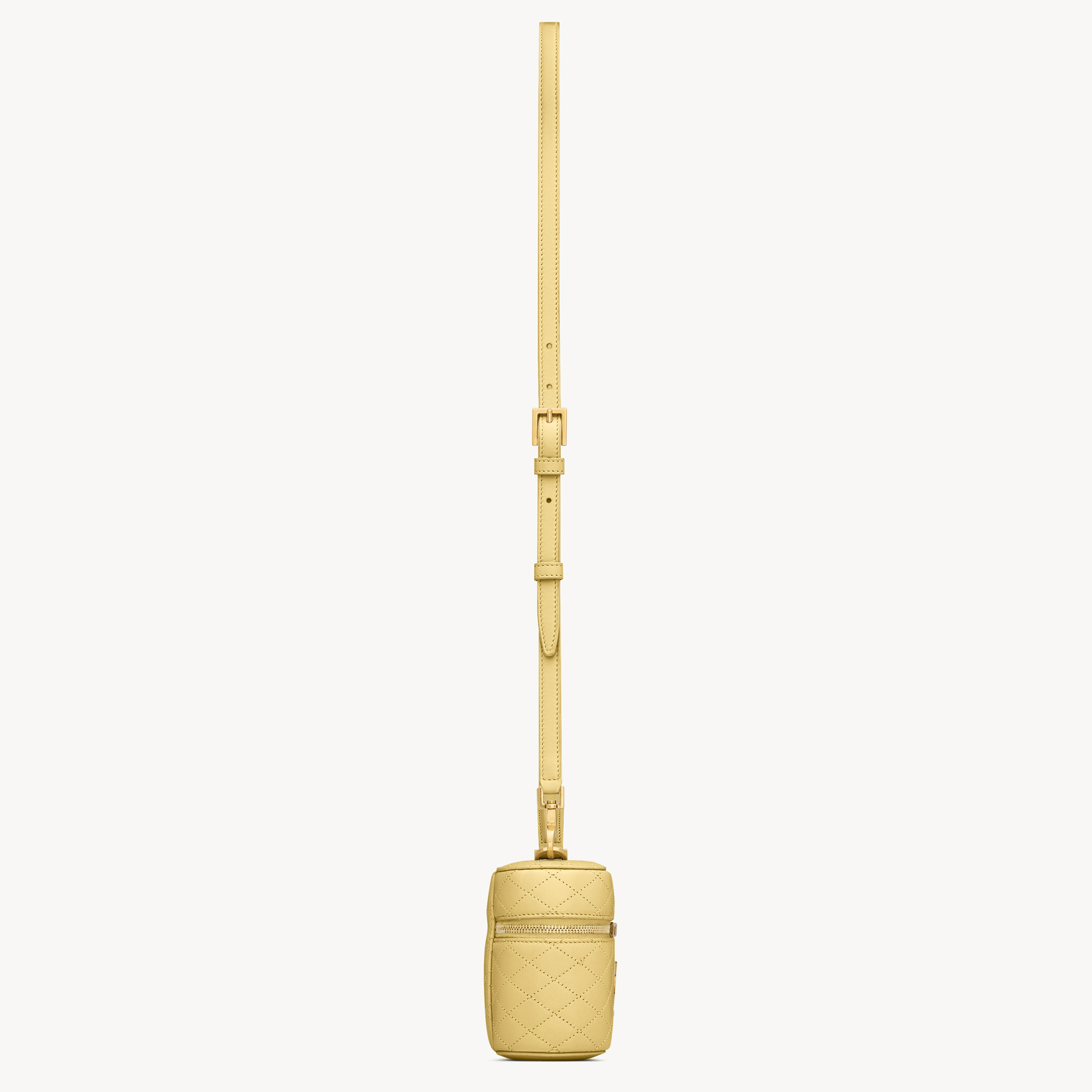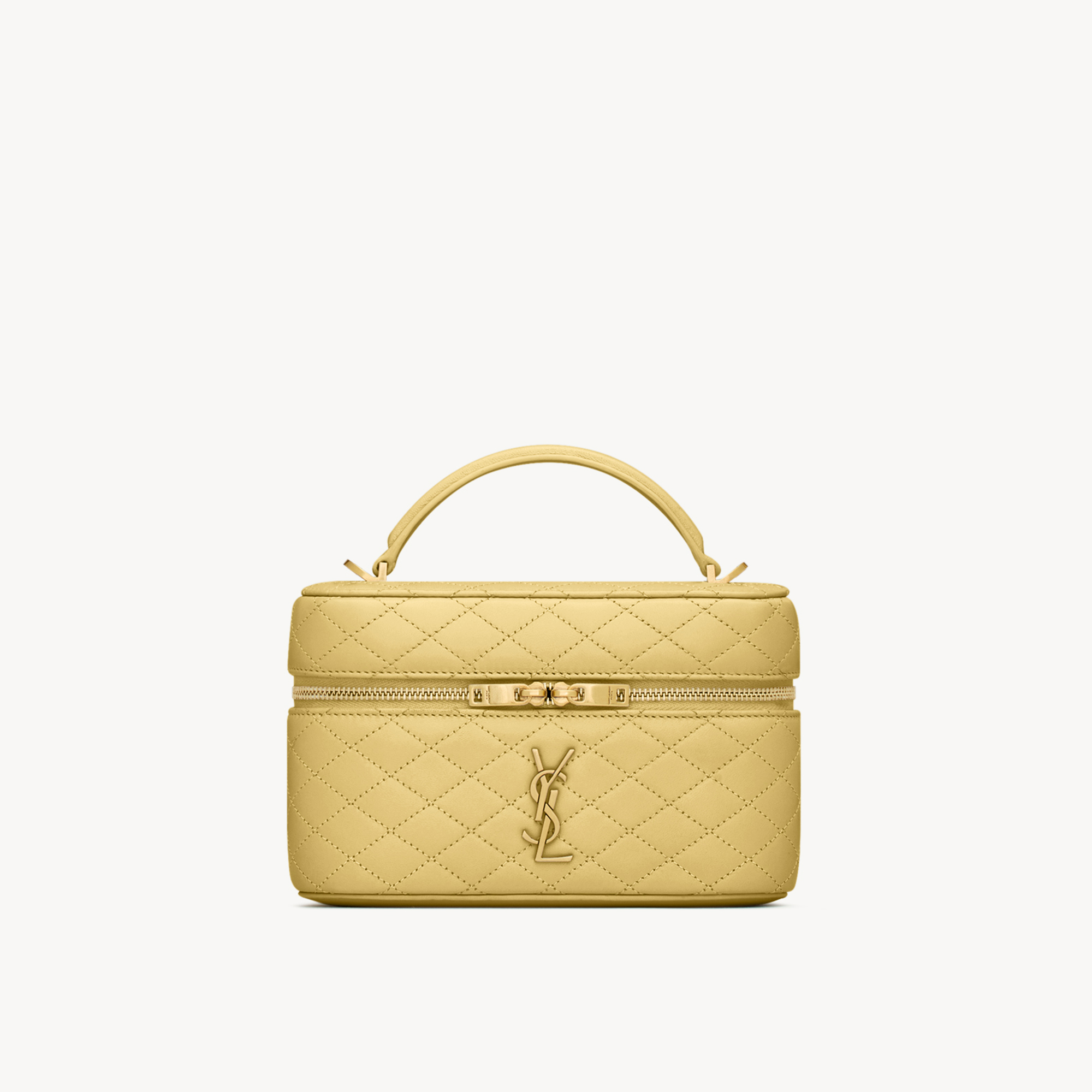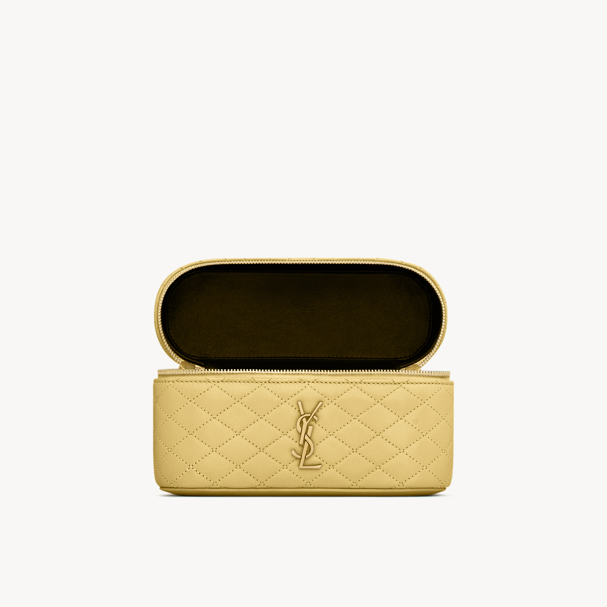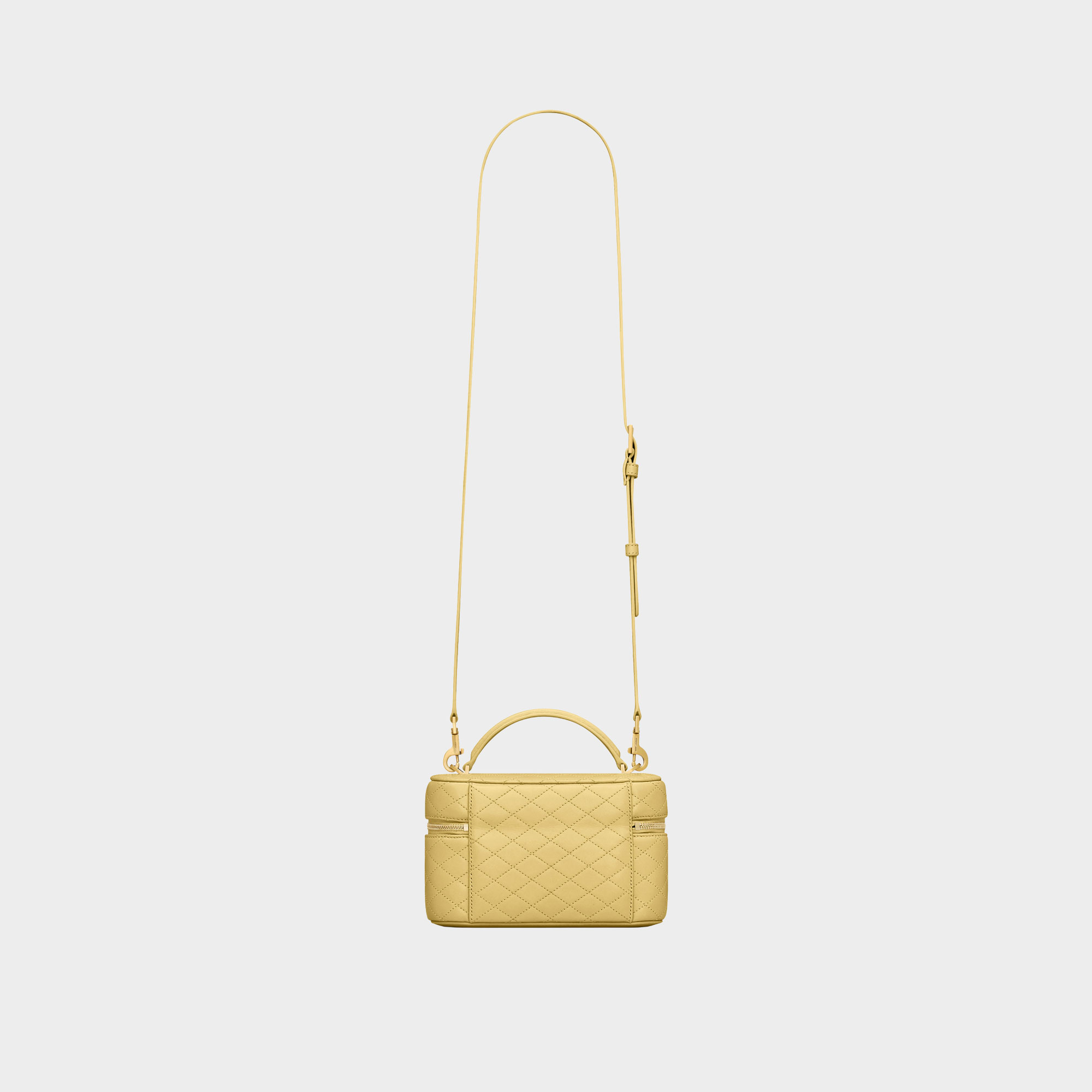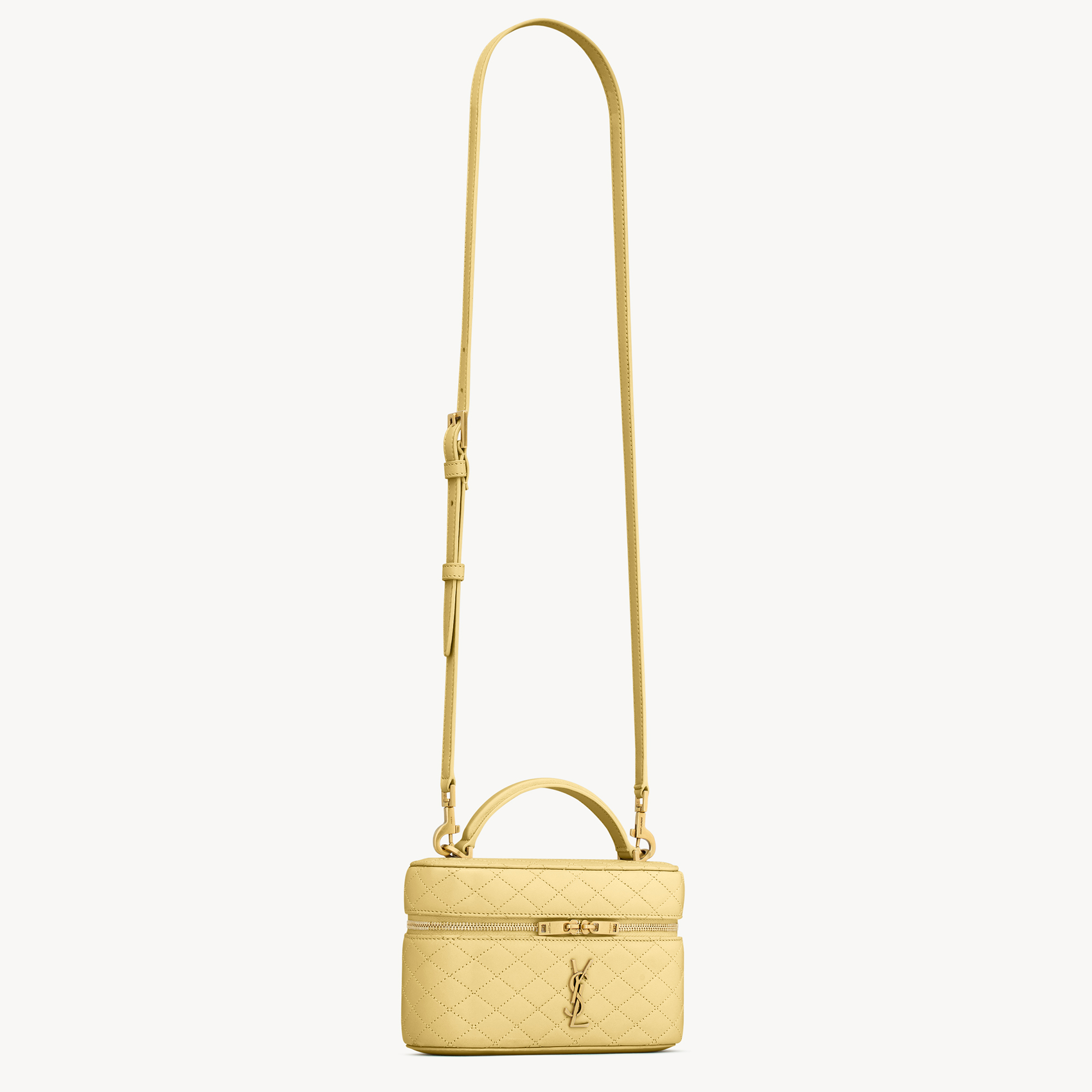 • Vanity style, zip fastening, Cassandre logo details, diamond-quilted topstitching, bronze-tone hardware, top carry handle, adjustable and detachable strap for multiple carry options, one card slot on interior
