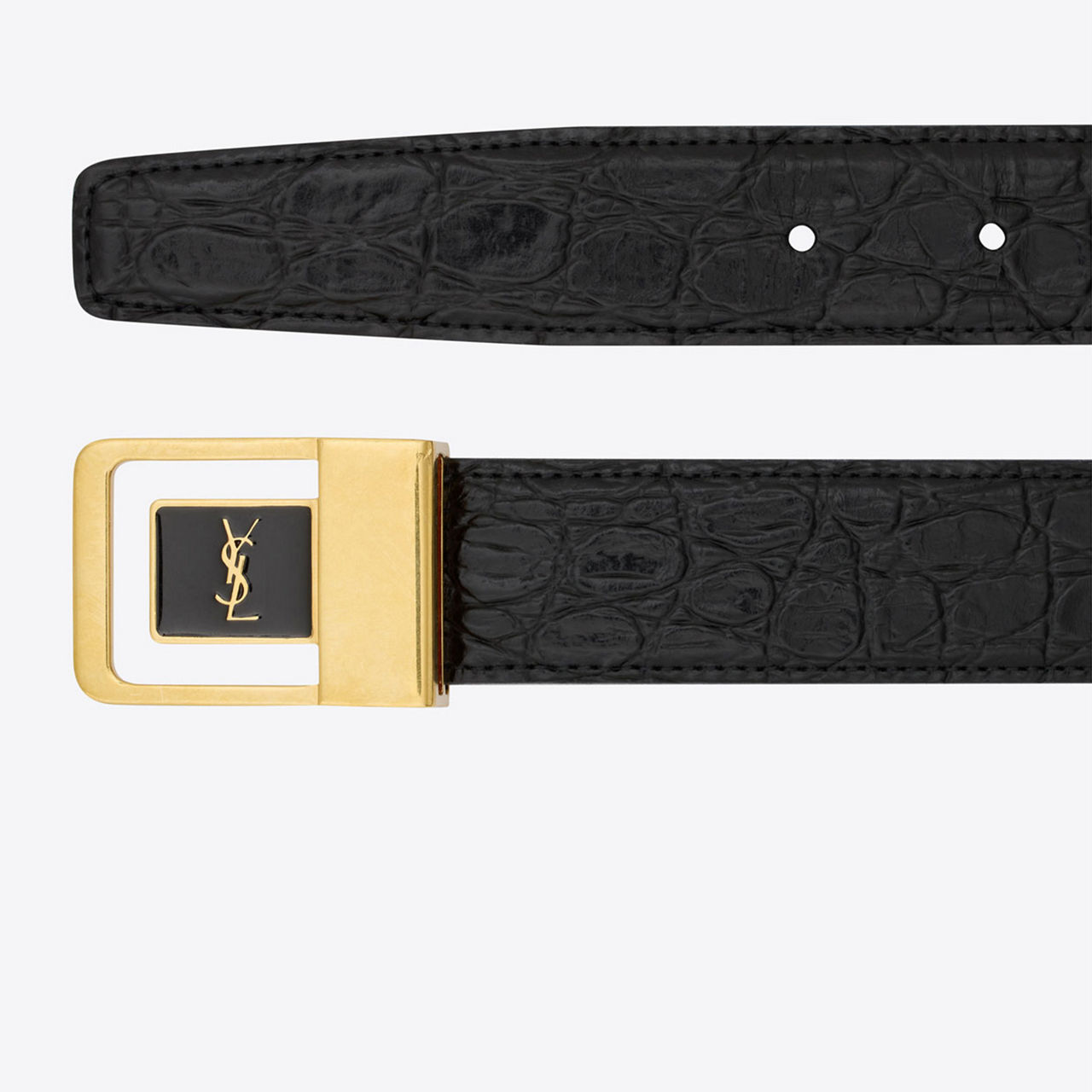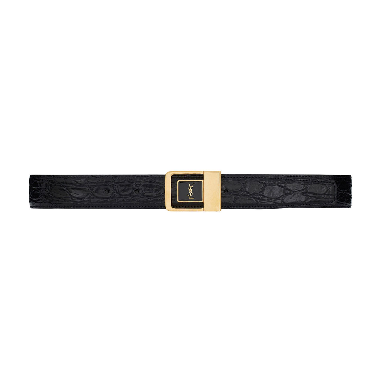 - Square buckle eighth Cassandre logo, croc-embossed, gold-toned hardware, adjustable buckle closure