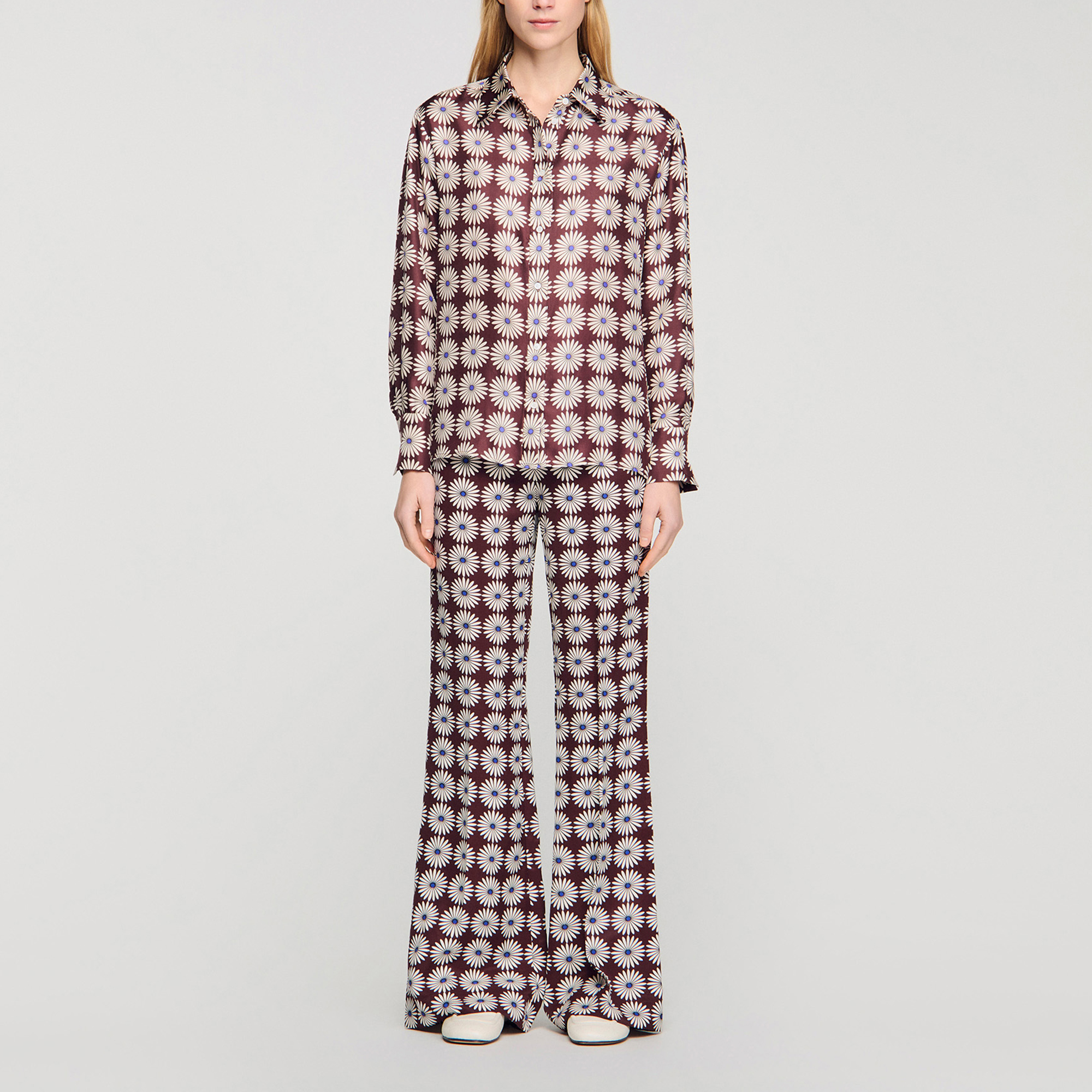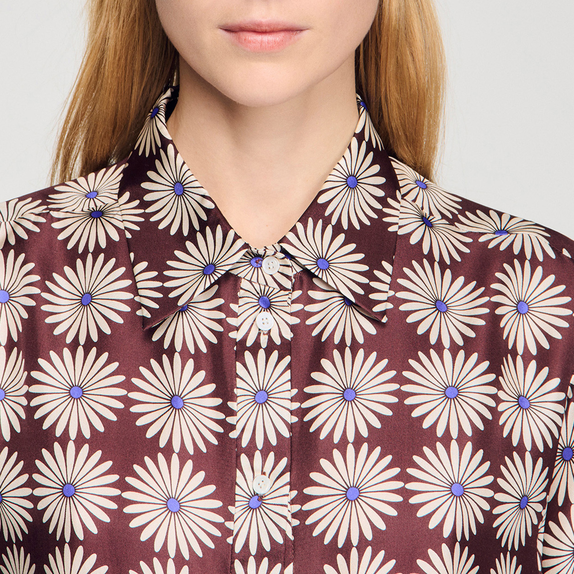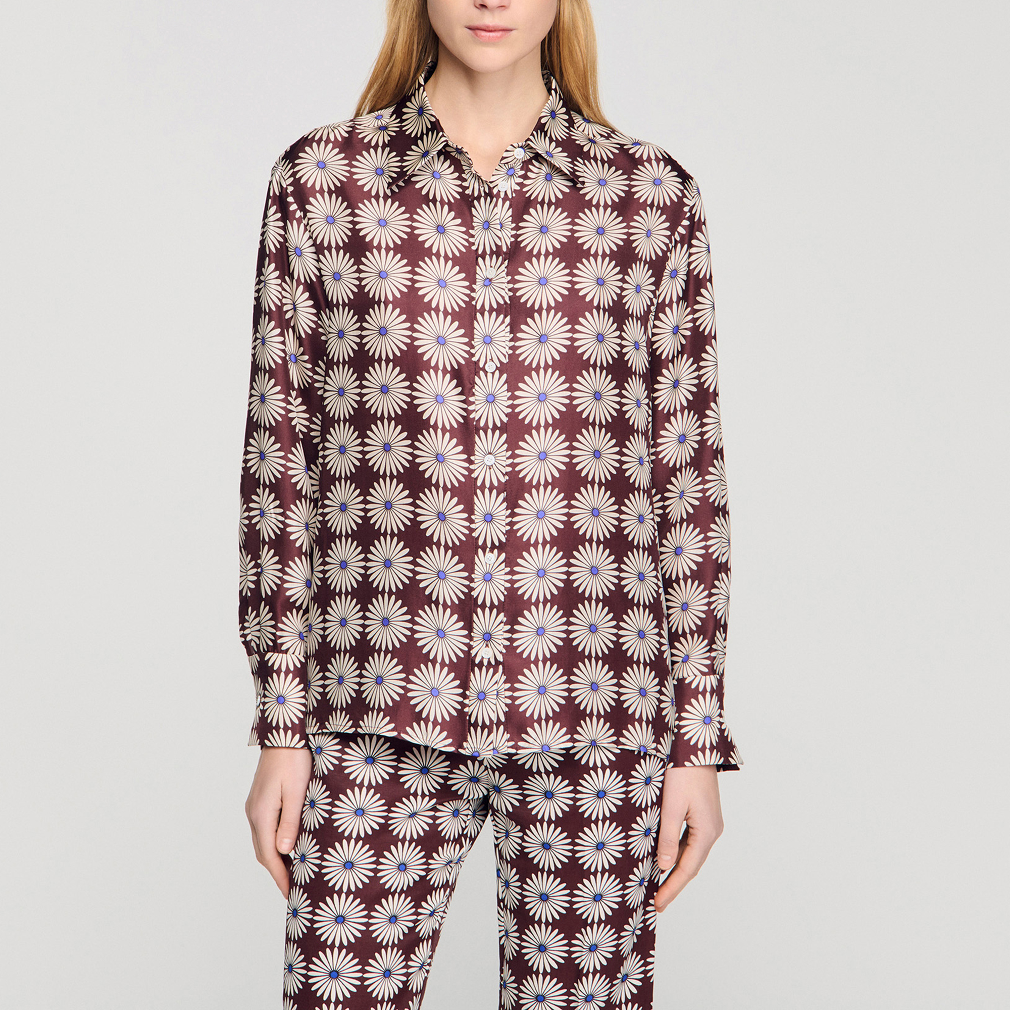 - Straight fit, shirt collar, long sleeves with buttoned cuffs, front button fastening, floral print