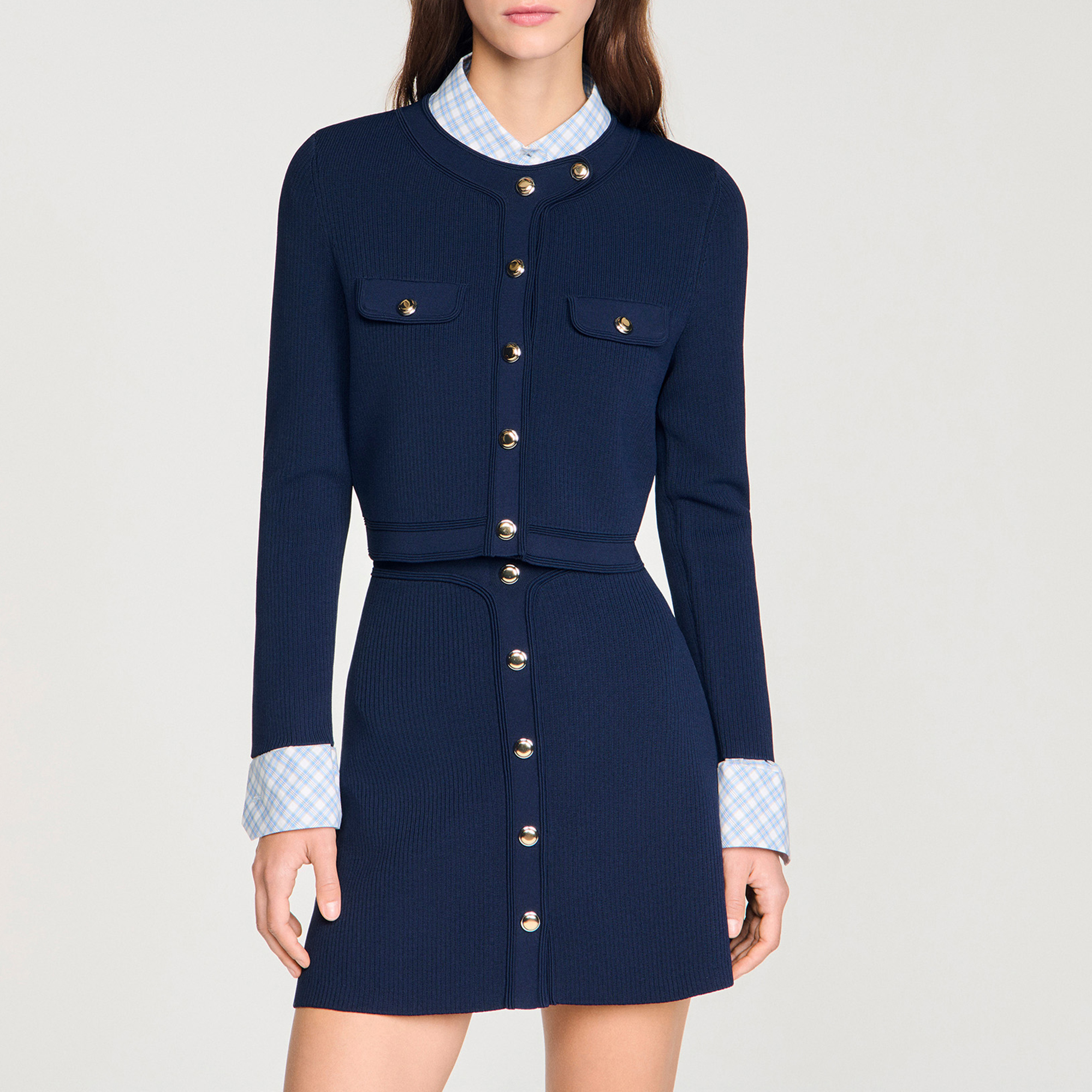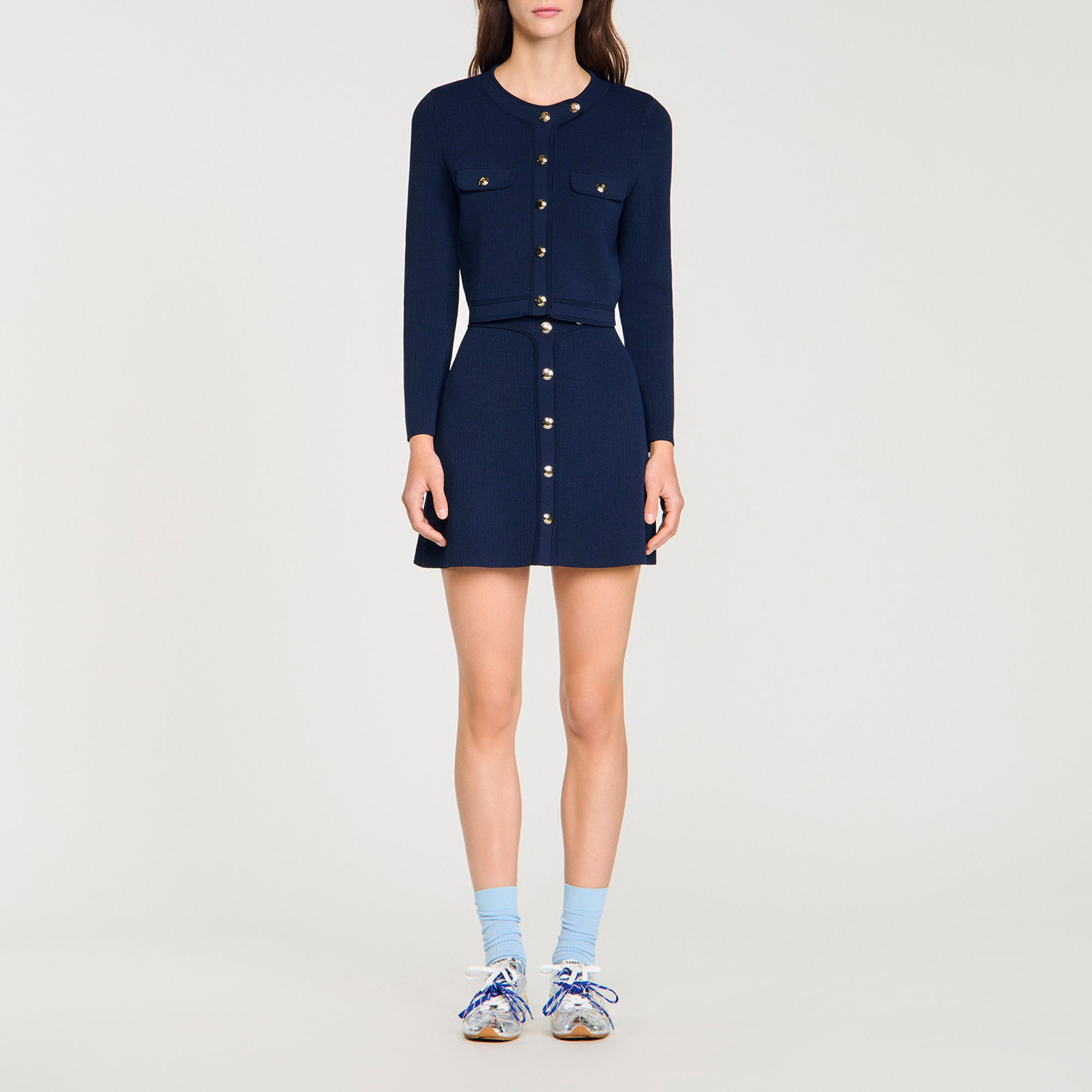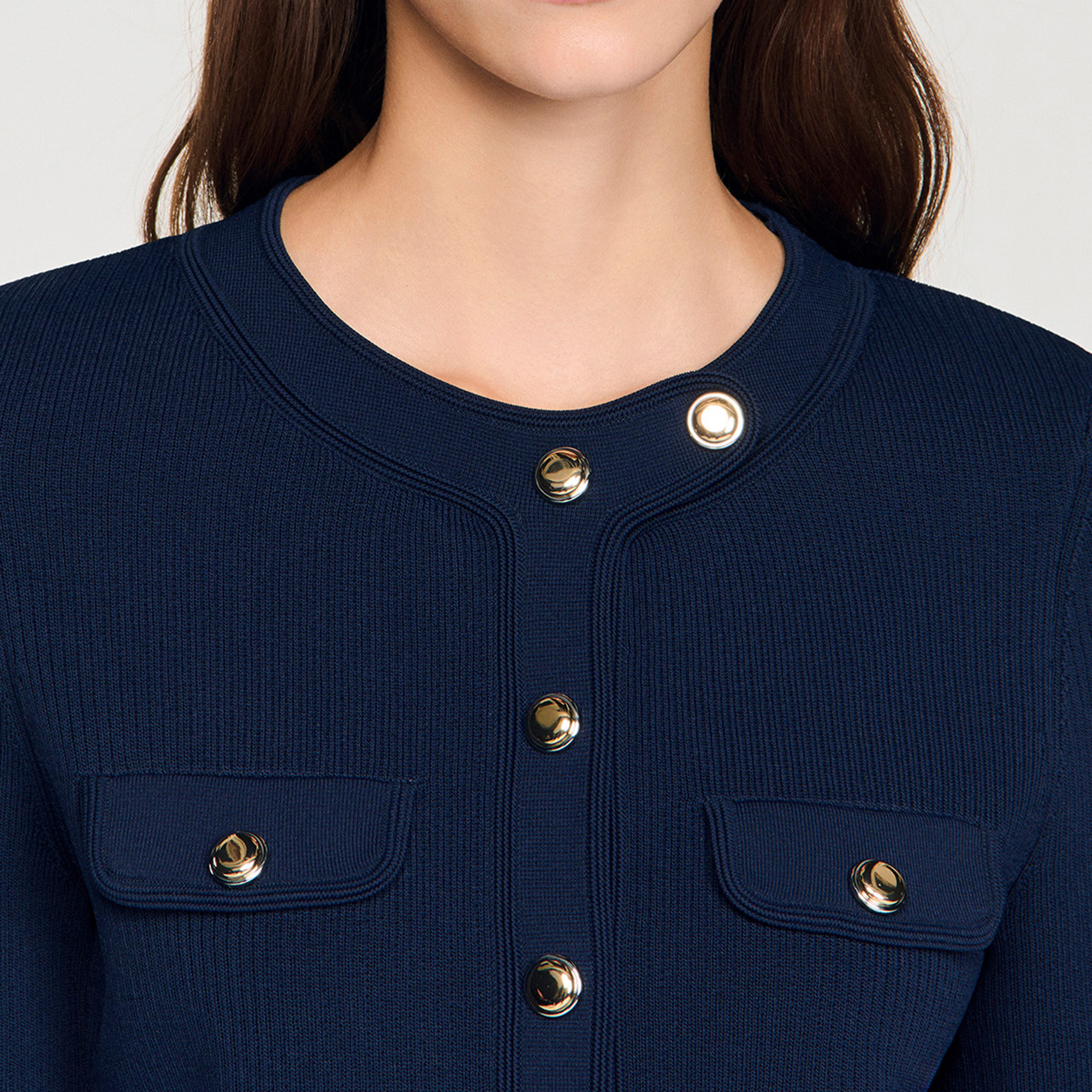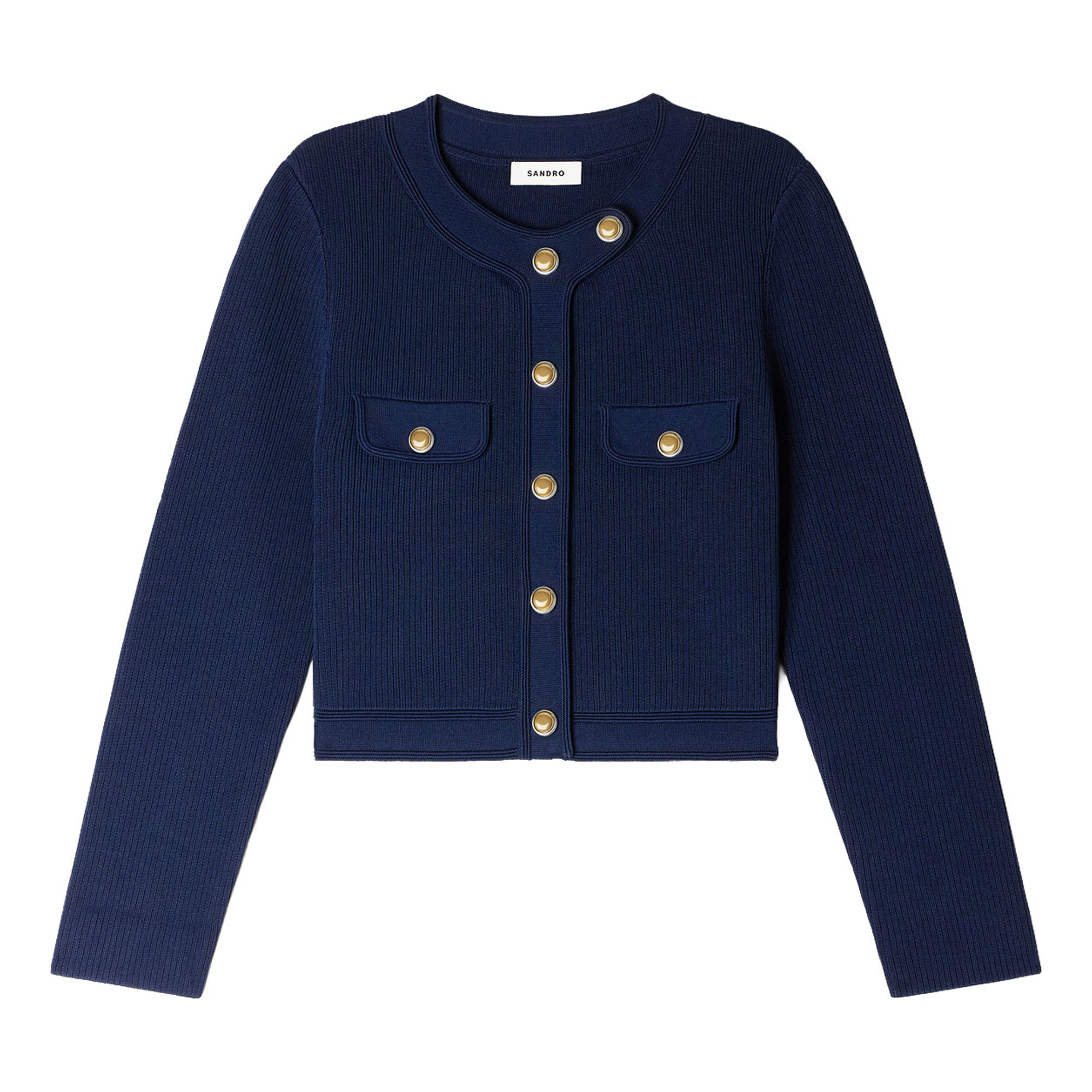 SANDRO Cropped Rib Knit Cardigan
