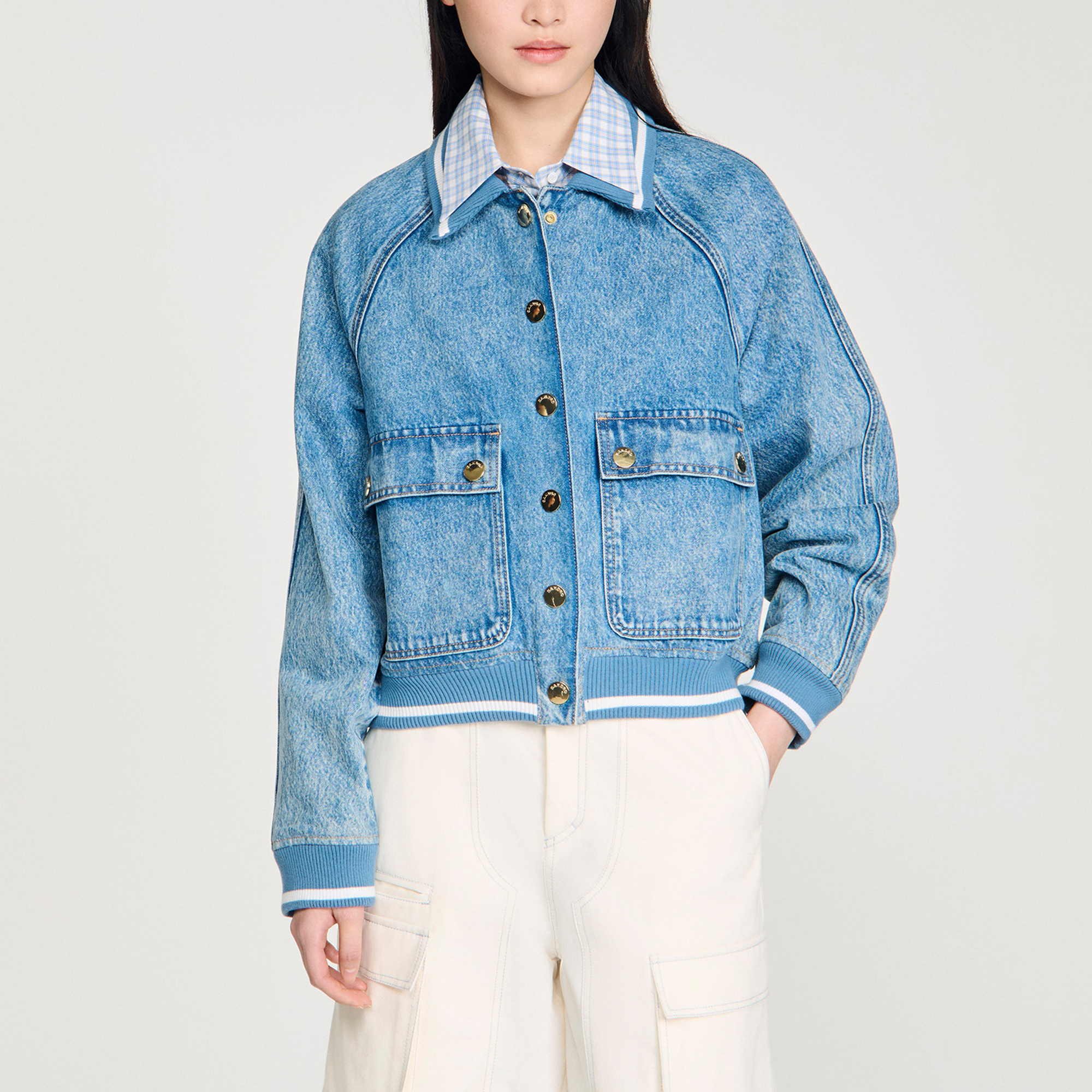 SANDRO Denim Bomber Jacket