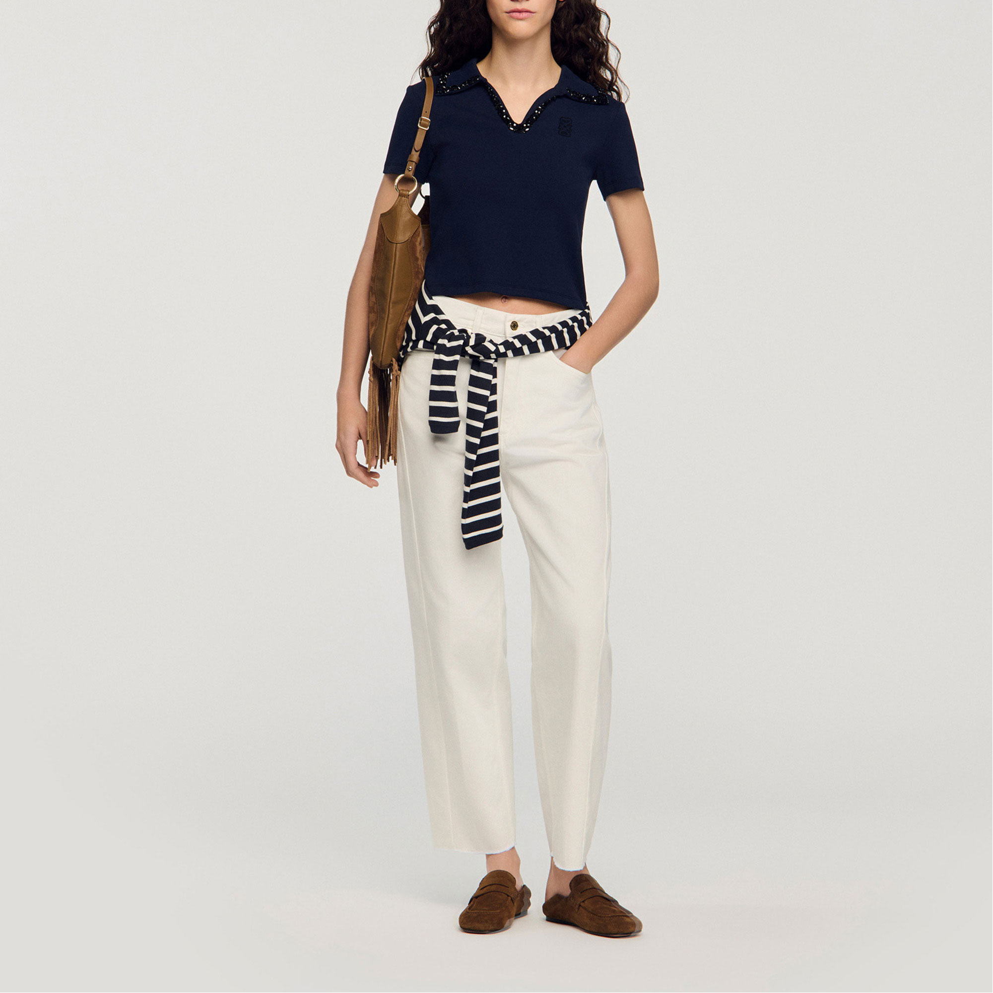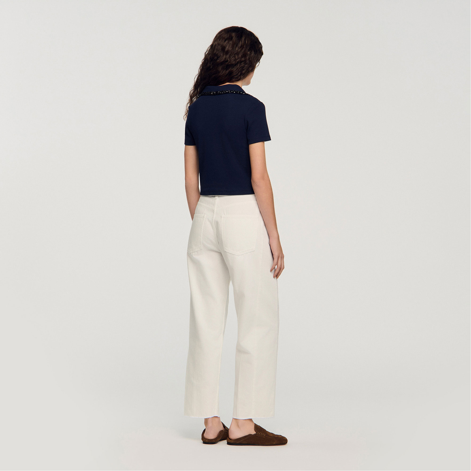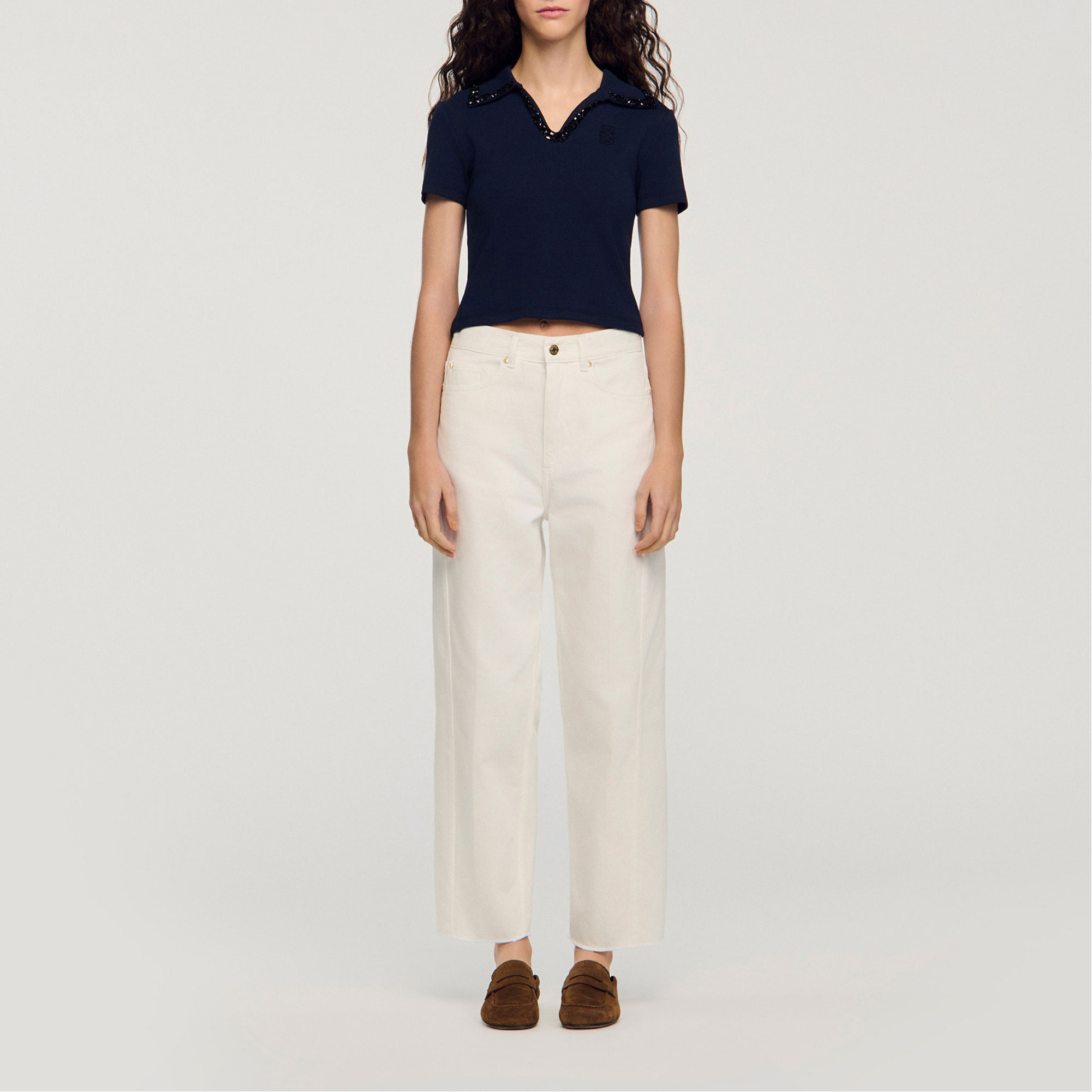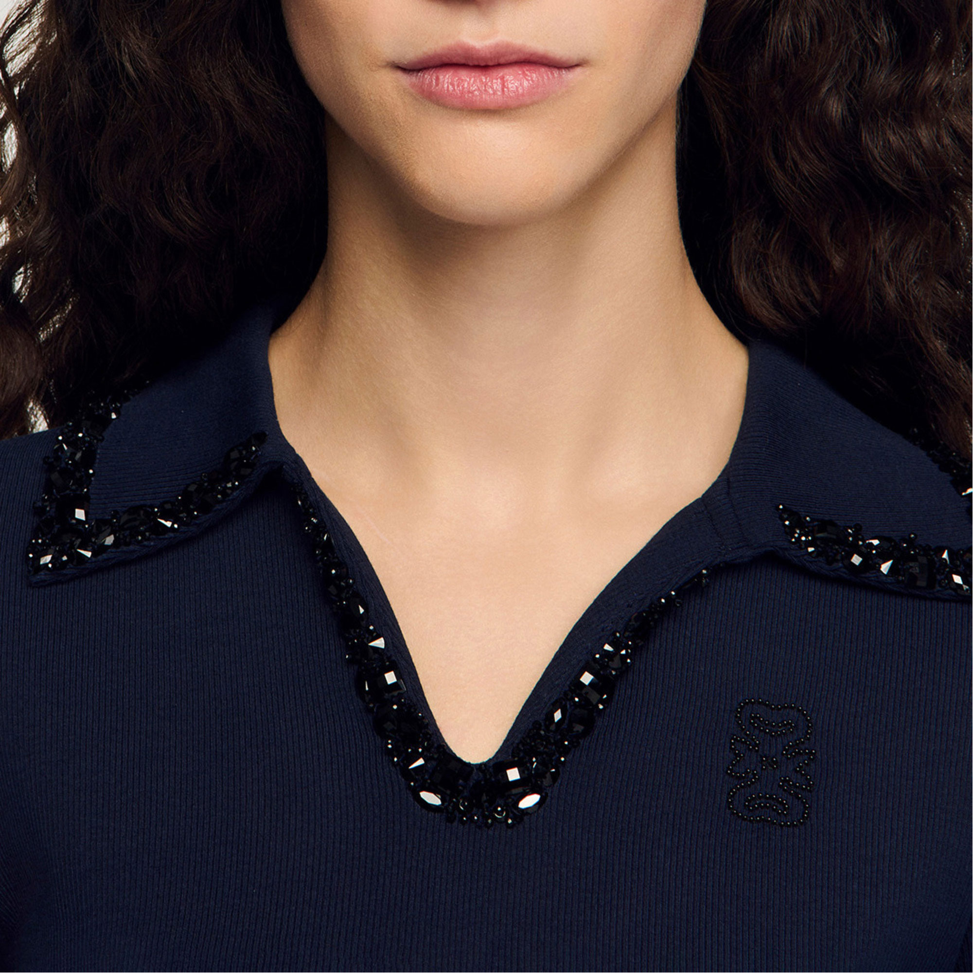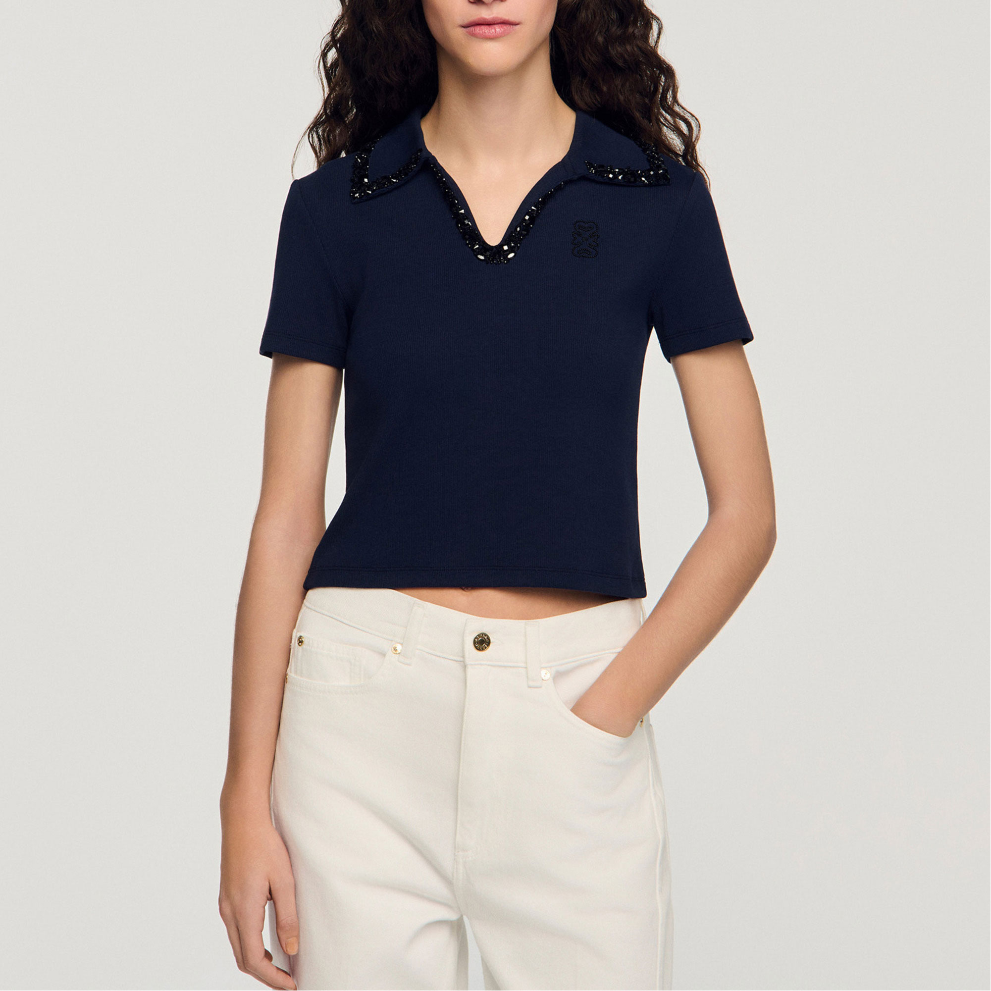 SANDRO Embellished Collar Polo Shirt