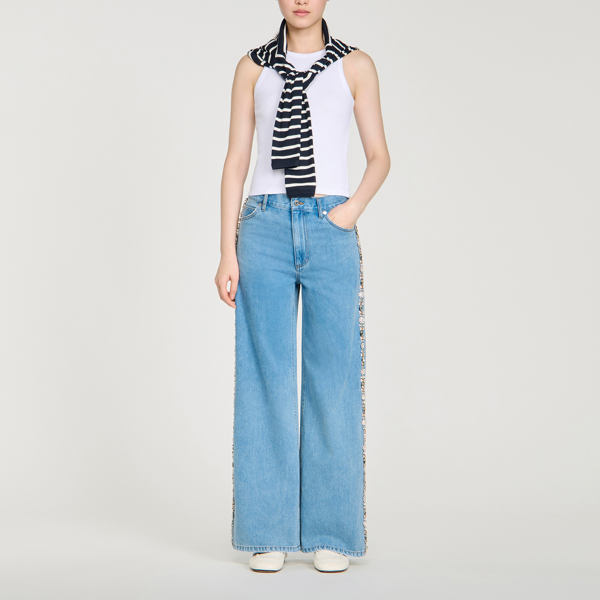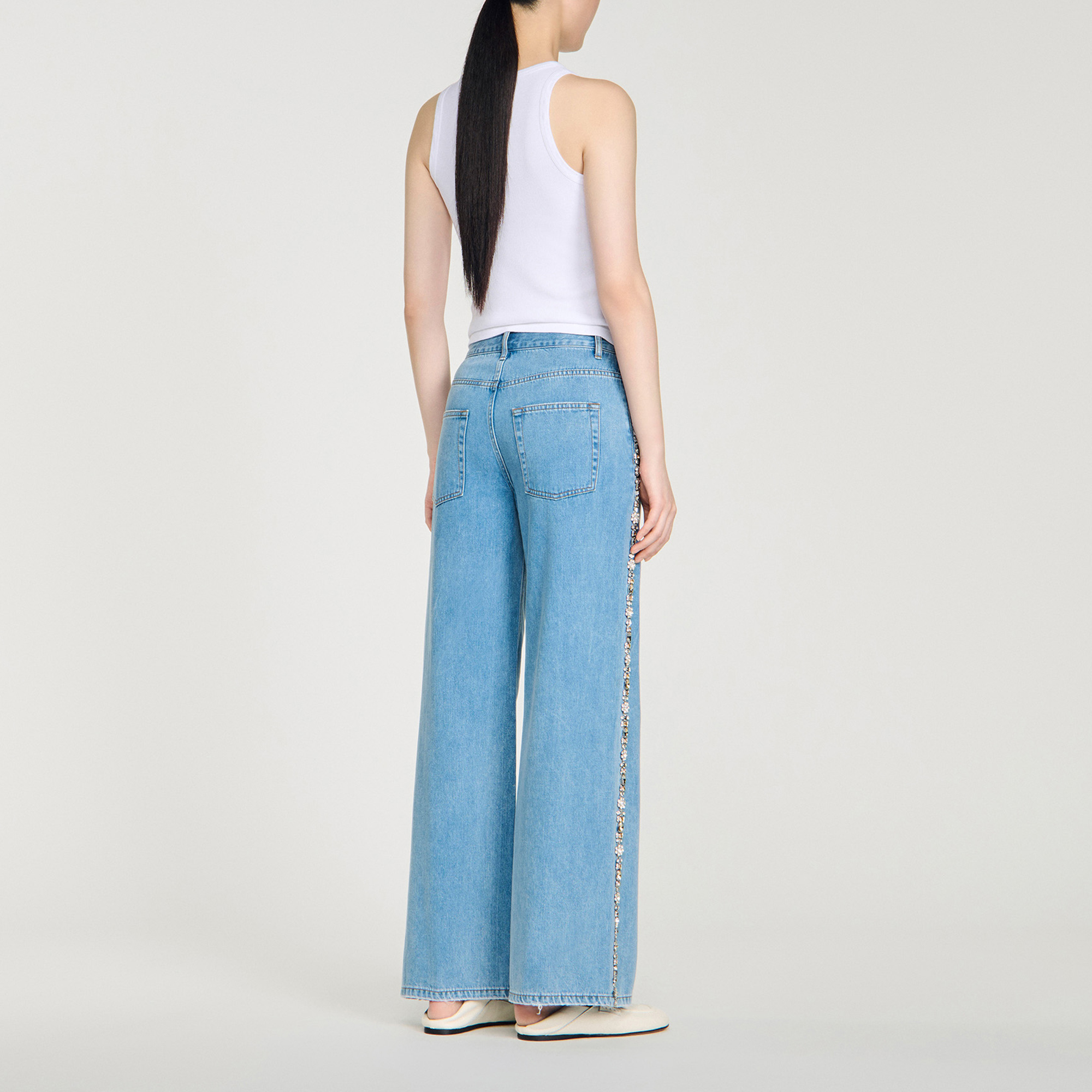 SANDRO Faded Rhinestone Wide Leg Jeans