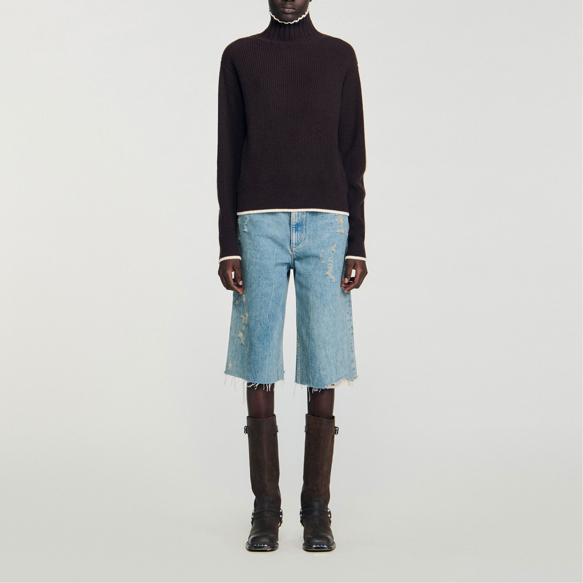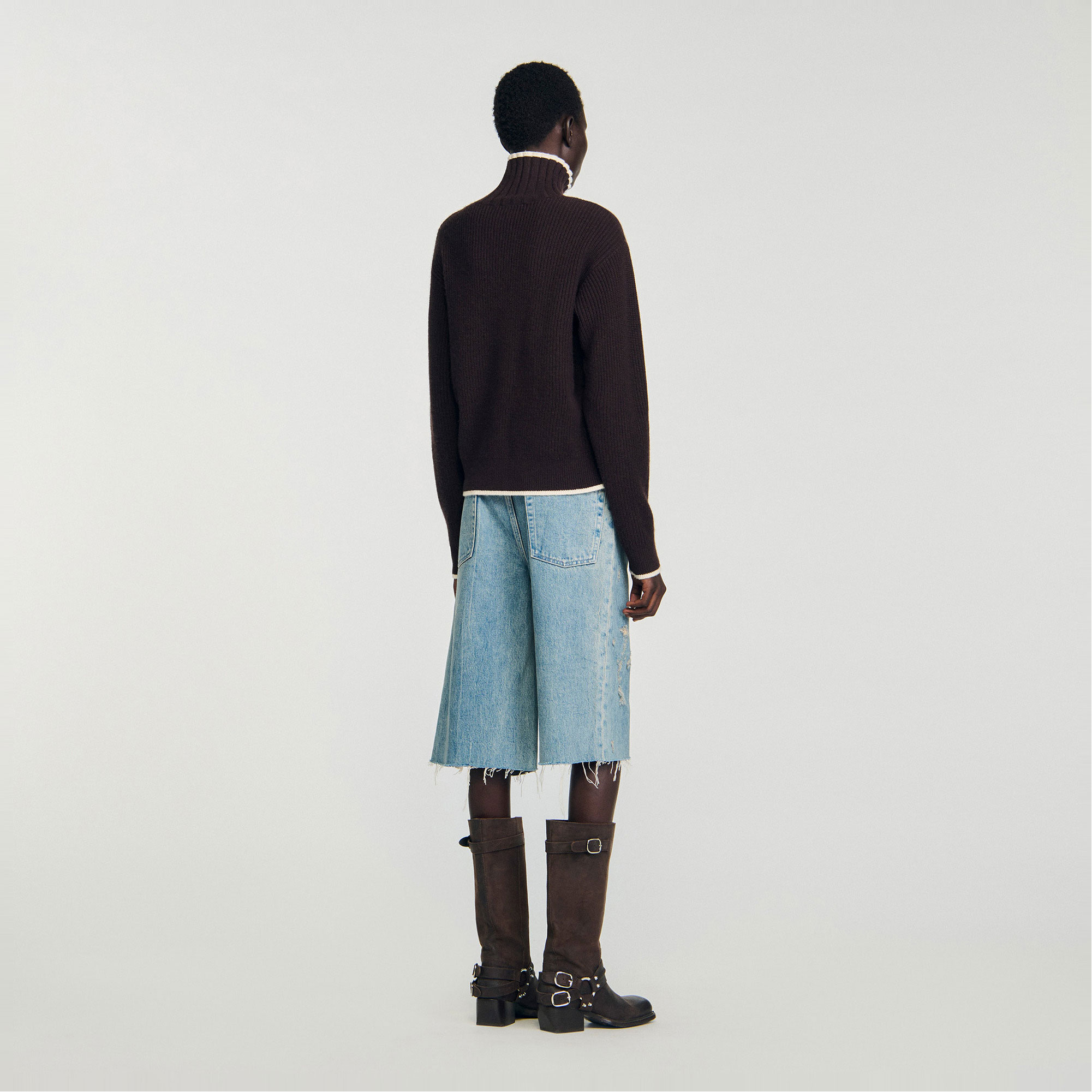 - High turtleneck collar, long sleeves, contrast piping, ribbed trims