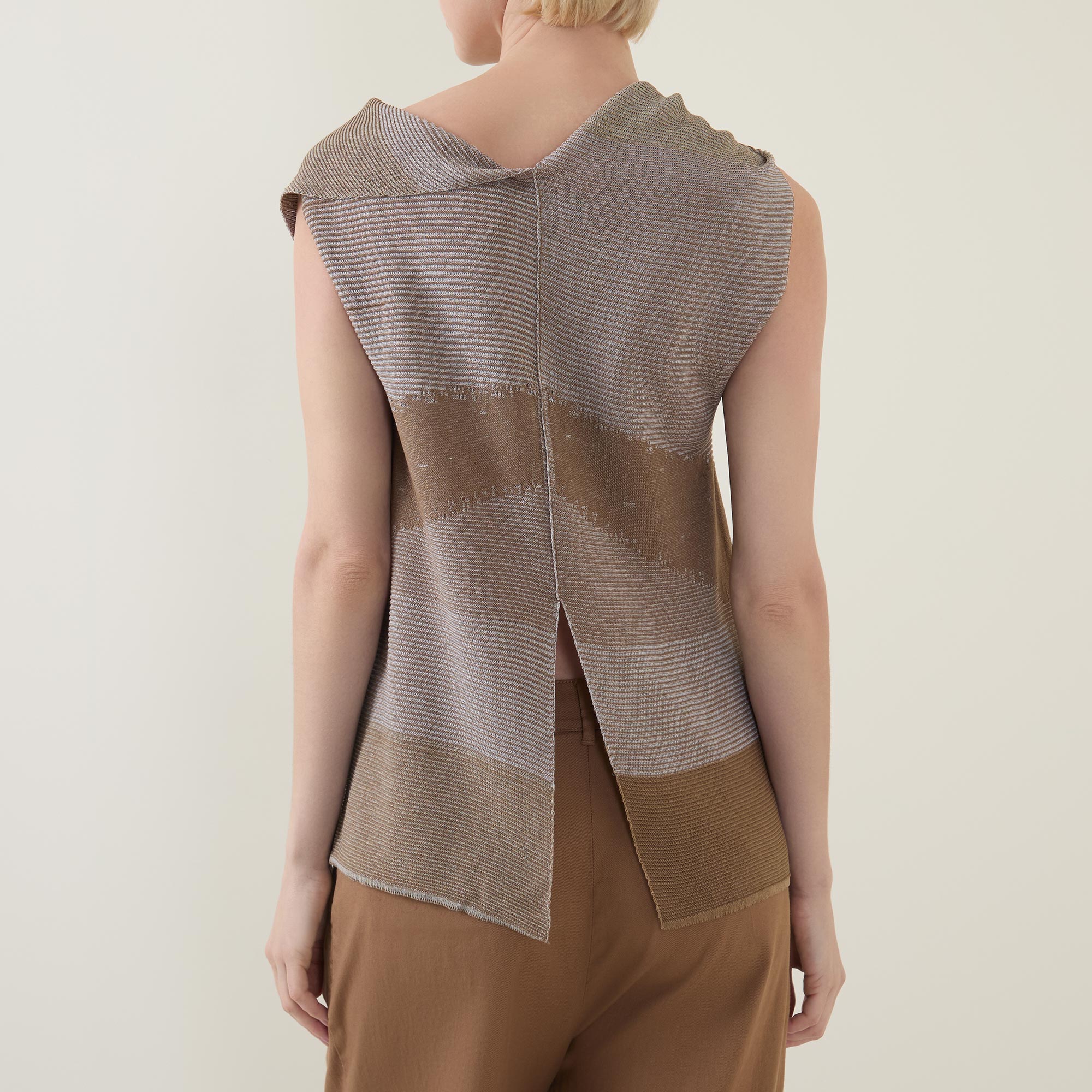 - Cowl neckline, sleeveless, printed design, draped style, ribbed fabric