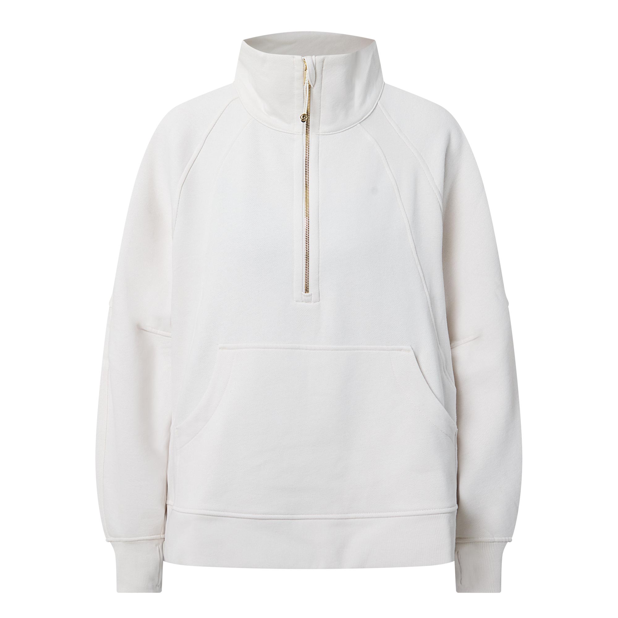 - Features: Half-zip fastening, funnel neckline, high neck helps keep you warm, zipper garage keeps chafe in check, logo embroidery to the back, kangaroo pocket with hidden phone sleeve, elastic zipper pull doubles as an emergency hair tie, thumbholes