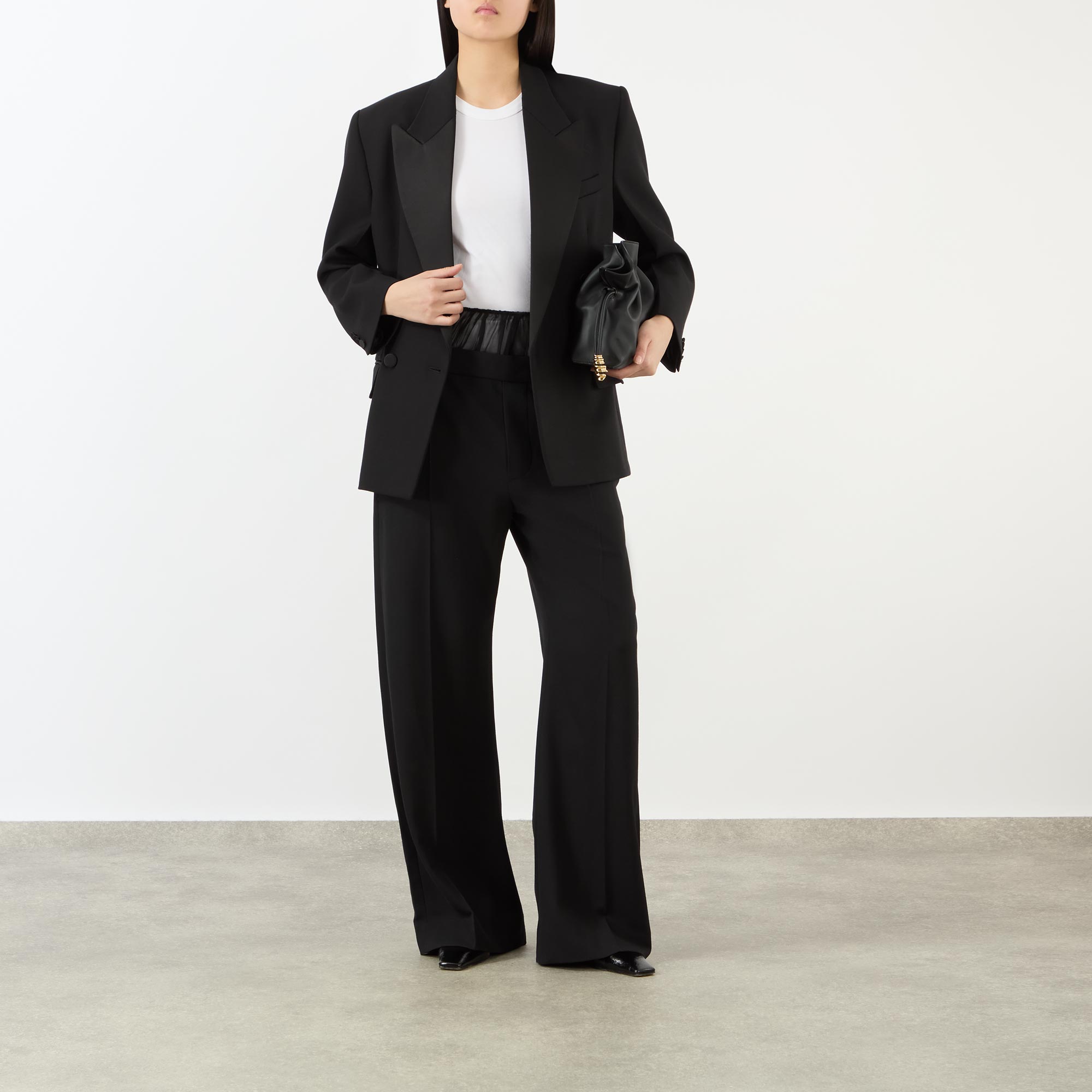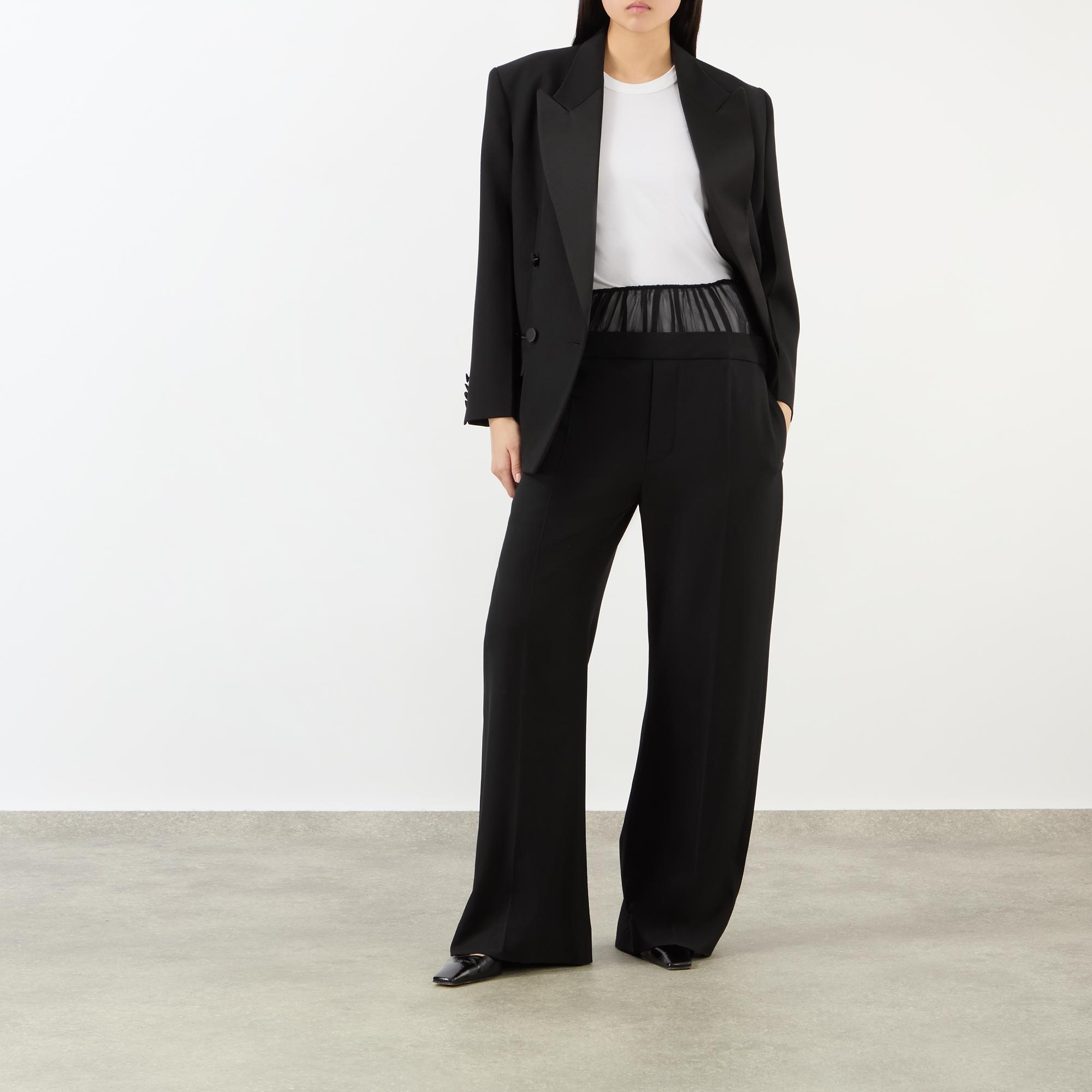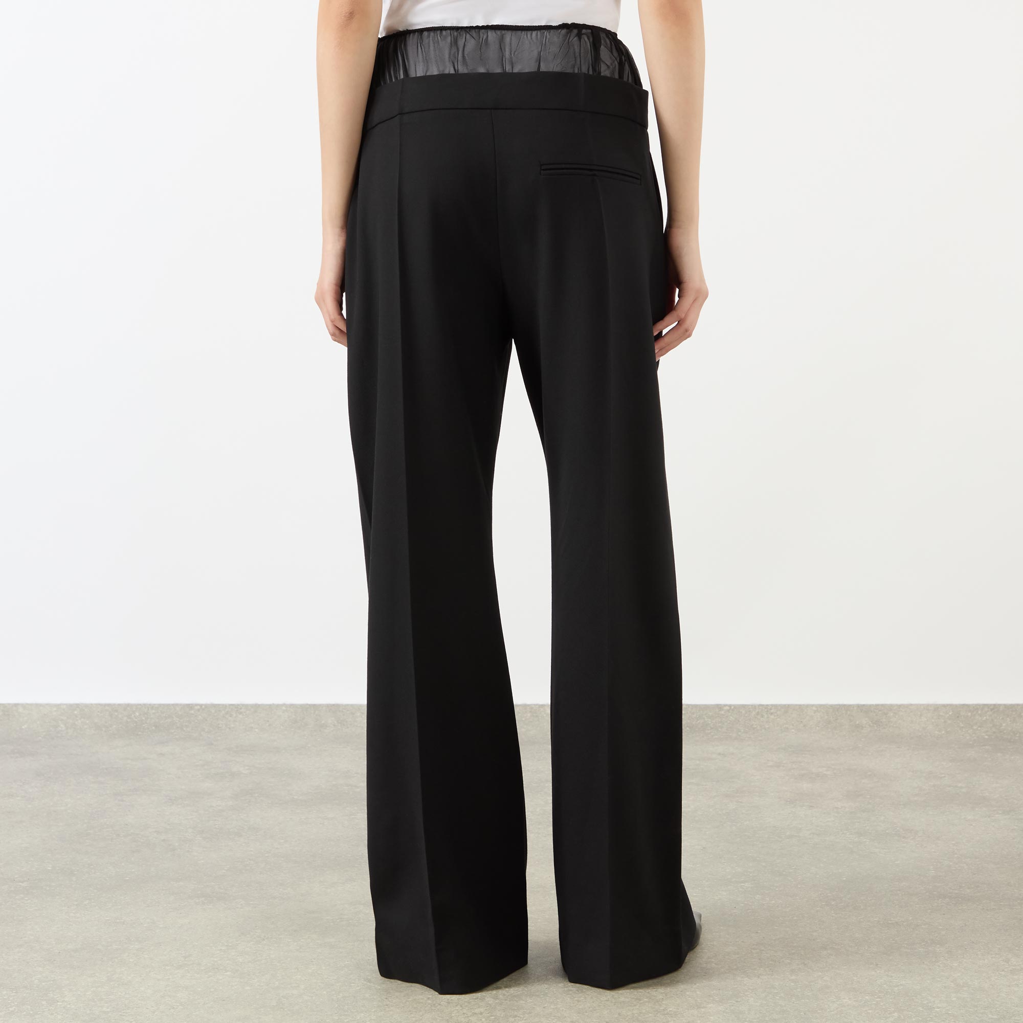 Clean lines and precision tailoring with a twist are featured throughout Victoria Beckham's SS26 collection, take these trousers. Sitting mid-rise on the waist and cut to a wide-leg silhouette, they feature a sheer panel detail at the top, while finished with a selection of pockets to store your essentials, and pressed creases for a polished edit.