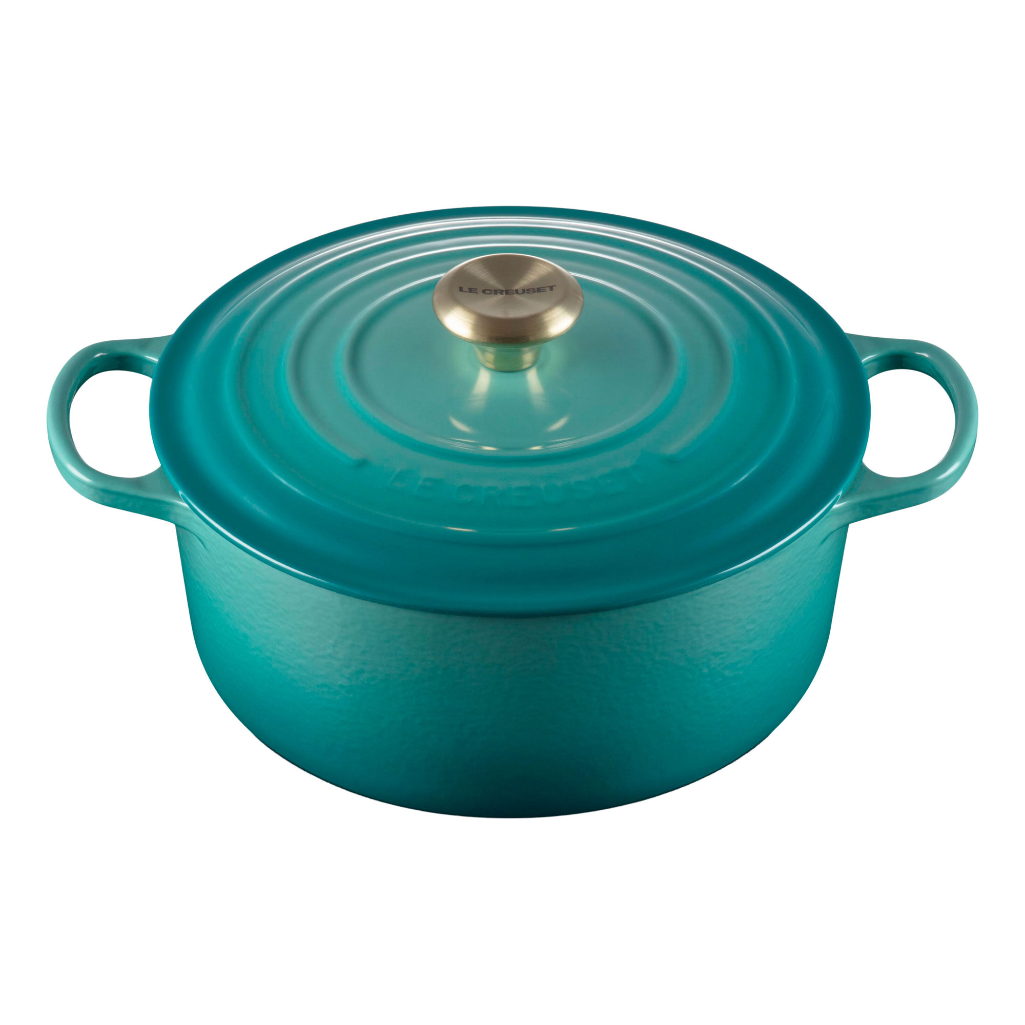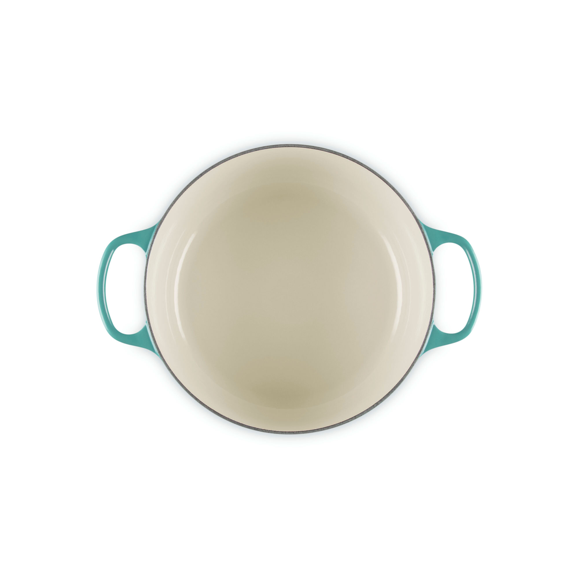 The essential kitchen classic. From a fifteen-minute pasta ragu to a slow-cooked fragrant stew; from tender, juicy roasts to freshly baked bread and cakes that rise to perfection and bake evenly, the Round Cast Iron Casserole from Le Creuset is ideal for a wide array of one-pot recipes. The casserole makes a perfect serving dish too, as Cast Iron keeps food warmer for longer at the table. Each piece is finished in an enamel colour that beautifully complements any kitchen or dining decor.