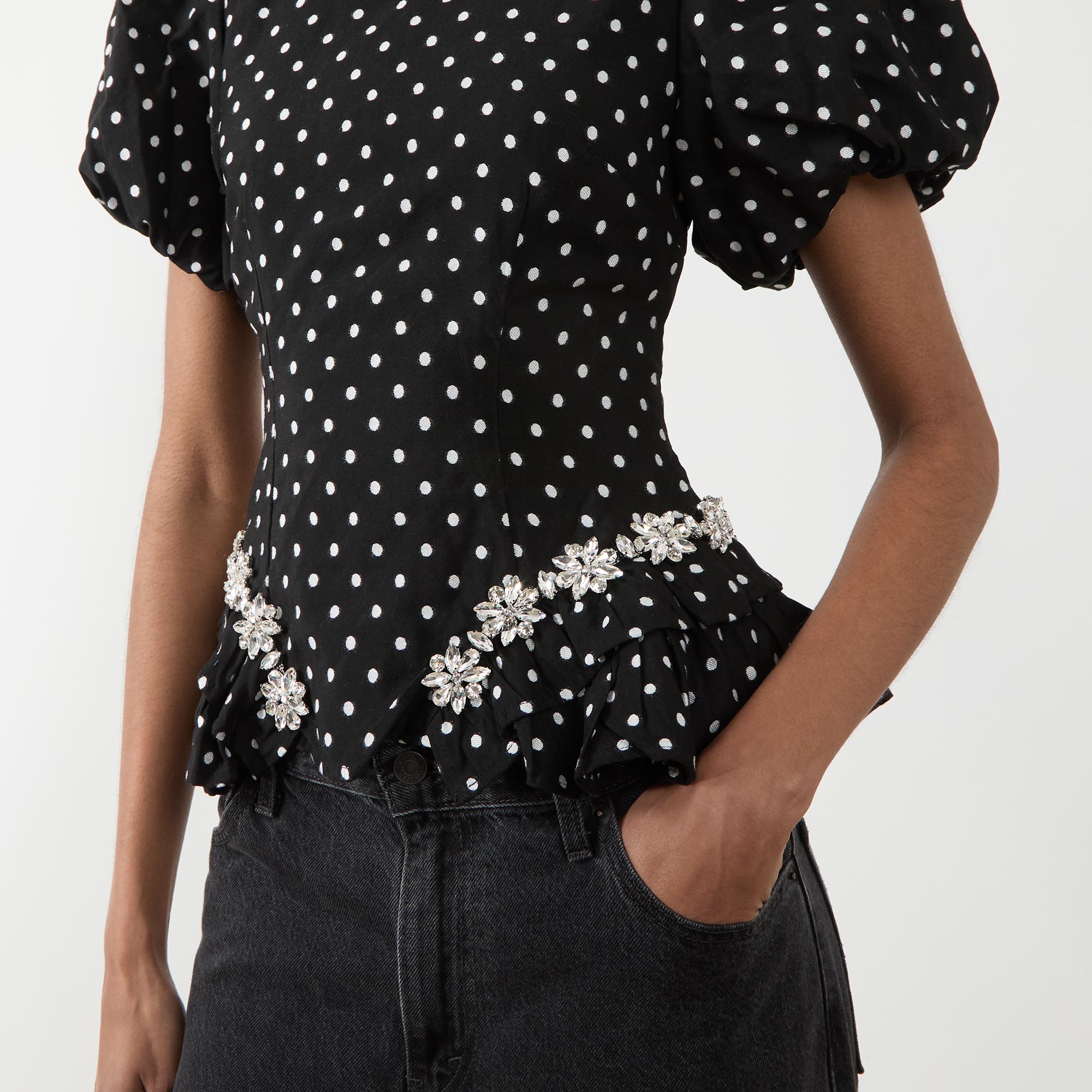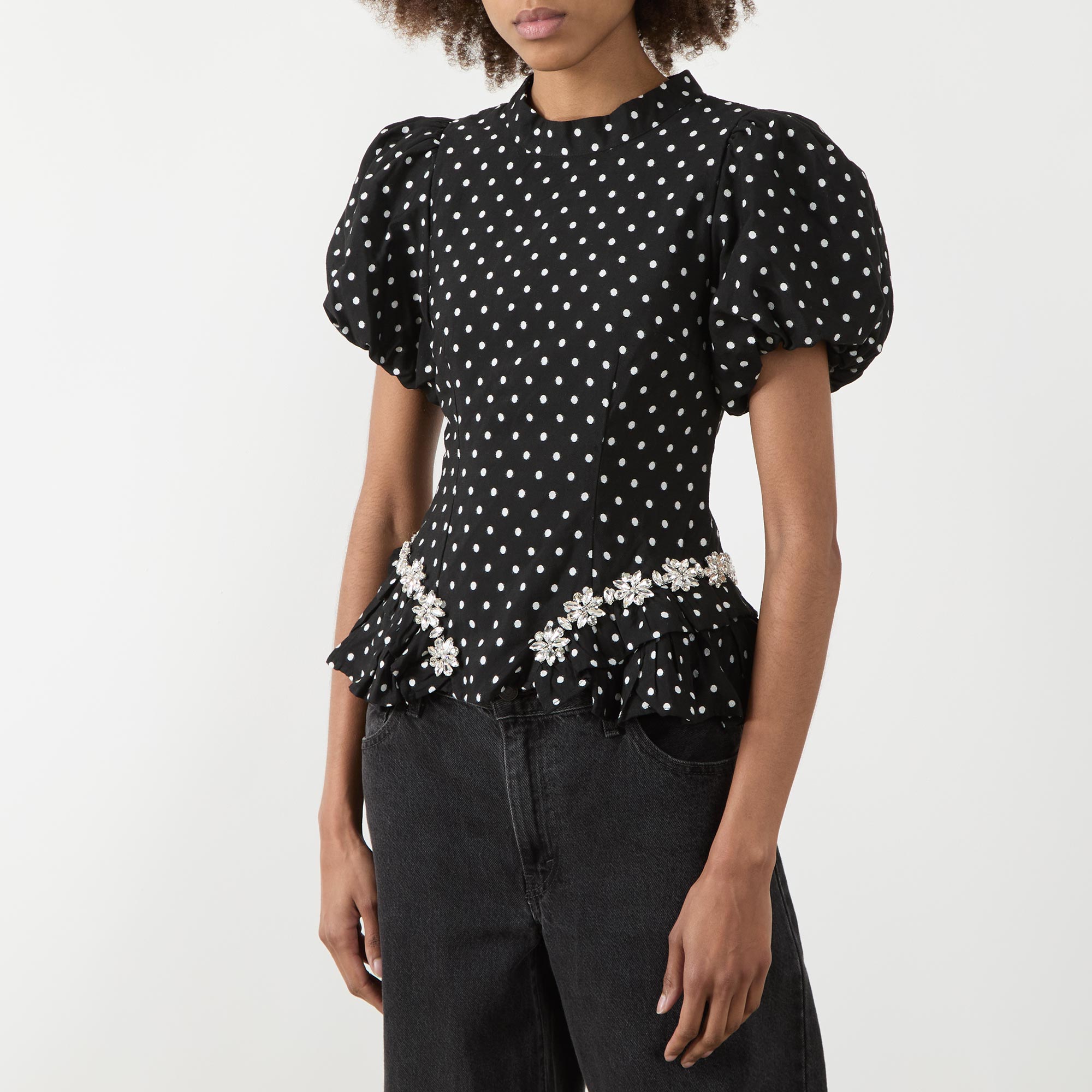 SISTER JANE Scene Puff-Sleeve Polka Dot Blouse