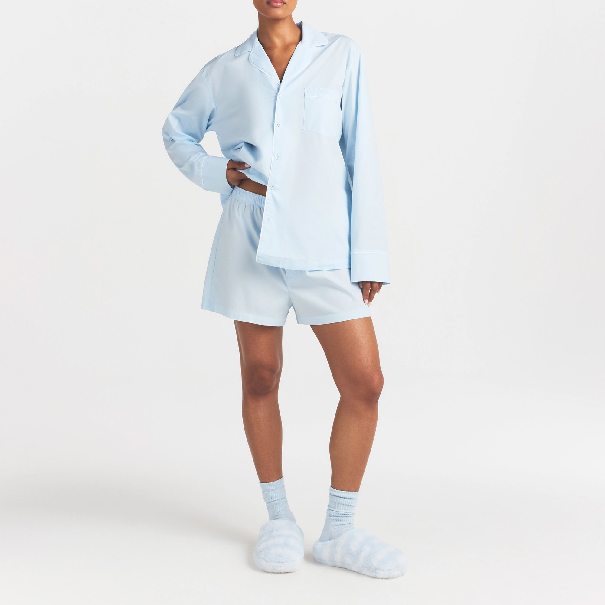 SKIMS WEDDING COLLECTION Long Sleeve & Boxer Set Baby Blue Contrast