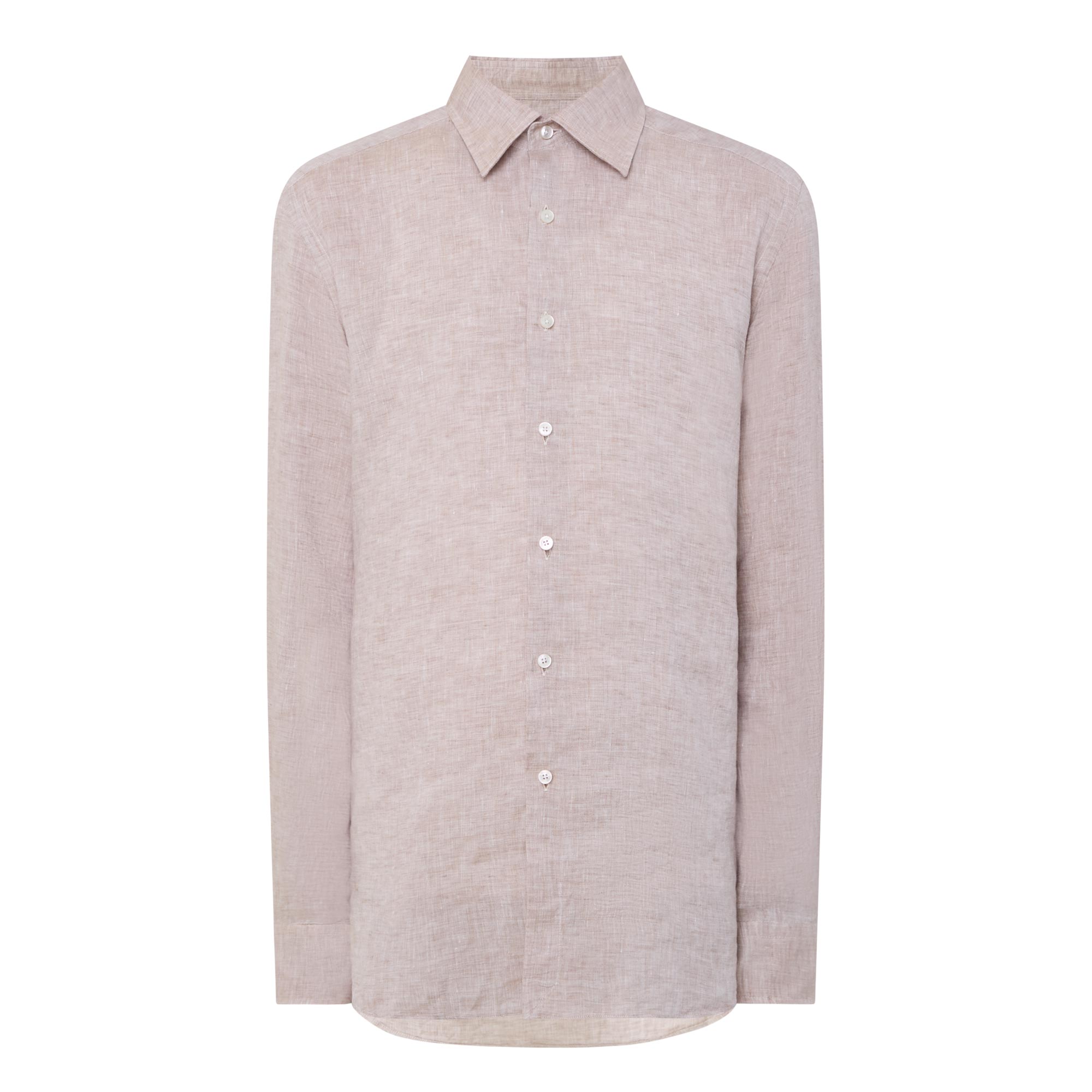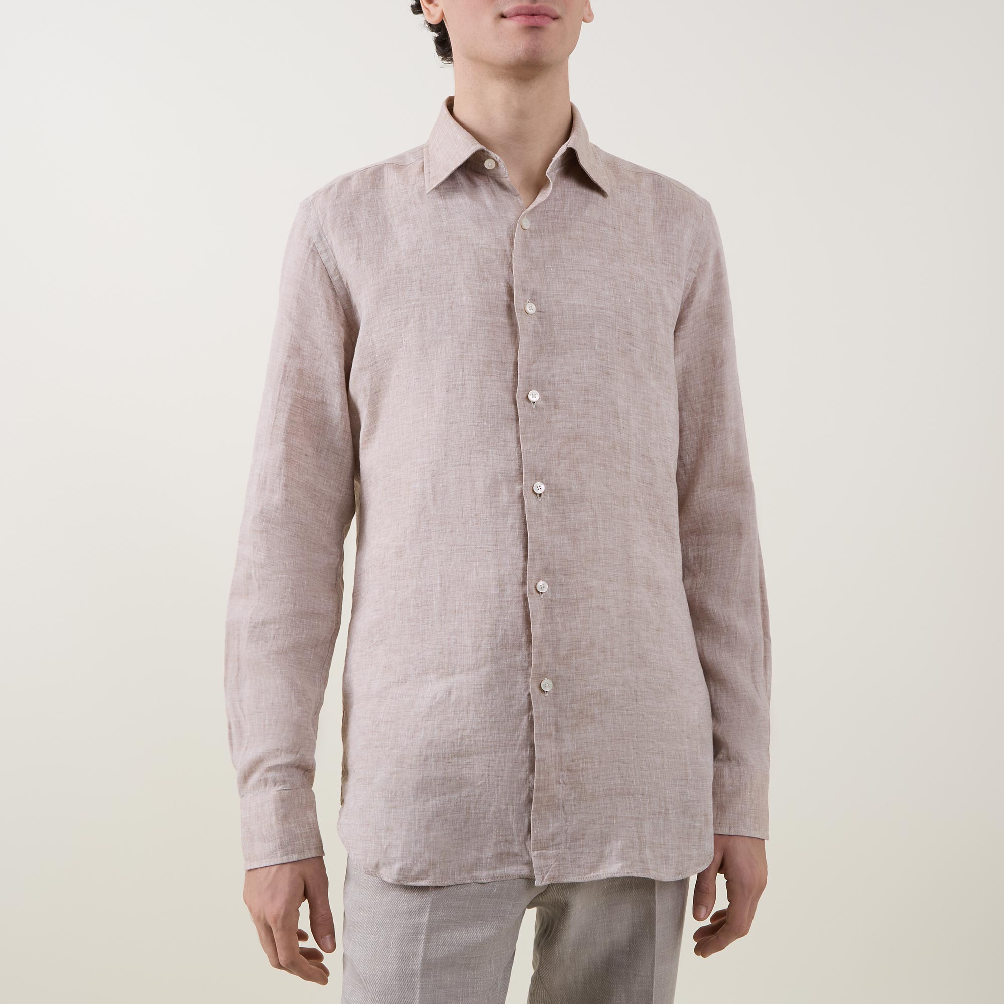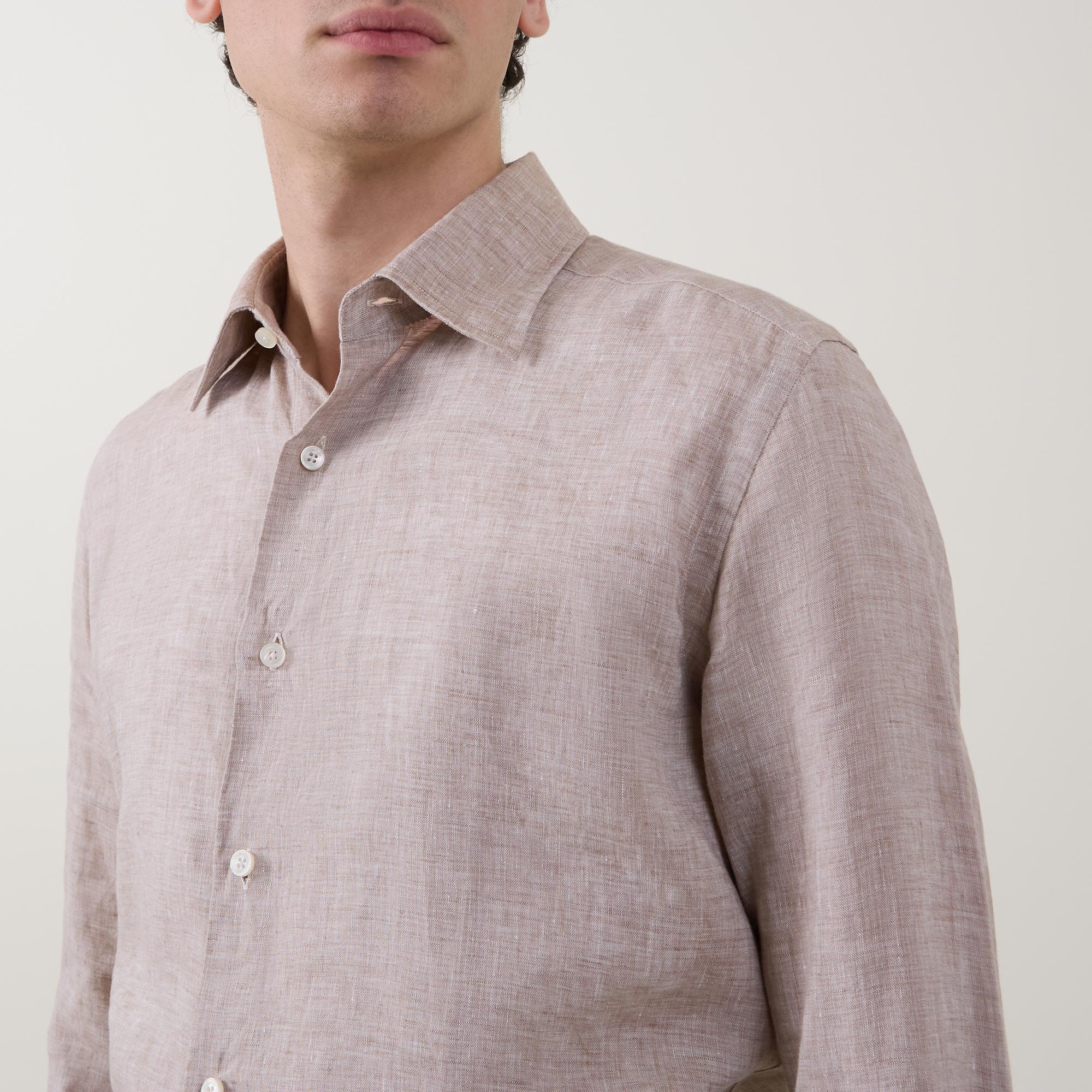 • Classic collar, long sleeves, single-cuffs with button fastenings, front button placket, curved hemline, lightweight linen fabric