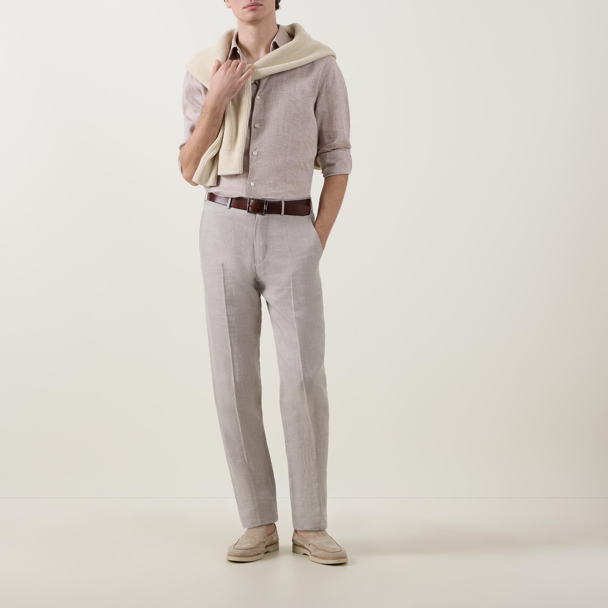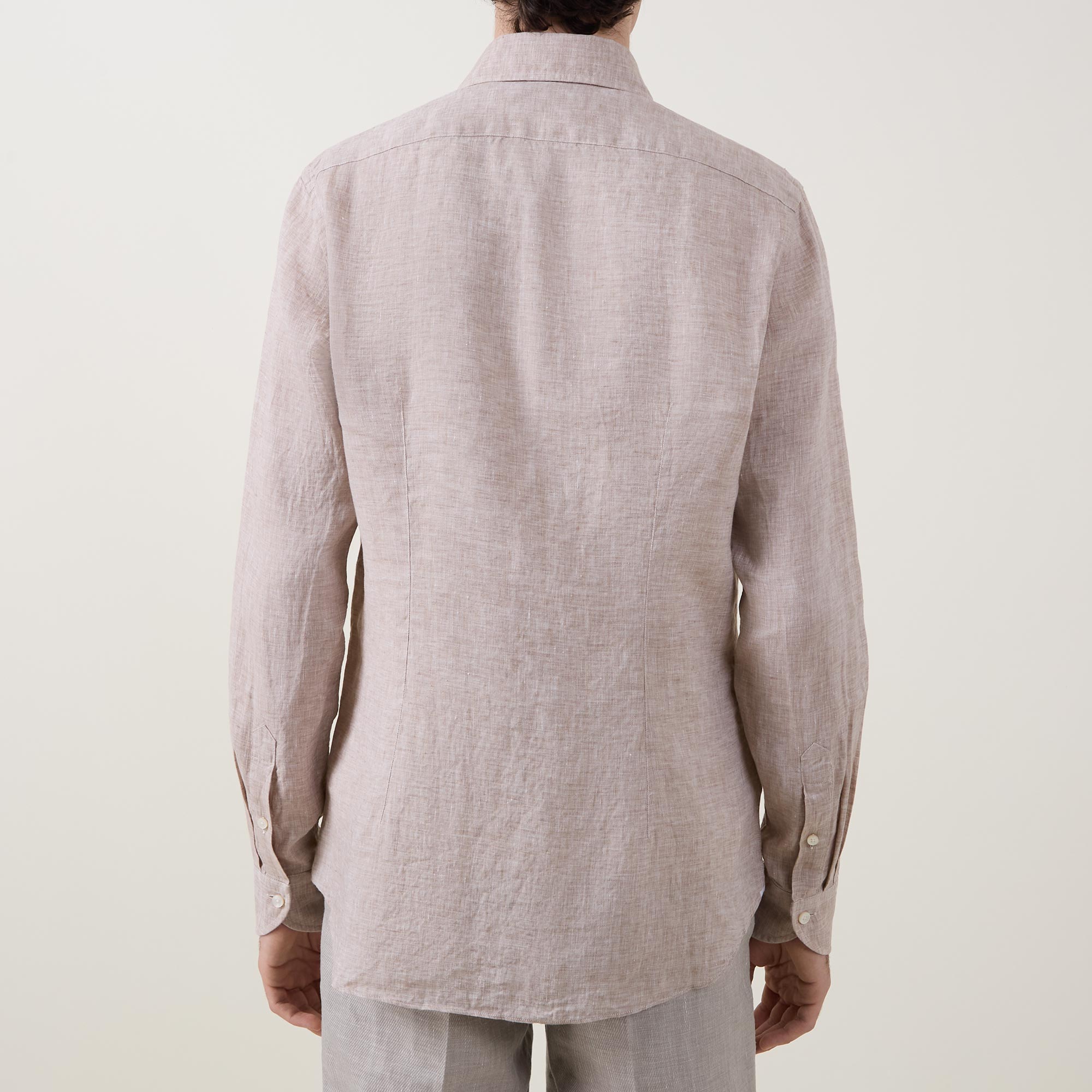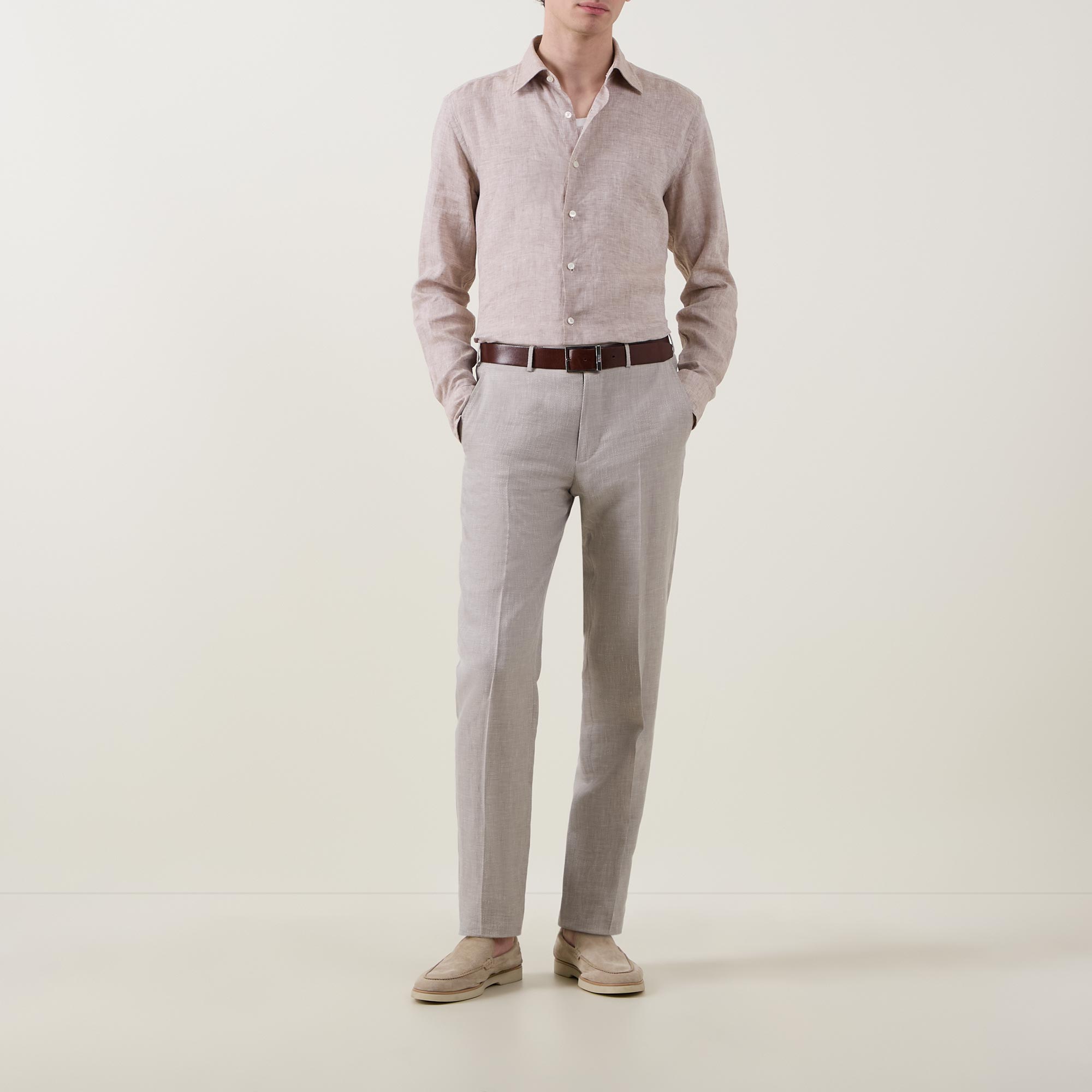 • Classic collar, long sleeves, single-cuffs with button fastenings, front button placket, curved hemline, lightweight linen fabric