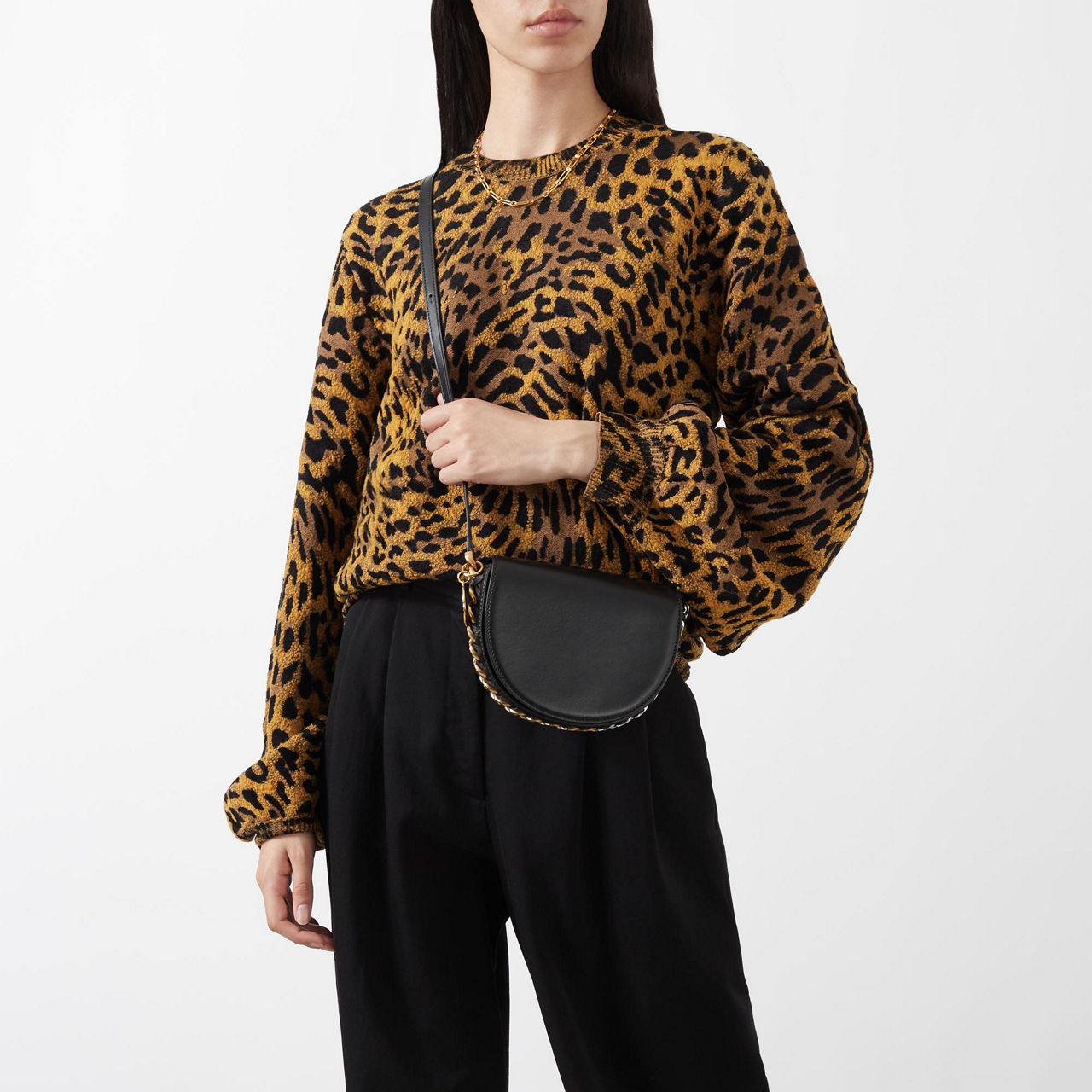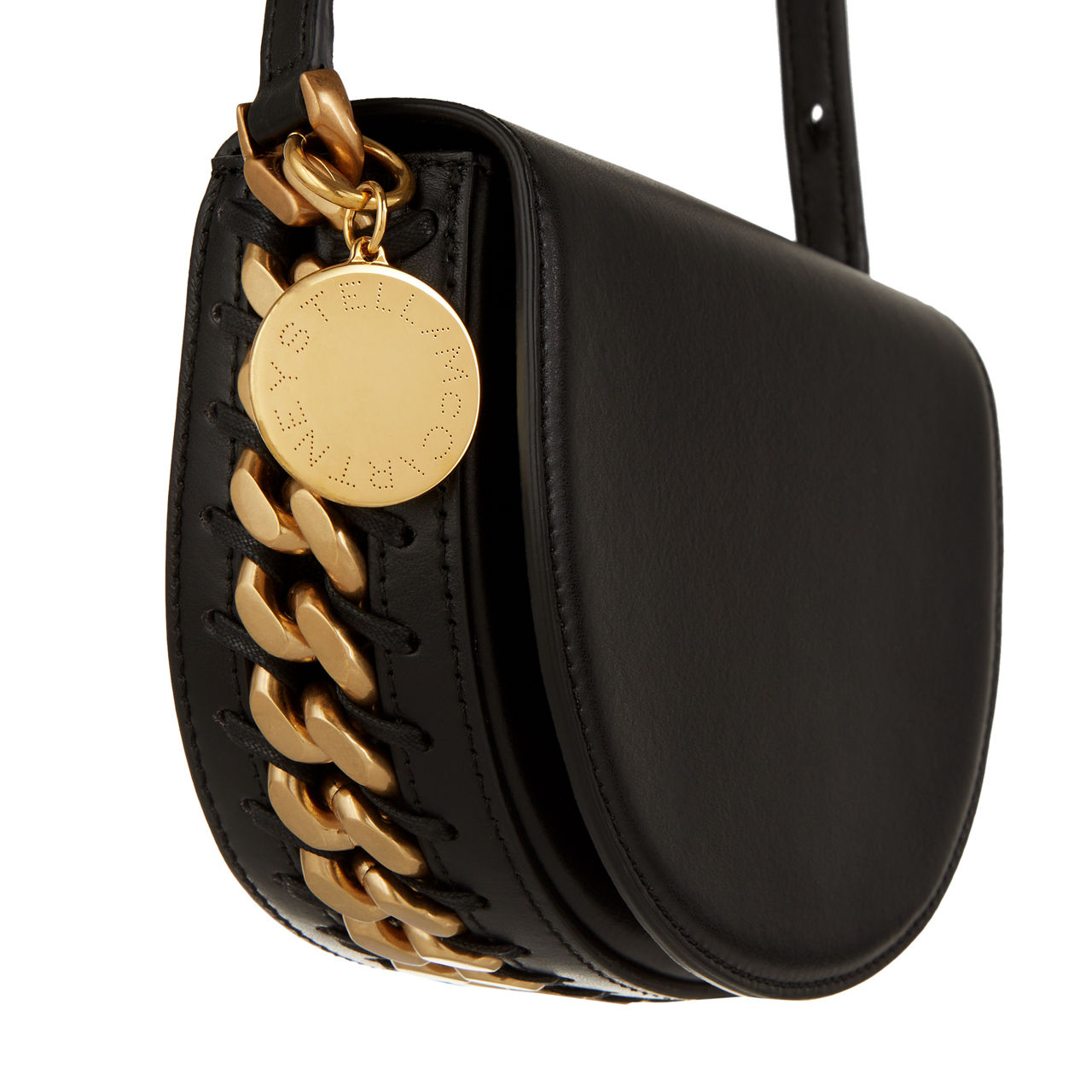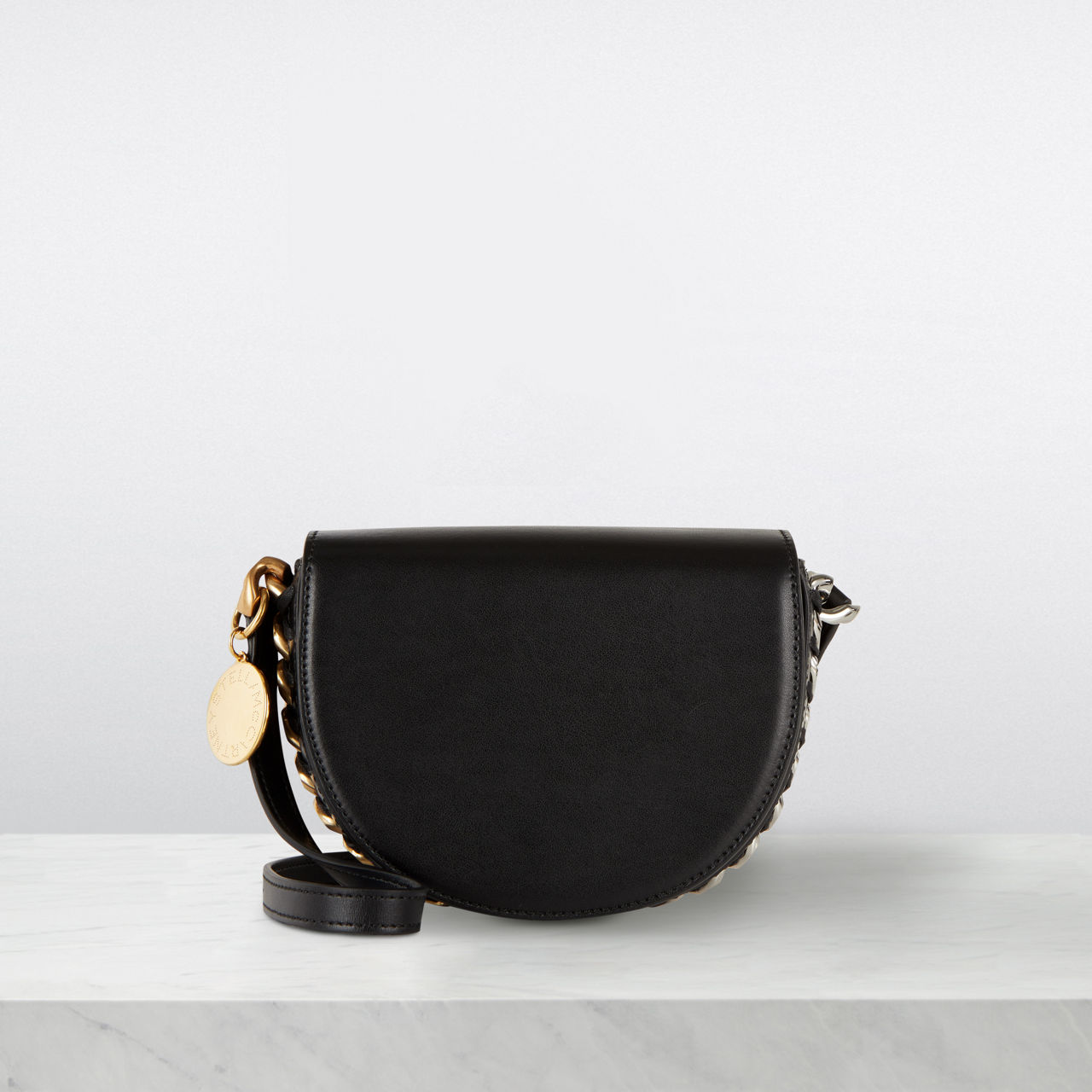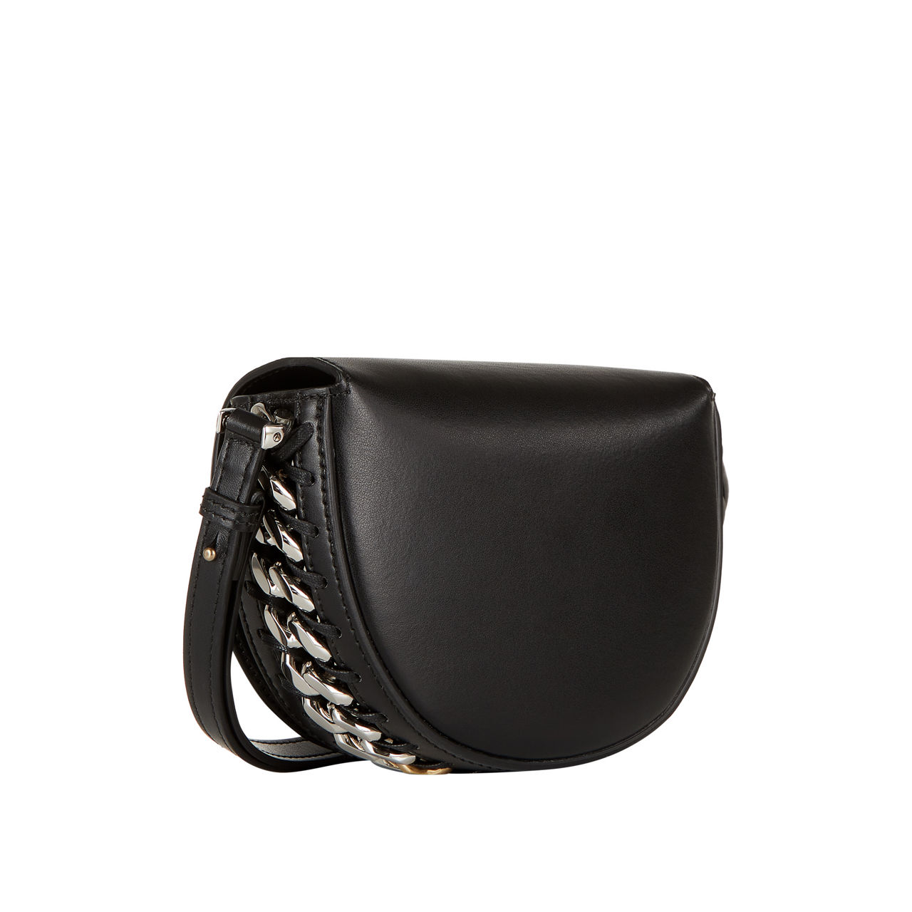 Stella McCartney scales up its signature curb chain, it trims the half-moon profile on the Frayme bag. Crafted from faux leather, it's secured with a flap closure and fitted with a compact interior just for your essentials.