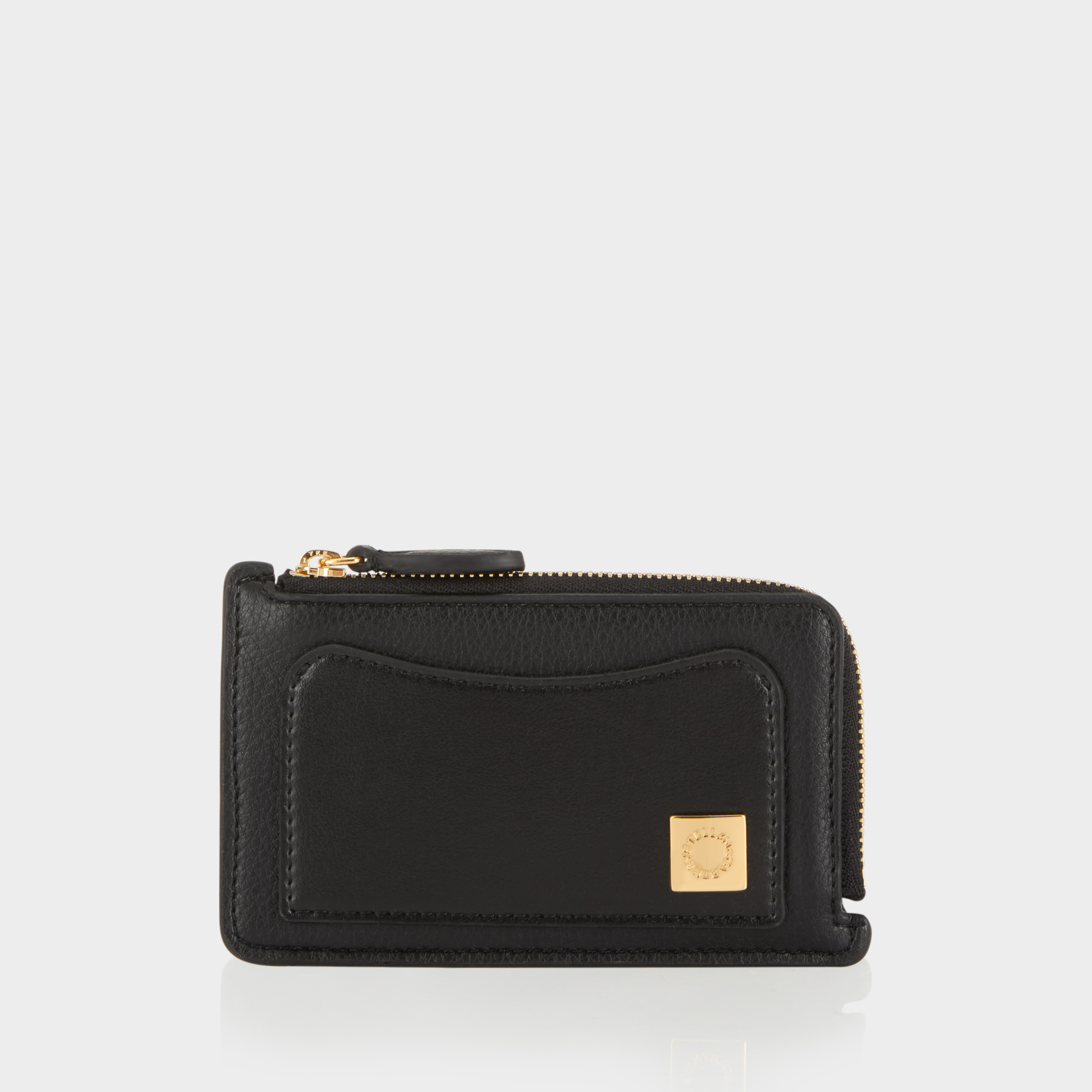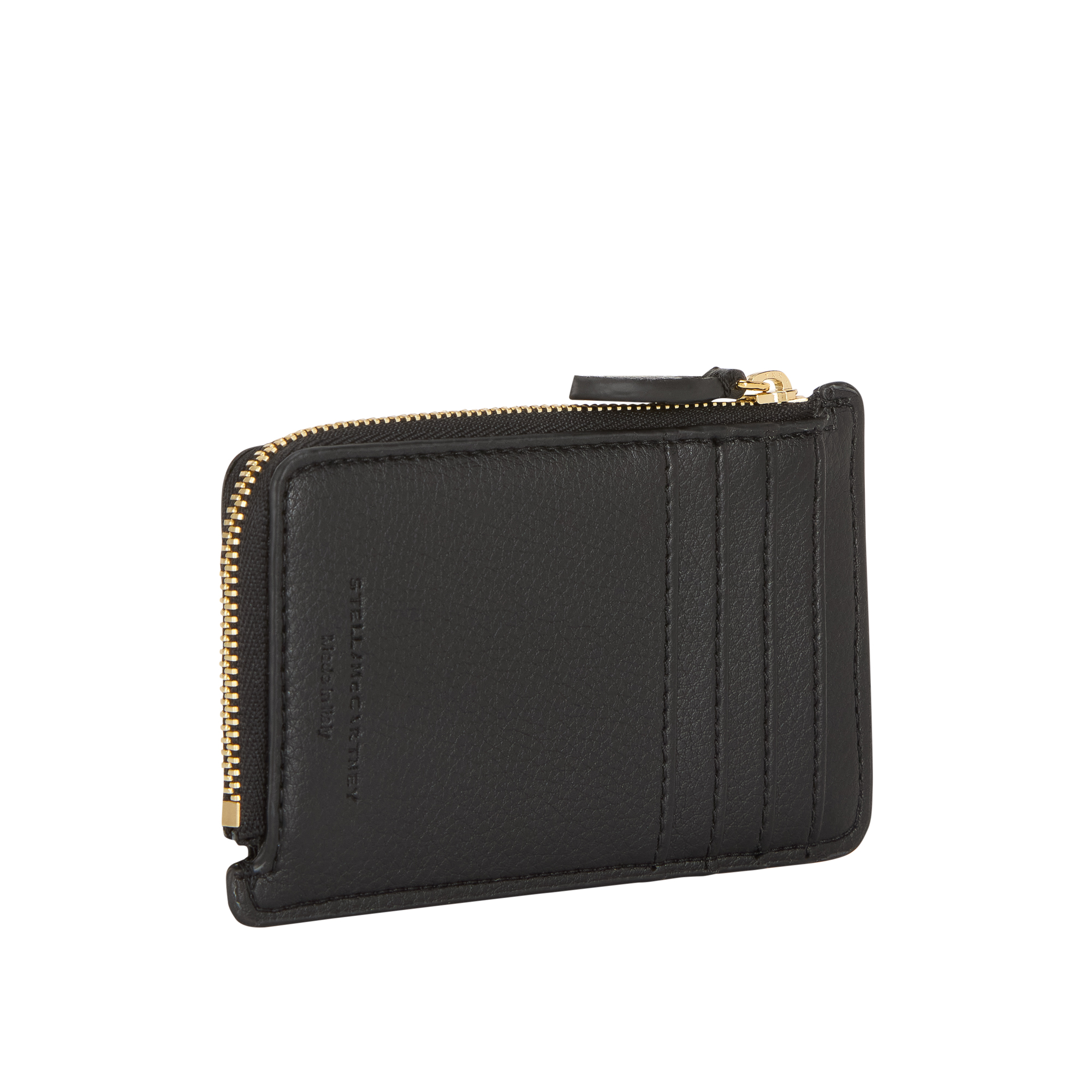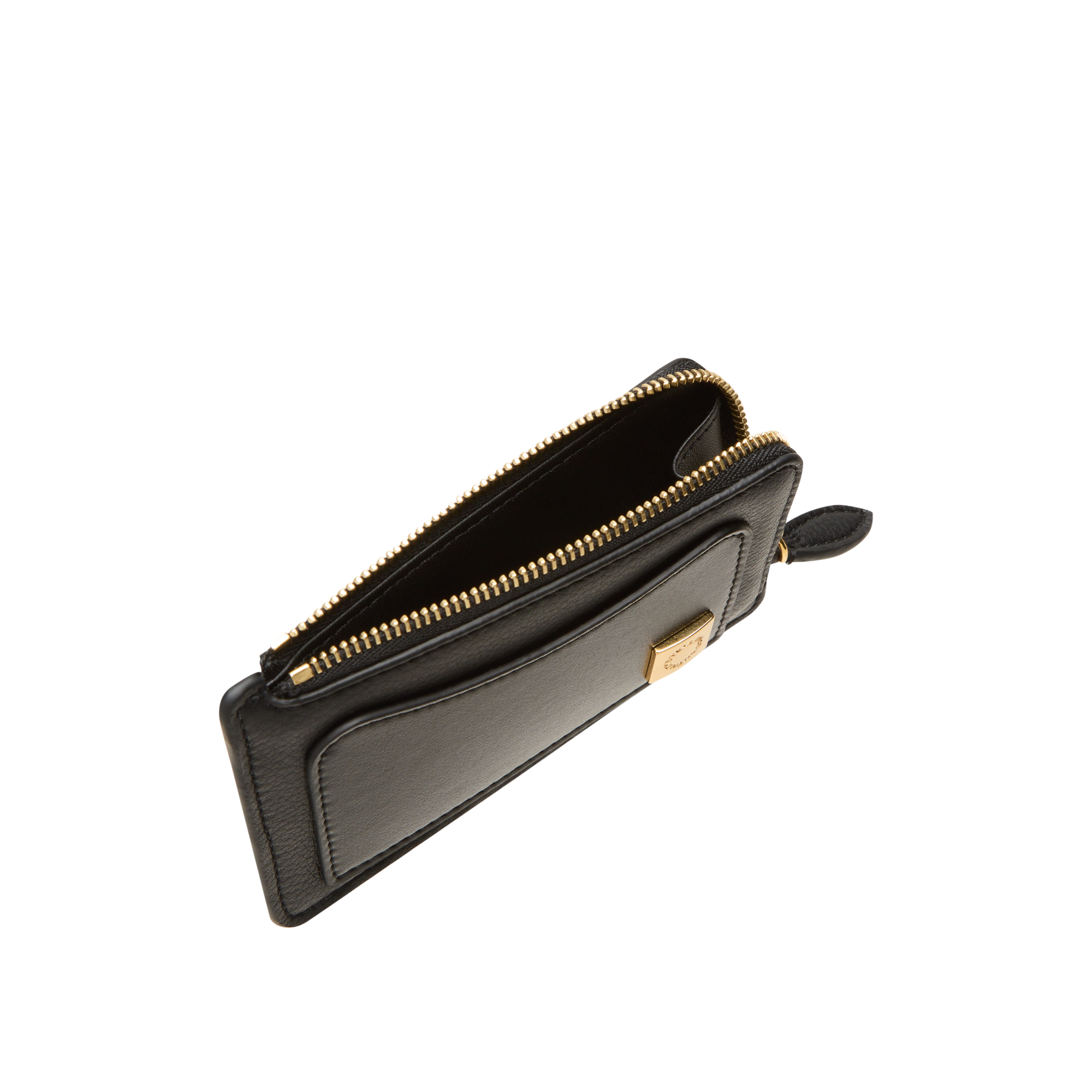 - Slim silhouette, gold-tone hardware, logo details, zip fastening, tonal stitching, exterior card slots, front slip pocket