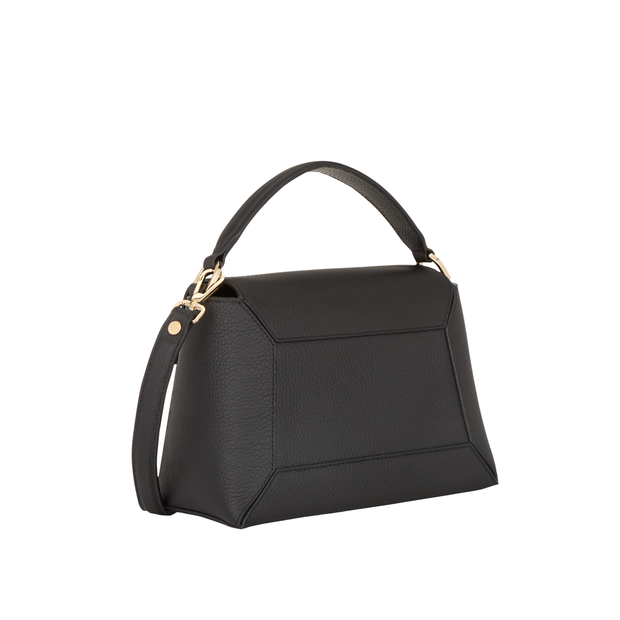 - Top carry handle, detachable and adjustable strap, flap fastening with dual magnetic button closure, distinctive Music Bar embellishment, grained finish, gold-tone hardware, foil logo details