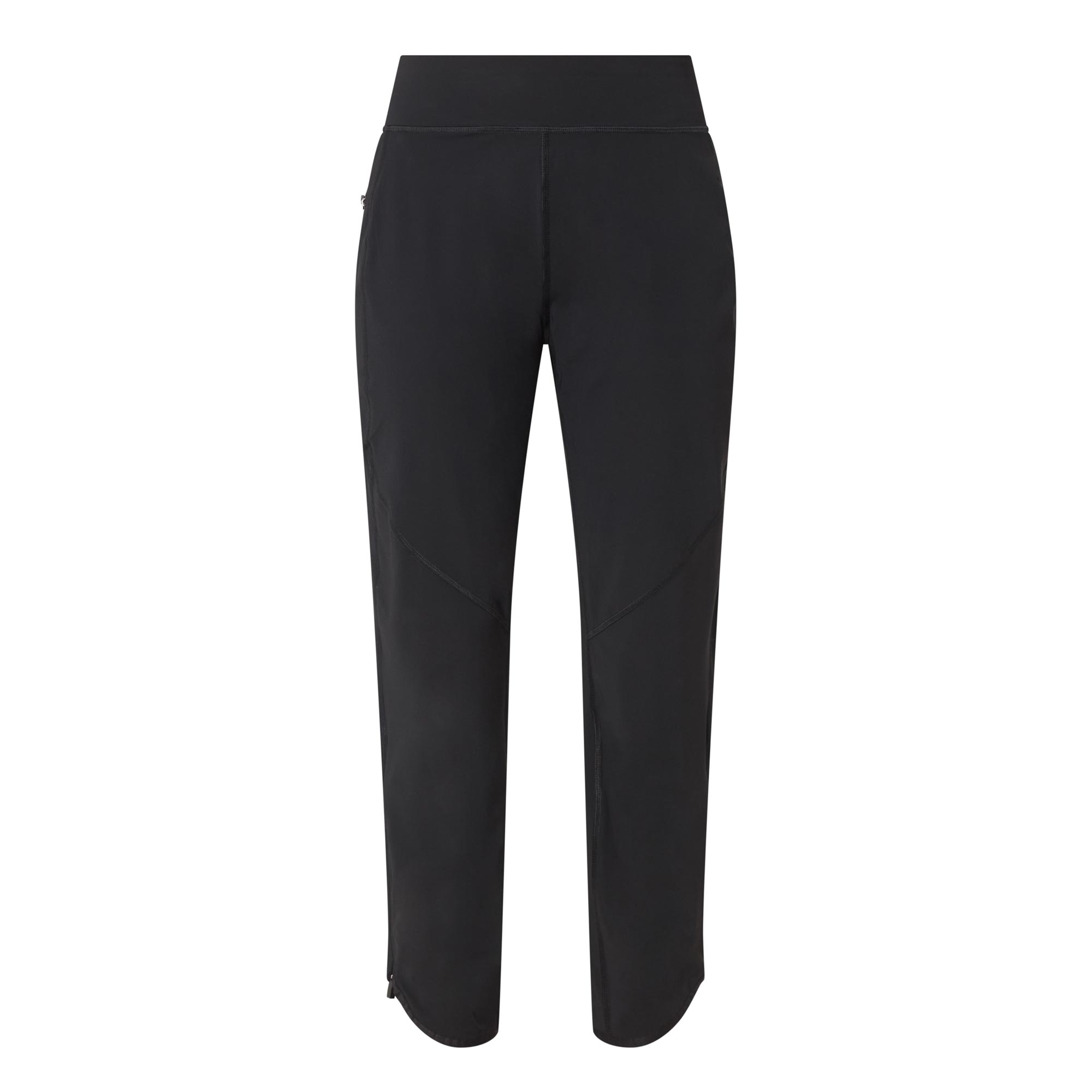 - Mid-rise, tapered-leg, elasticated waistband, two side entry pockets and one rear pocket with zip fastenings, curved hems, tonal stitching