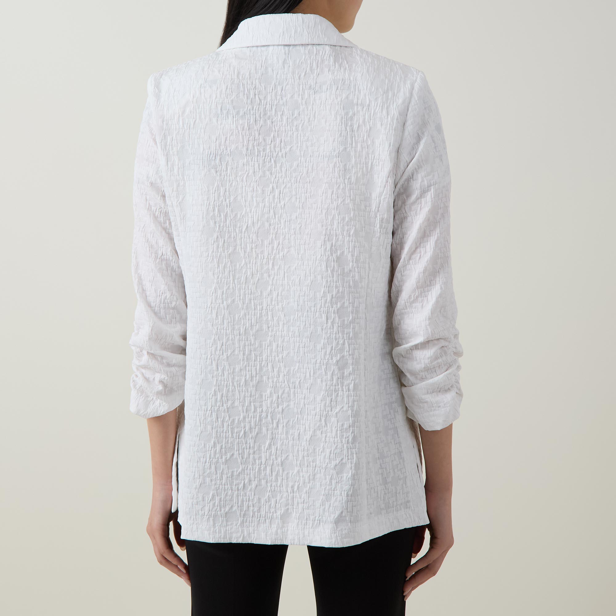• Textured, long sleeves, longline, single-breasted, button fastening