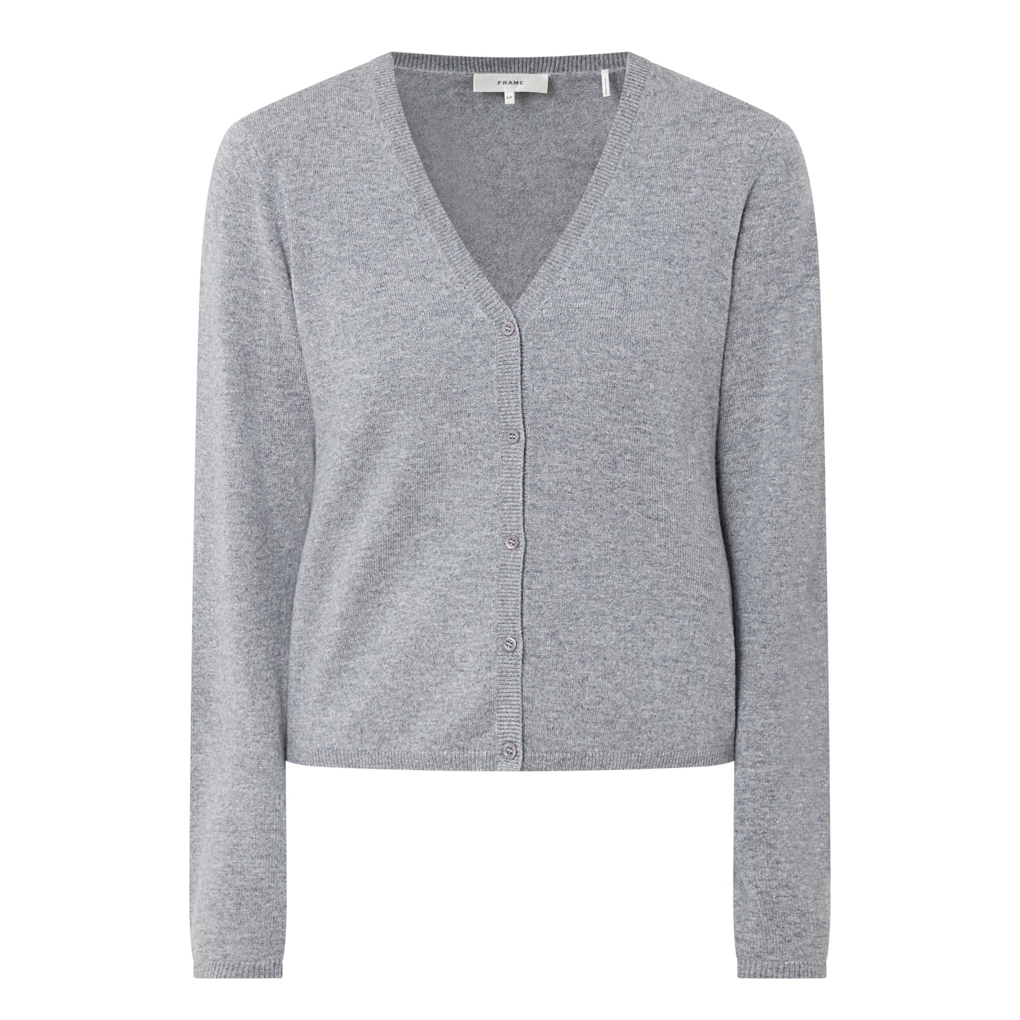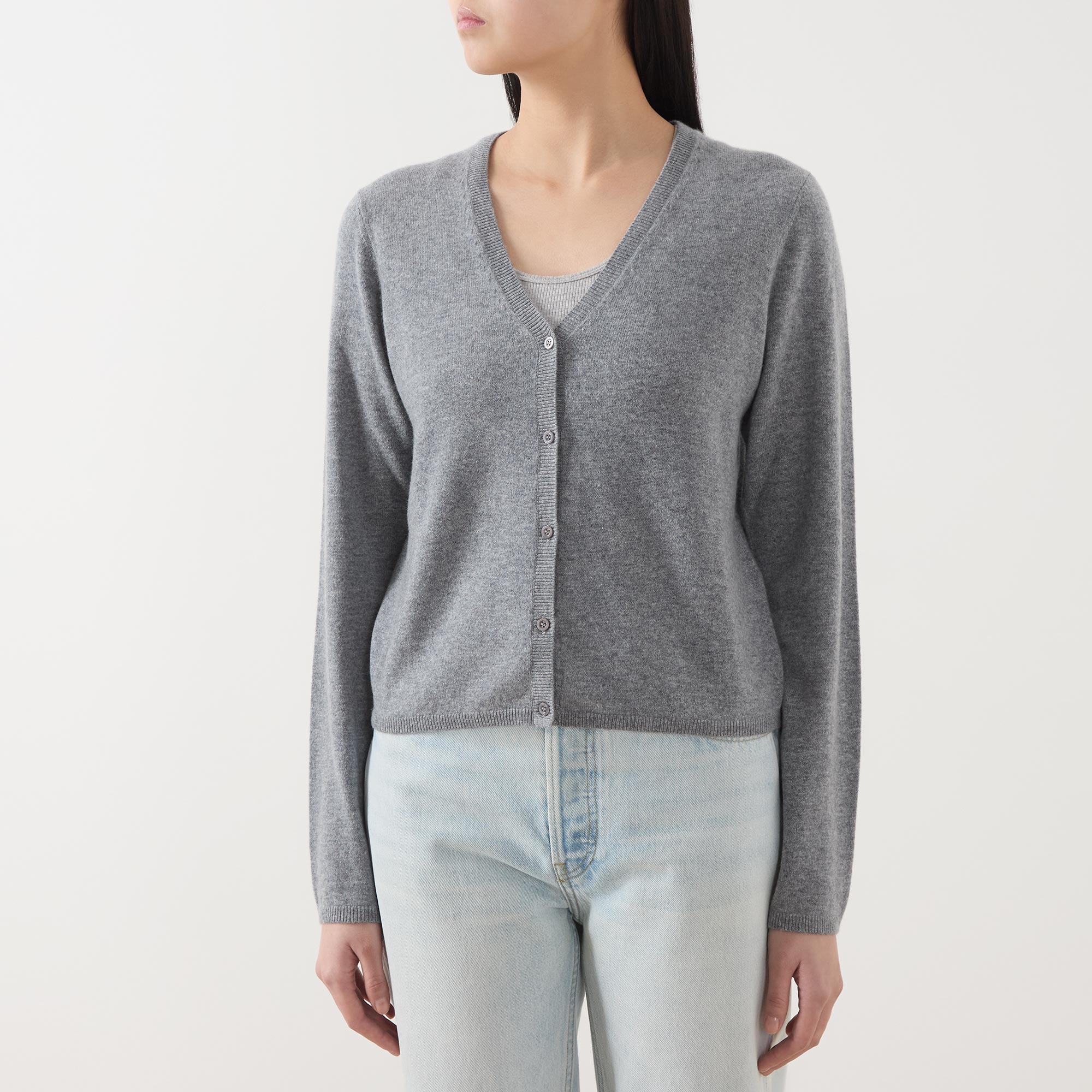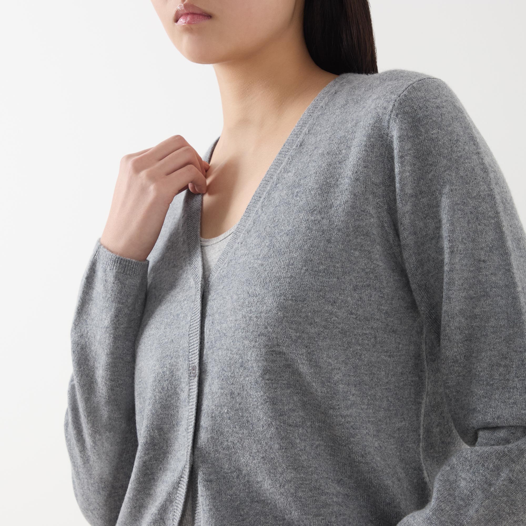 • V-neckline, long sleeves, front button fastening, straight hem, ribbed trims, fine-gauge knit construction, ultra-soft finish