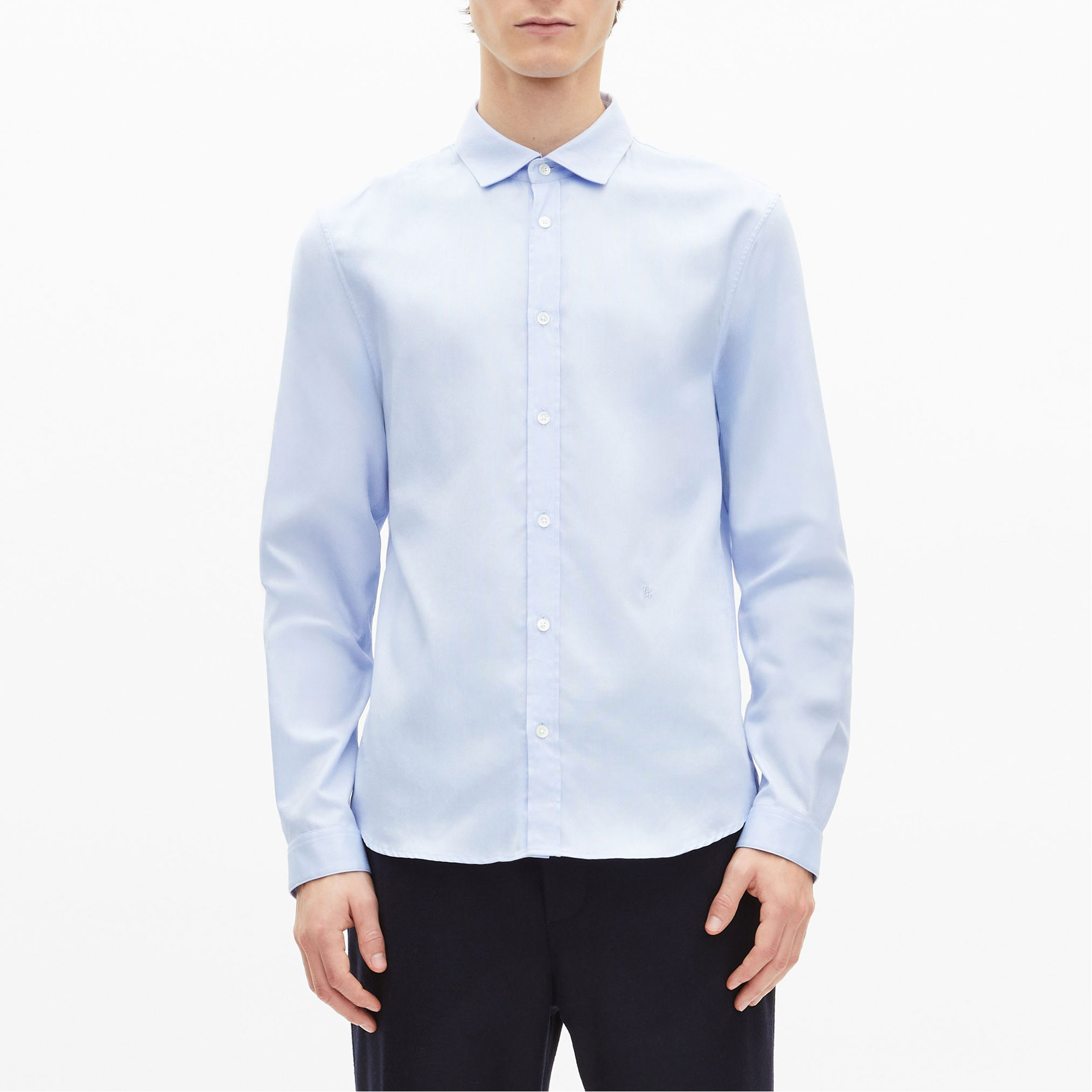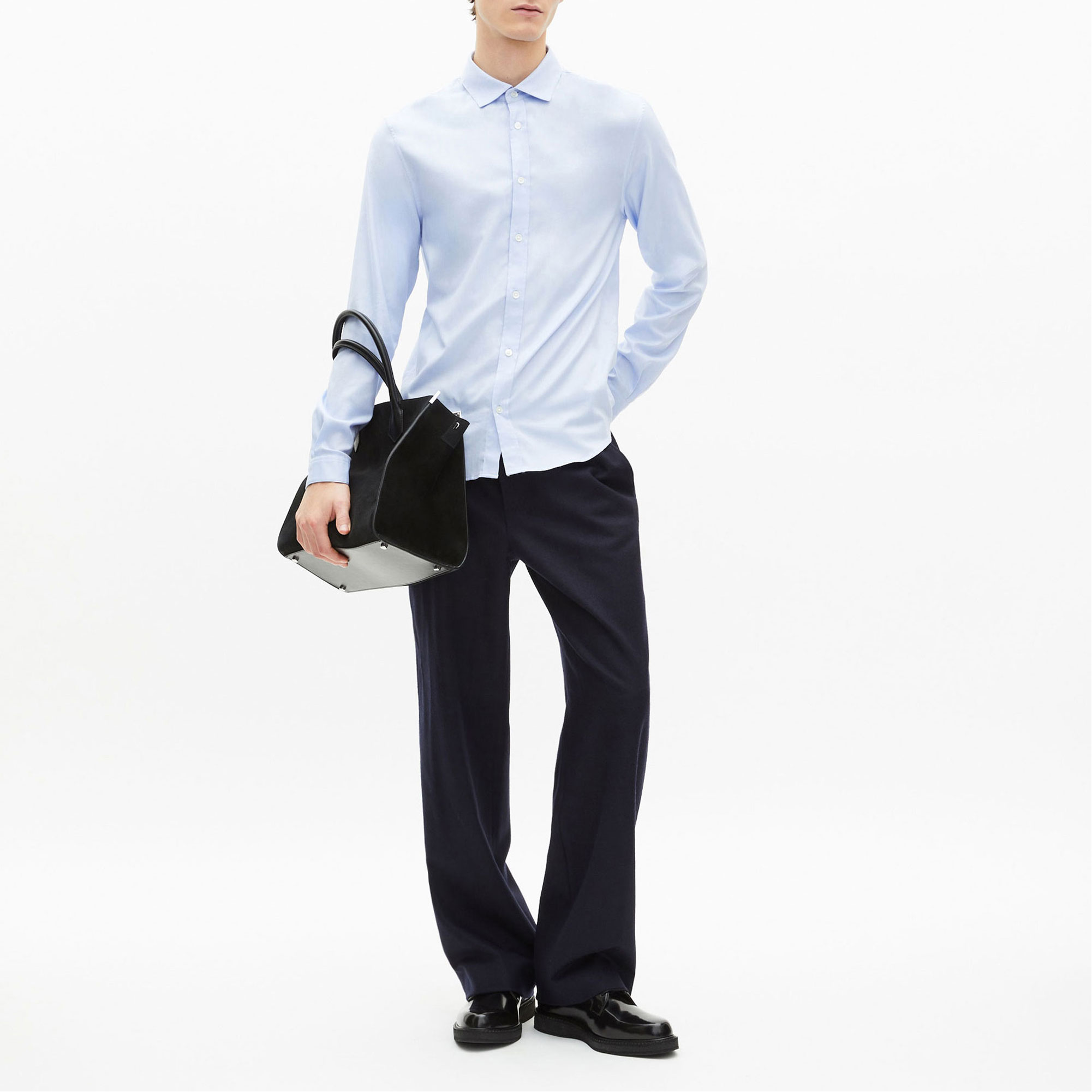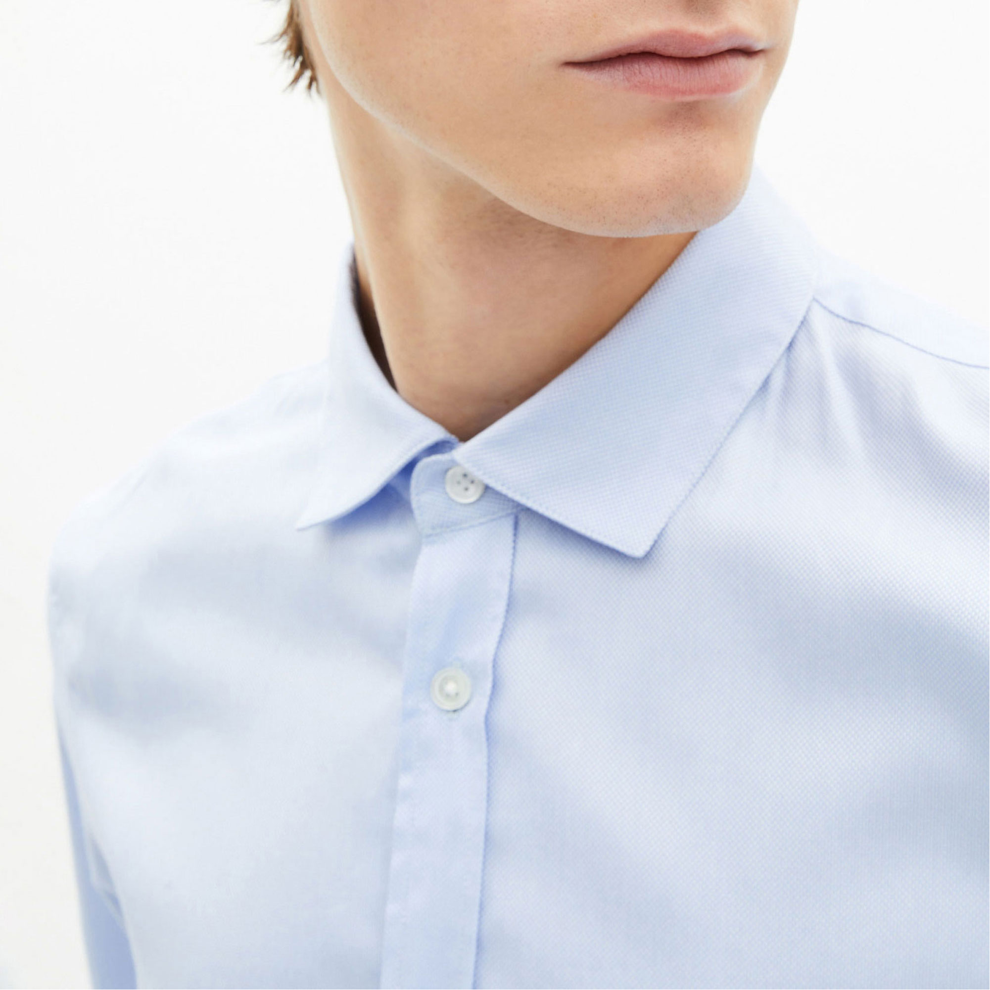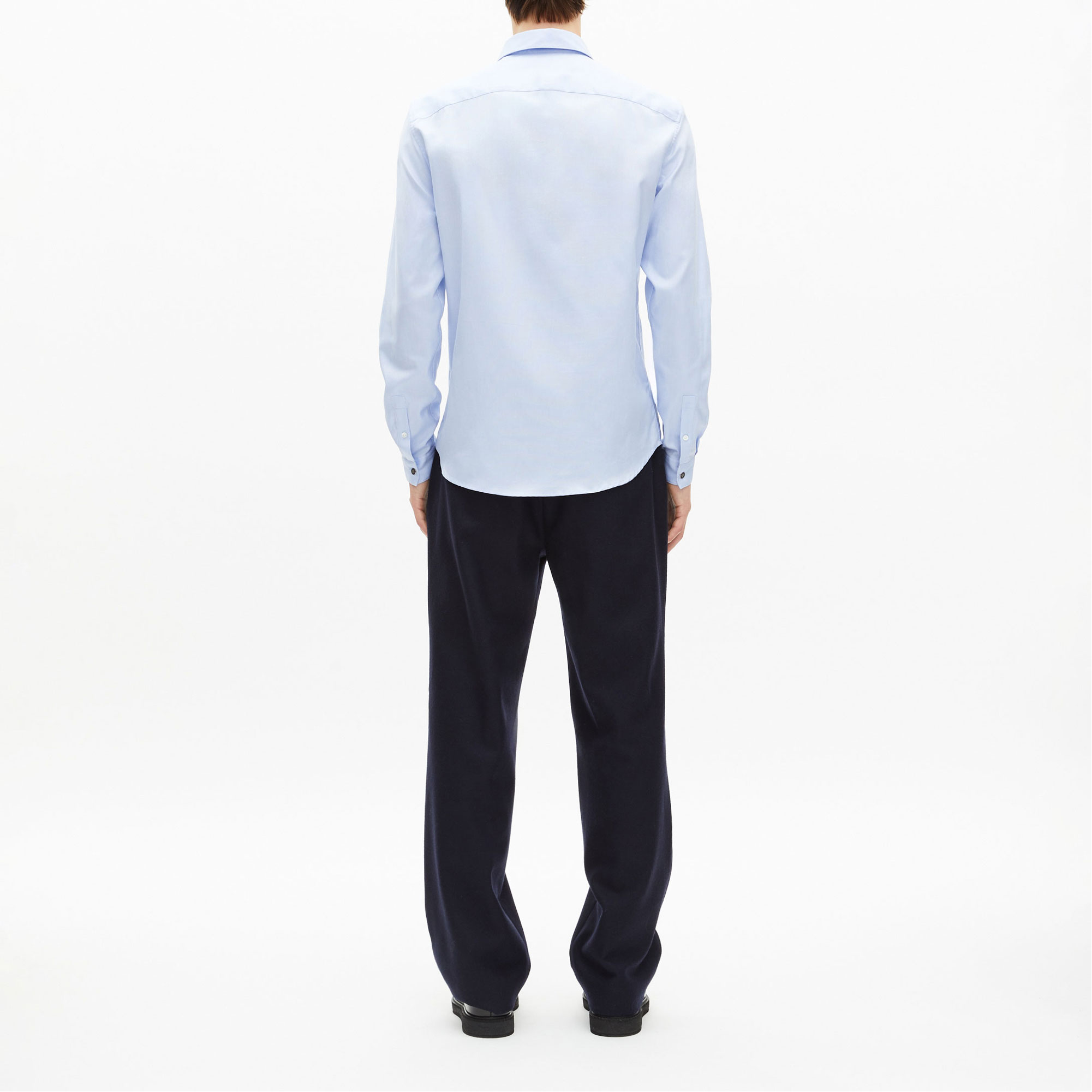 - Italian collar, pearl buttons, American button placket, long sleeves, tone-on-tone logo embroidery
