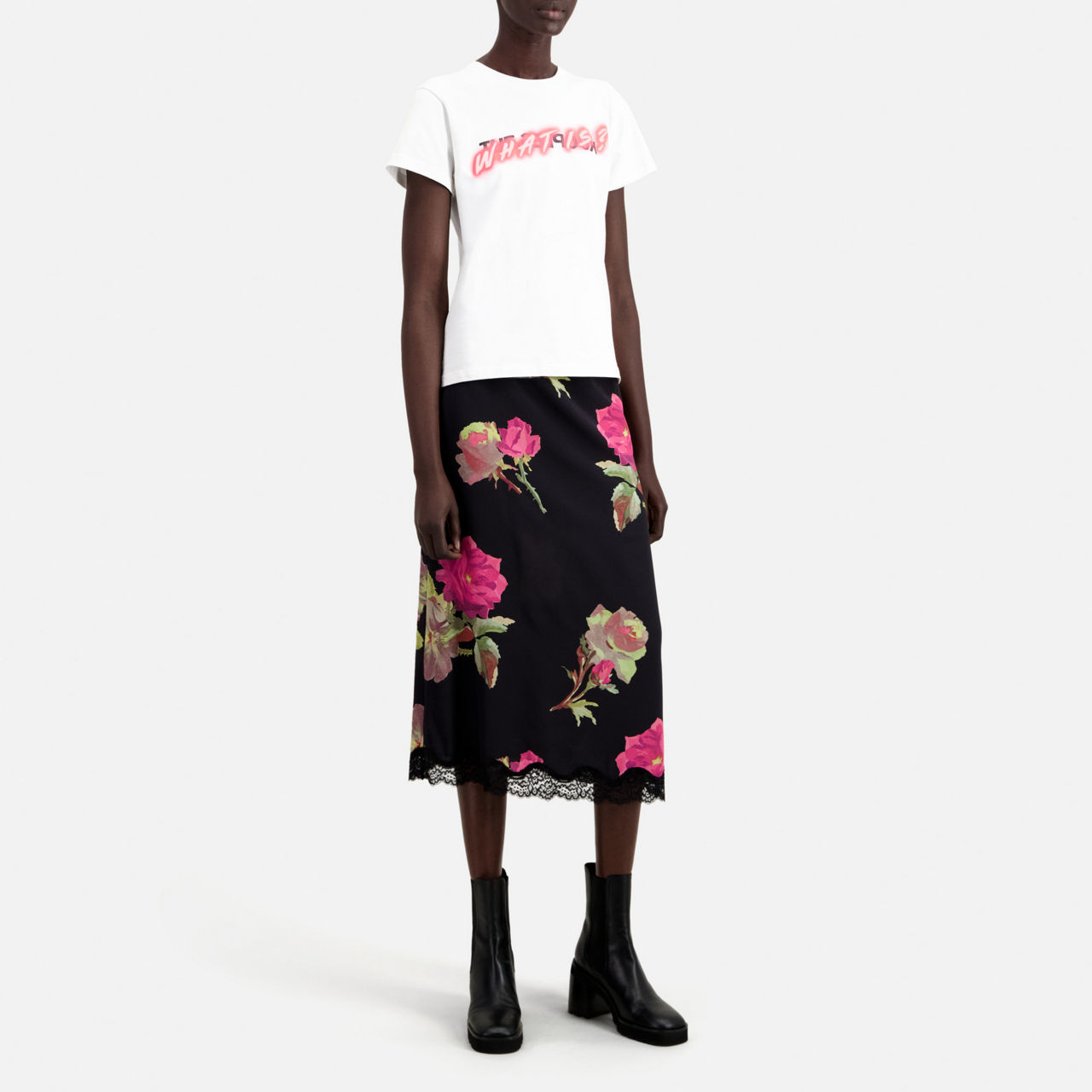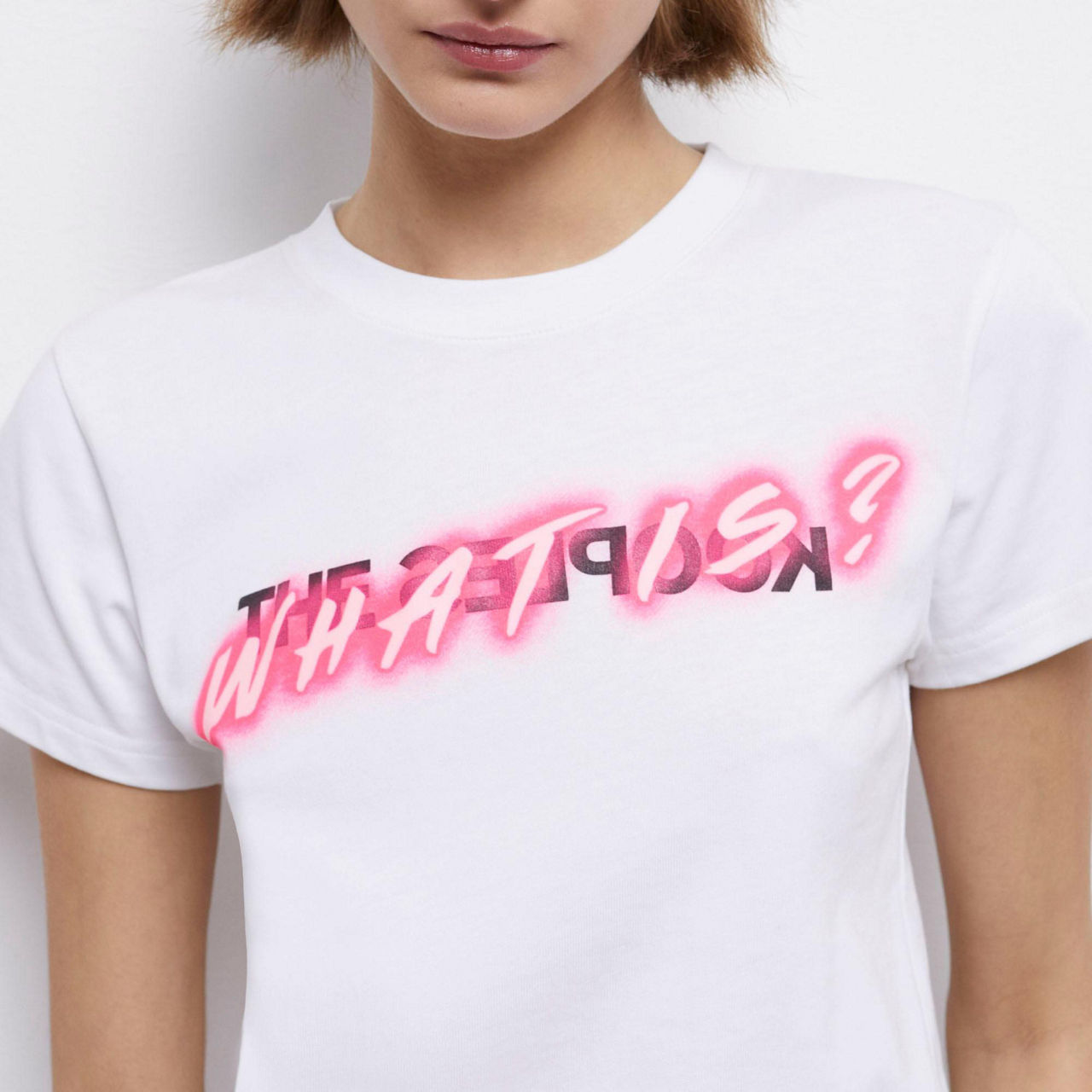 - Crew neckline, short sleeves, straight hemline, slogan print, logo details