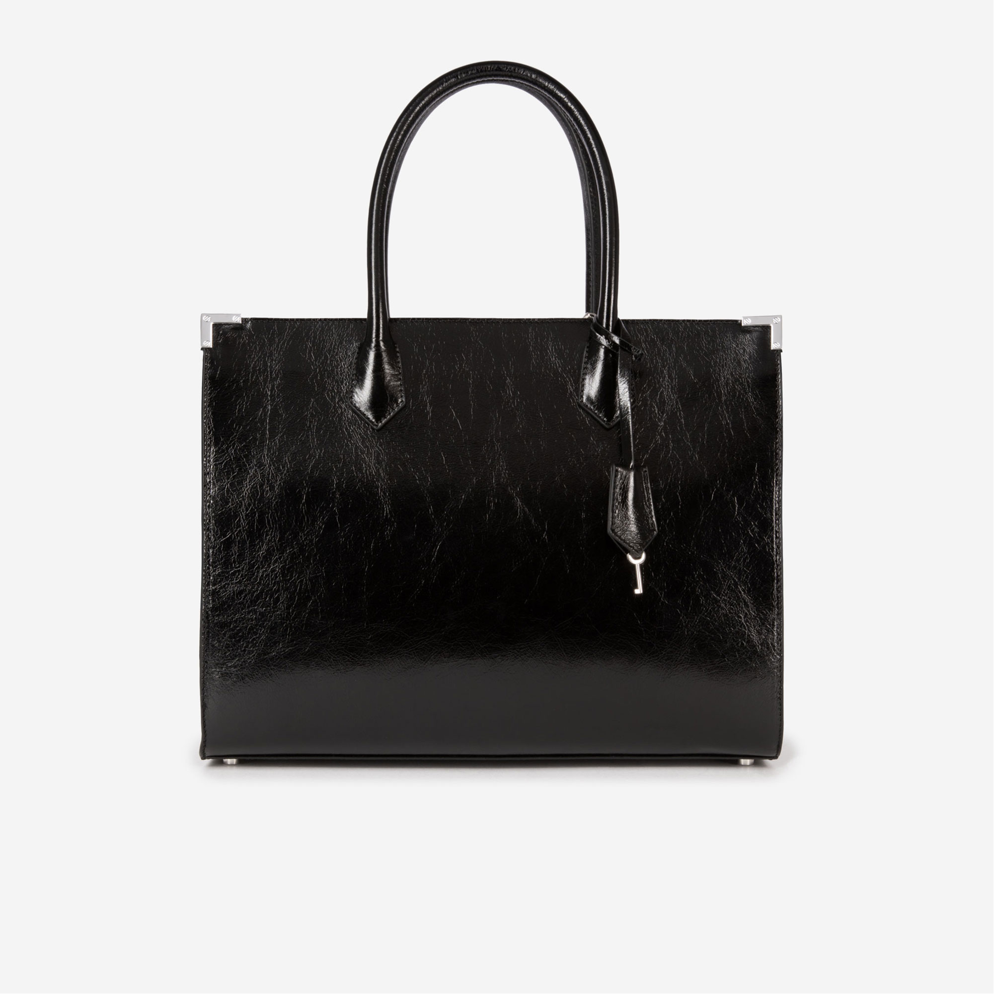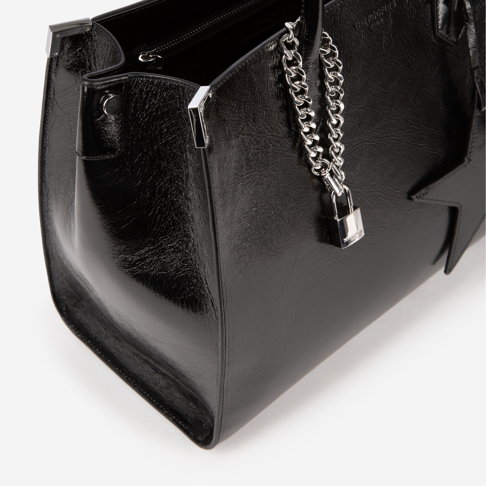 - Vintage effect leather, silver-tone hardware, handle for carrying by hand, star mirror, interior patch pocket, interior zipped pocket