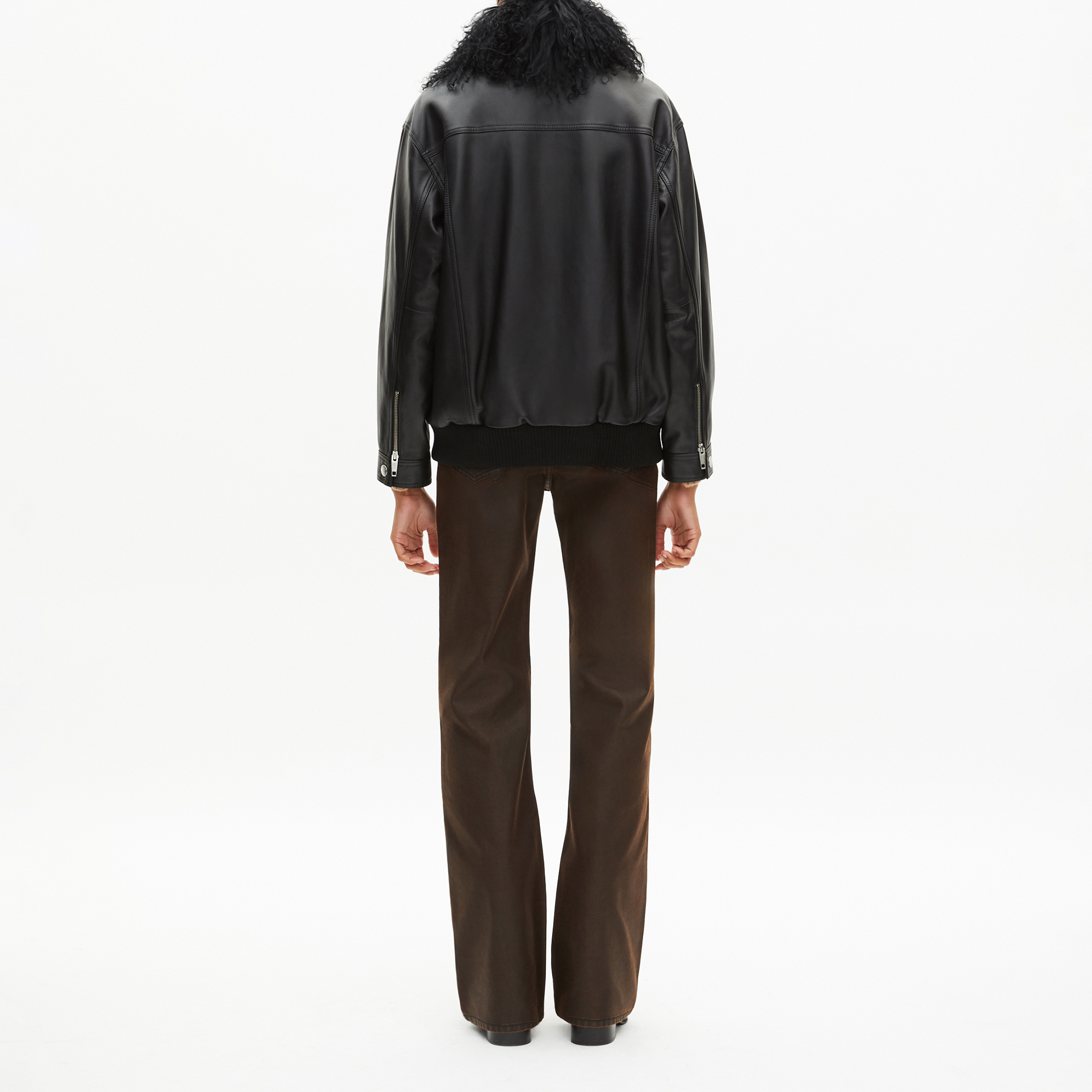- Composition and Care: Main: 100% sheepskin leather. Collar: 100% sheepskin. Lining: 100% viscose. Neck lining: 100% cotton. Rib: 86% acrylic, 11% polyester, 3% elastane. Do not wash