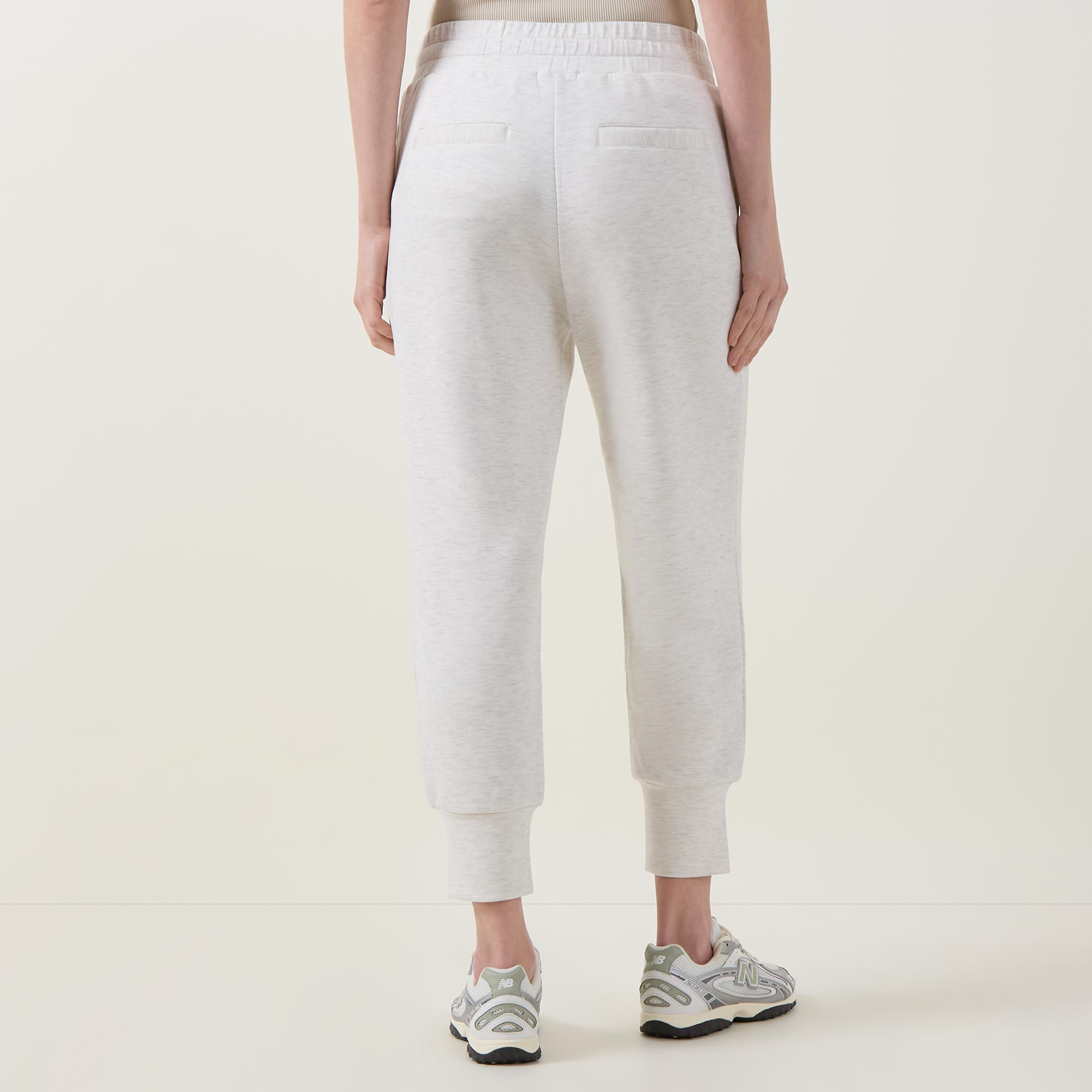 - Mid rise, slim leg, elasticated waistband, internal drawstring fastening, two side pockets, two rear welt pockets, cuffed hems, DoubleSoft® fabric