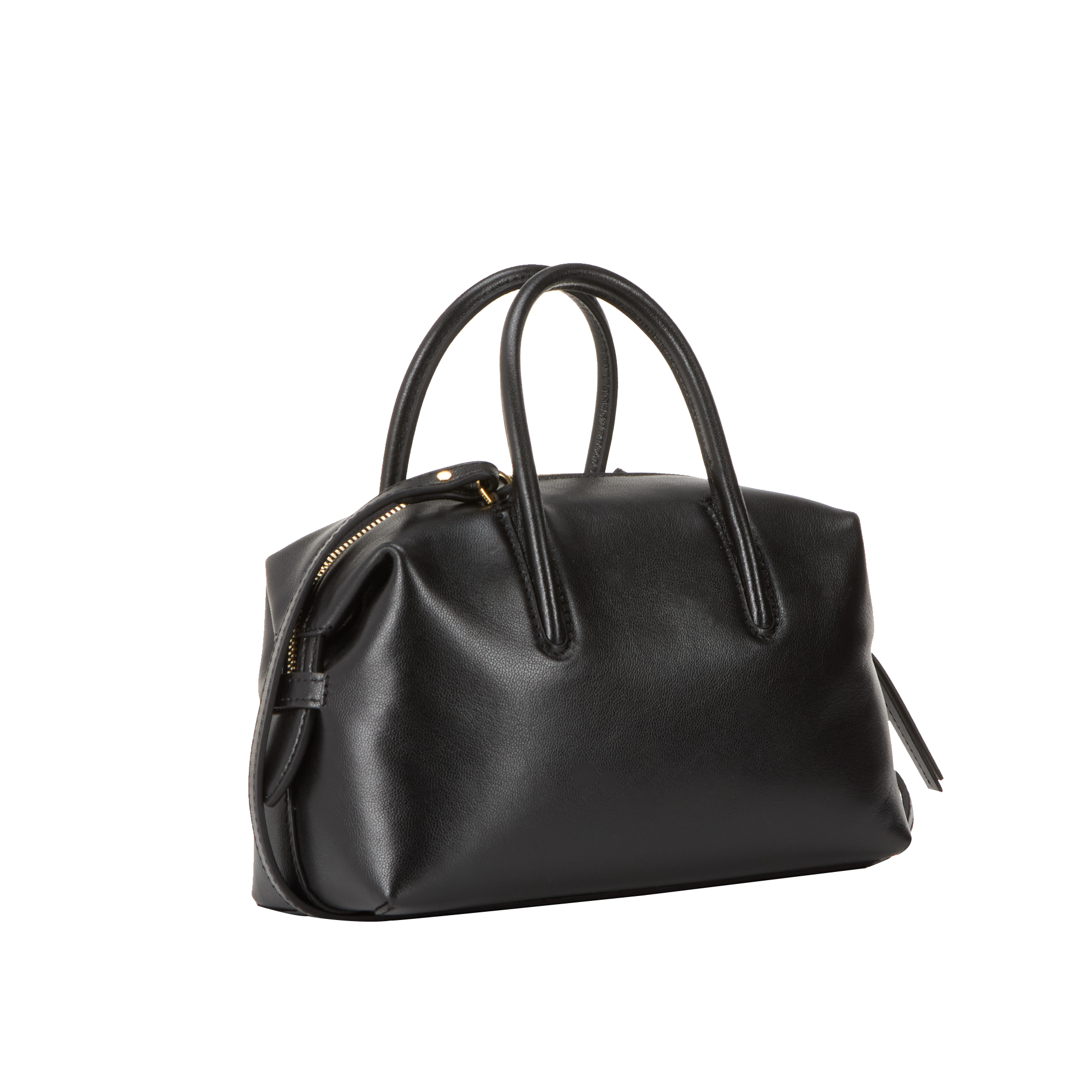 • Top carry handles, detachable and adjustable crossbody strap, zip fastening, gold-tone hardware, grained finish, protective studs at base, foil logo lettering