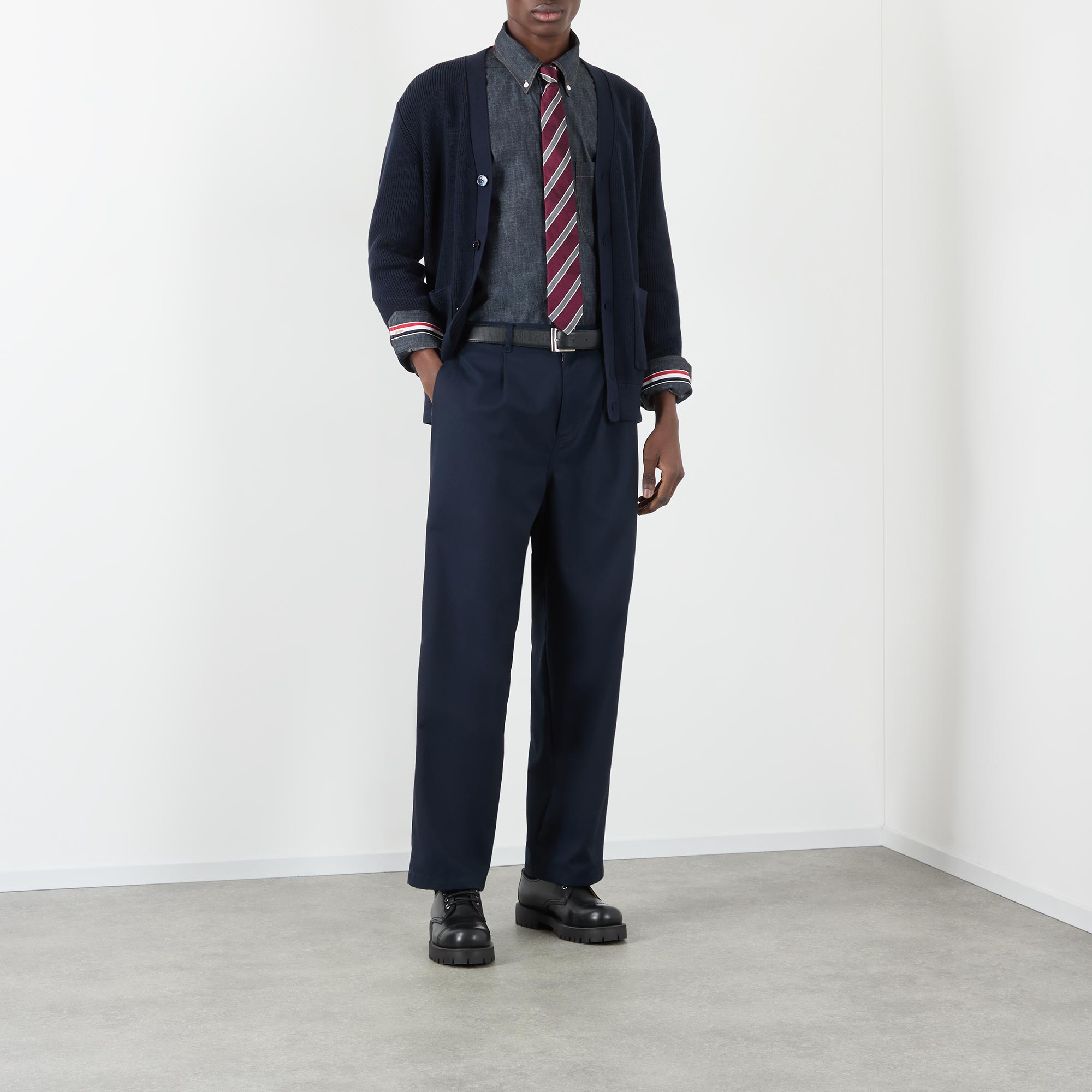 Since 2001, Thom Browne has been known for its uniform-like tailoring and razor-sharp silhouettes. Today, the award-winning brand offers a range of comfortable and contemporary designs in knitwear, shirting and leisurewear, crafted from high-end materials in a variety of styles and patterns, finished with its iconic grosgrain stripe emblem throughout.