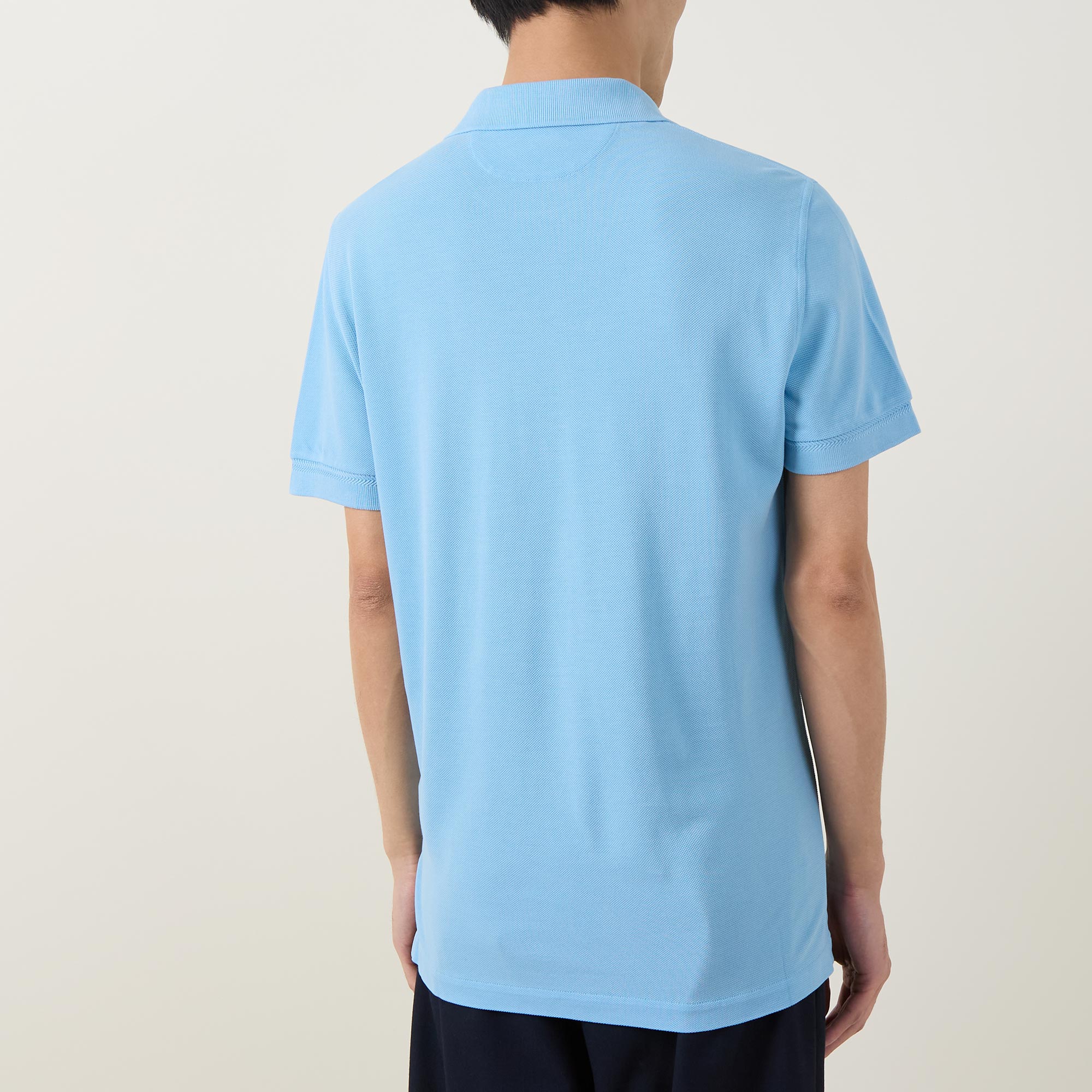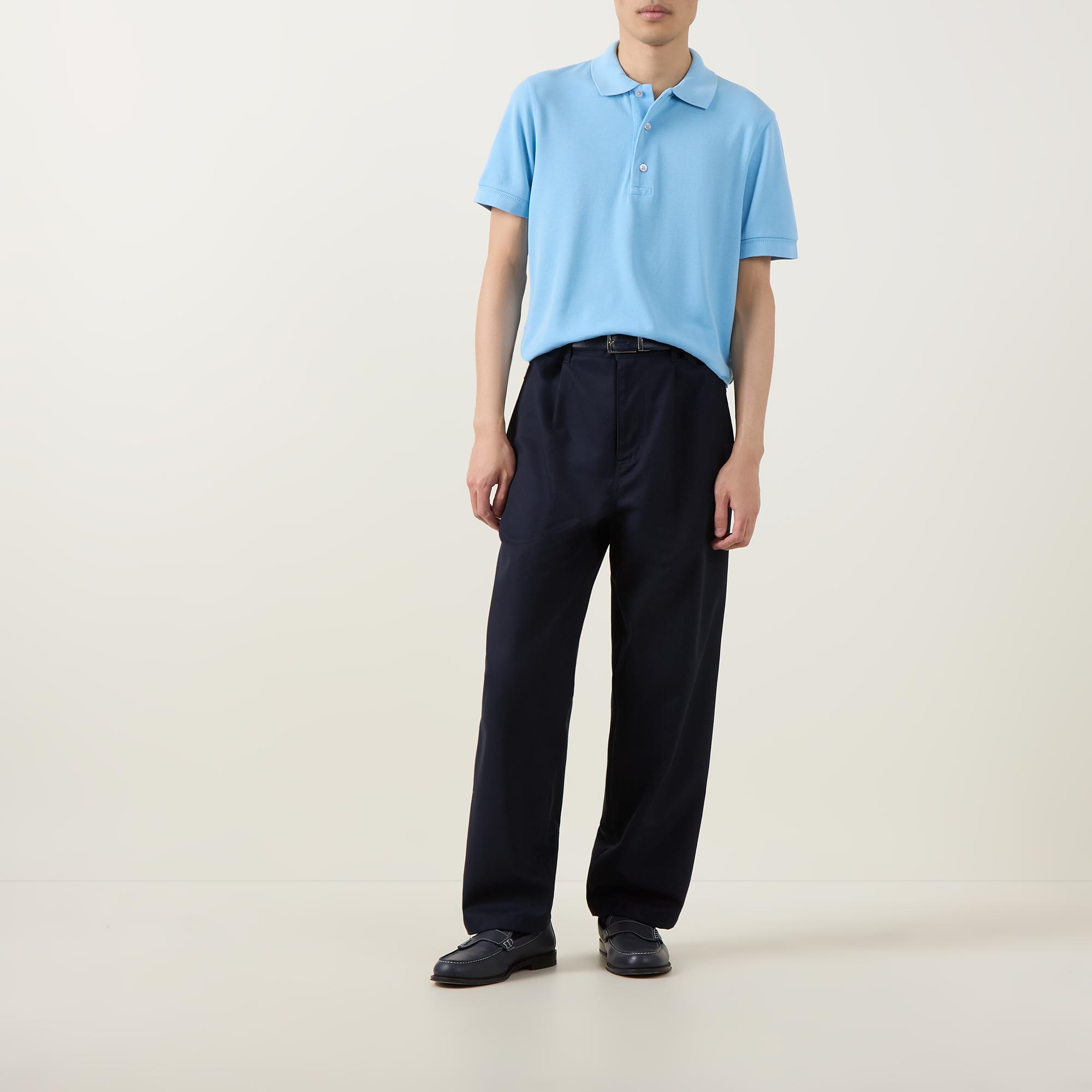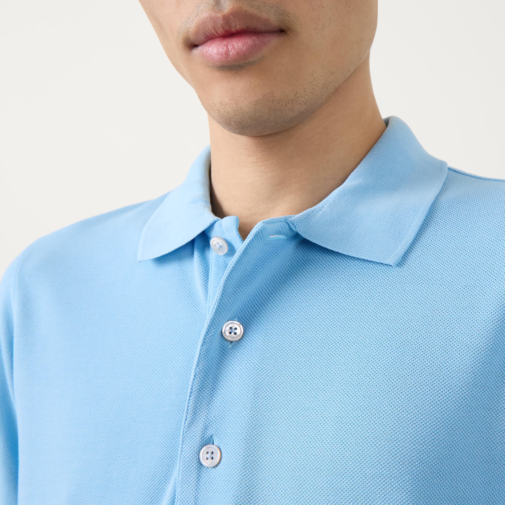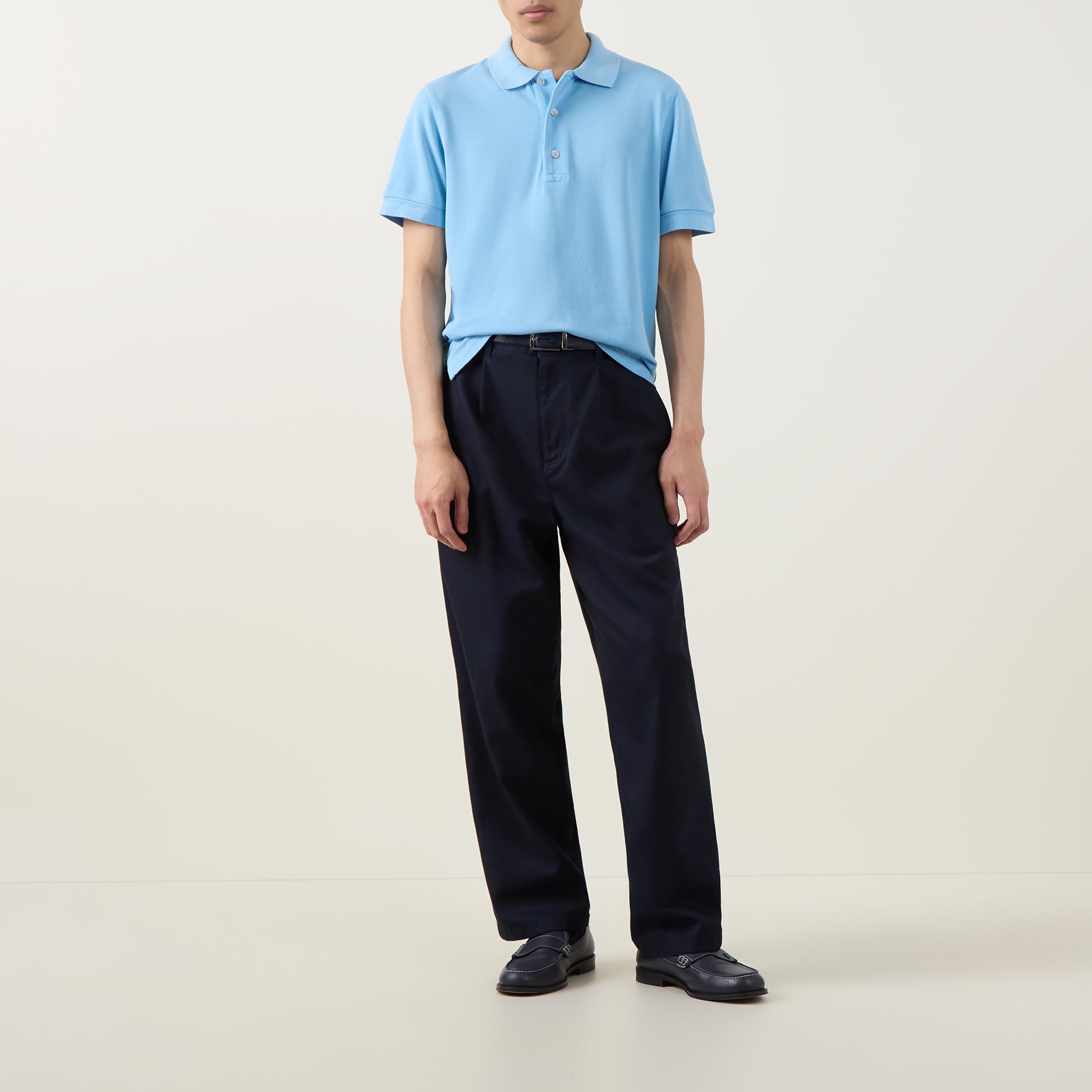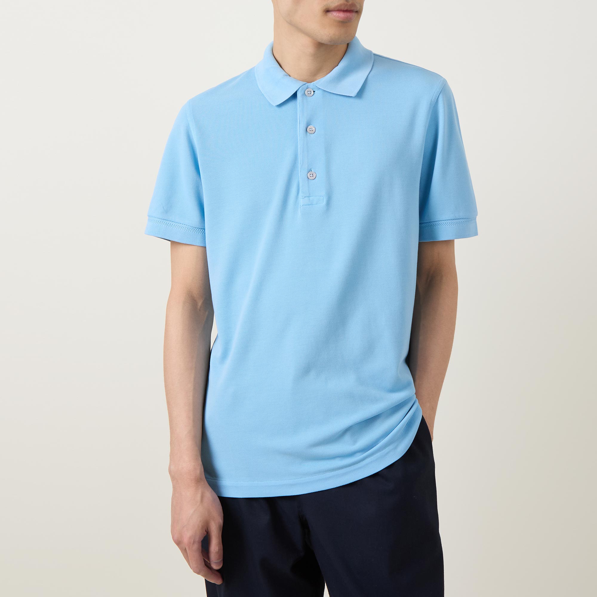 • Polo collar, short sleeves, button fastenings, straight hemline