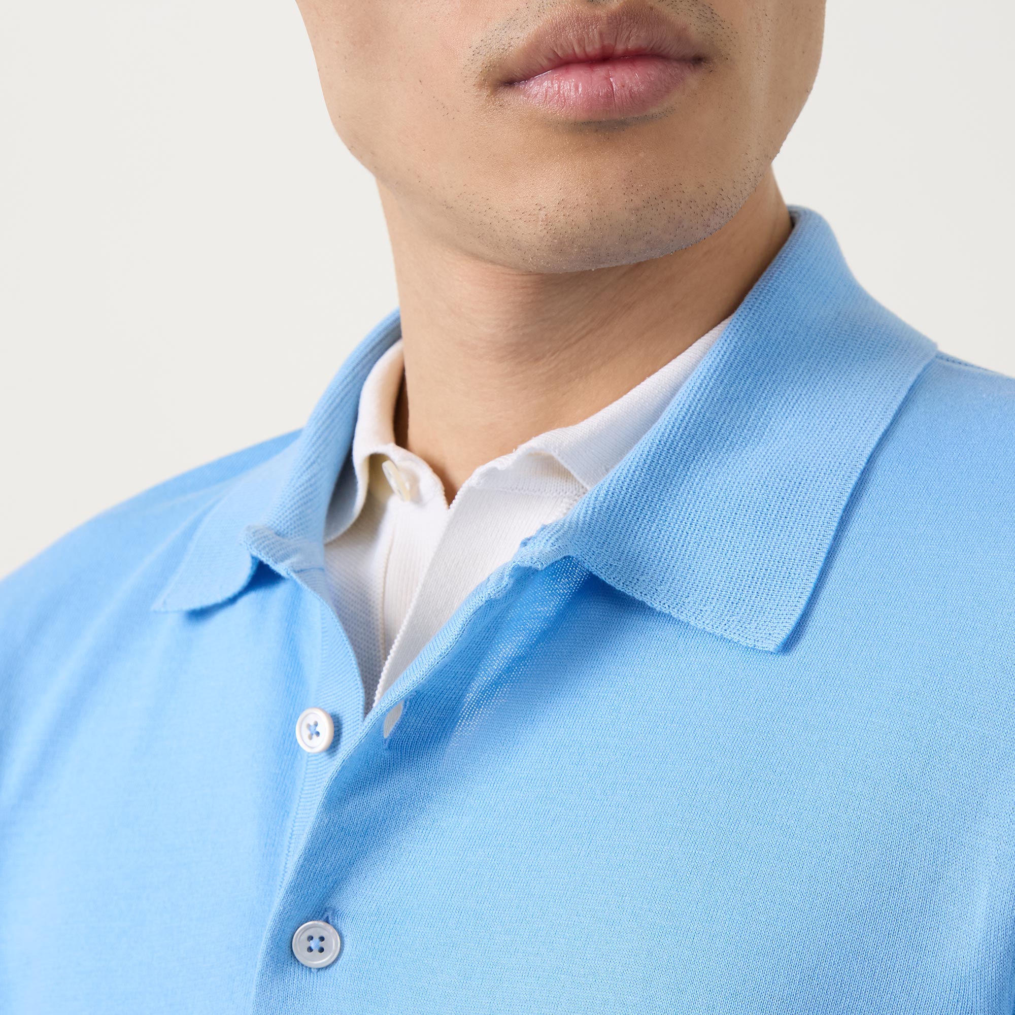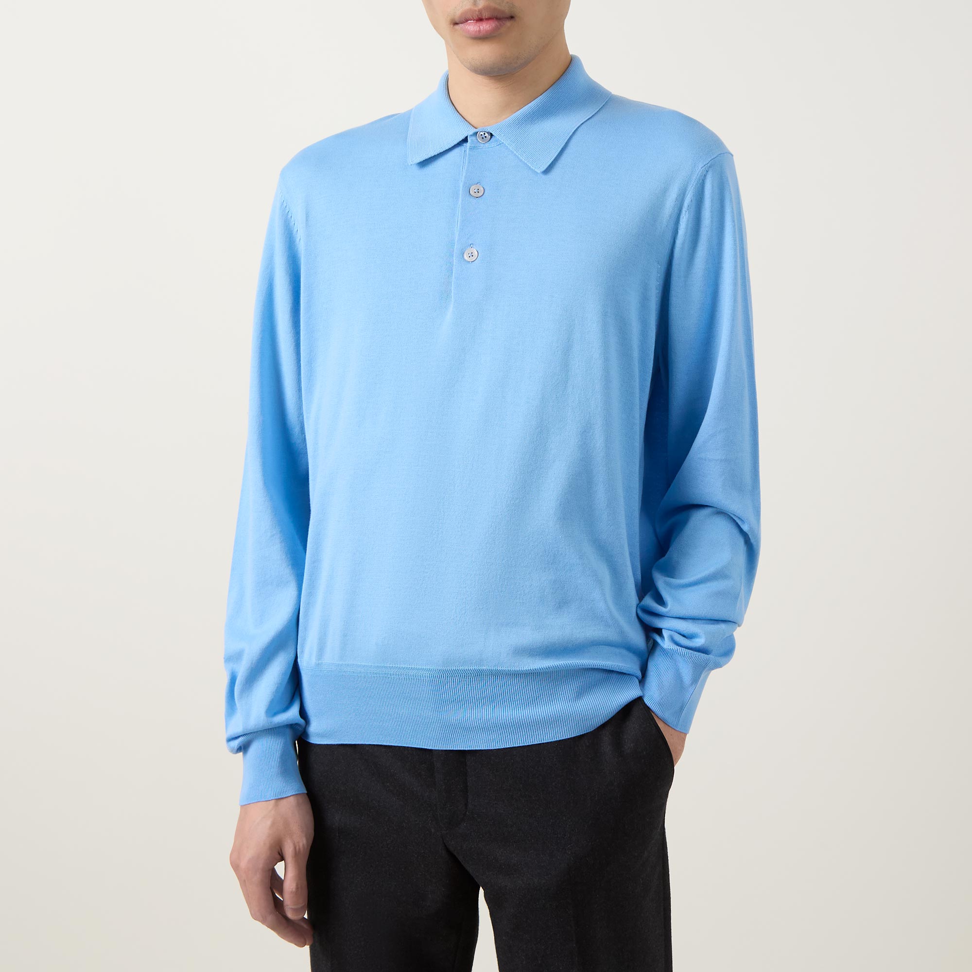 • Polo collar, long sleeves, button fastenings, straight hemline, ribbed trims