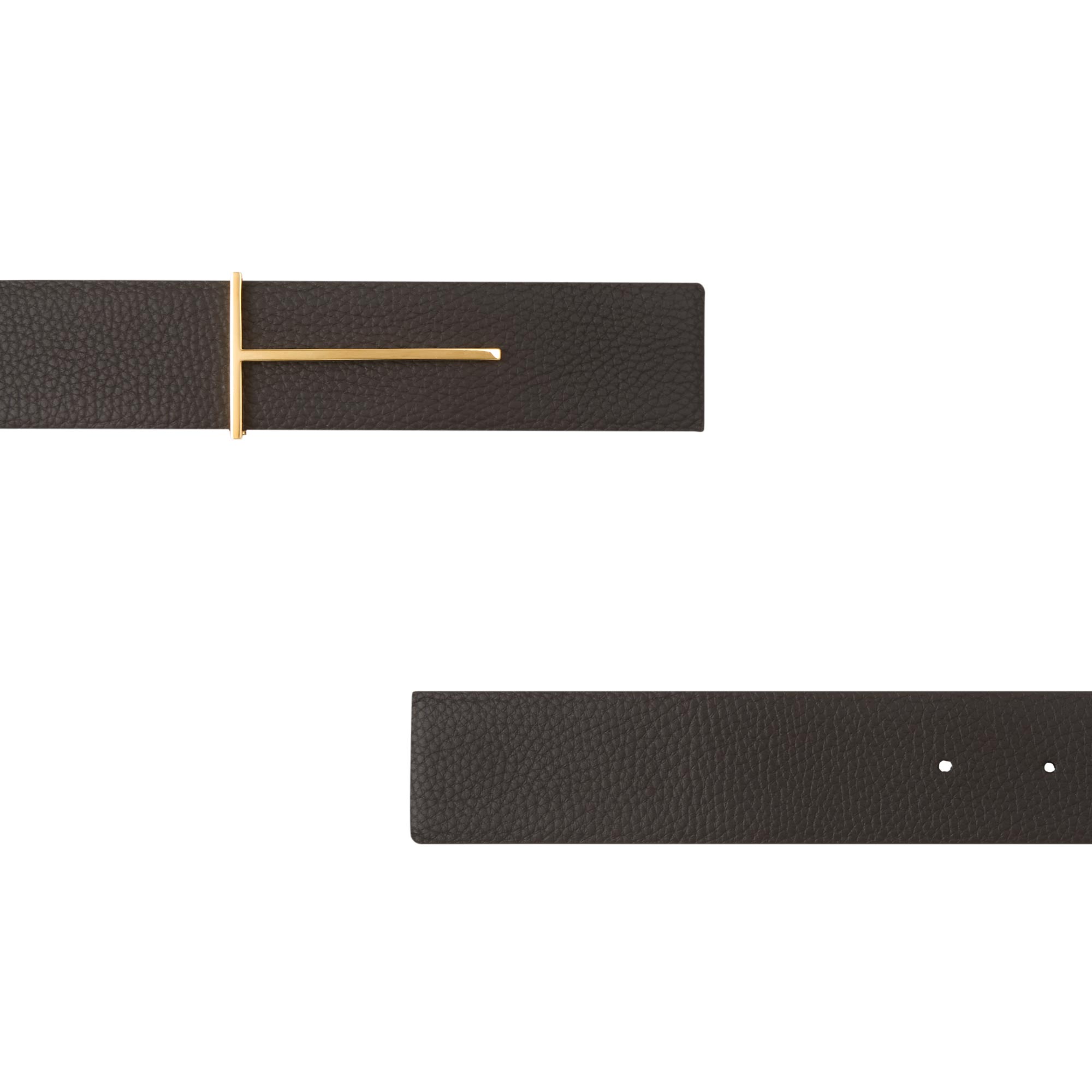 - Grained finish, reversible, T logo hardware, gold-toned hardware, square end