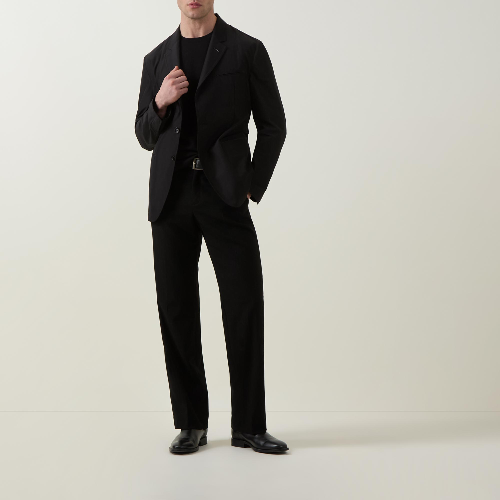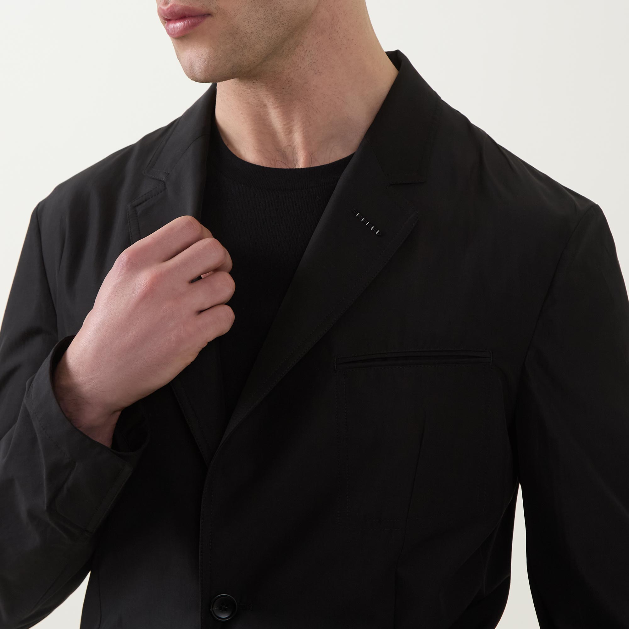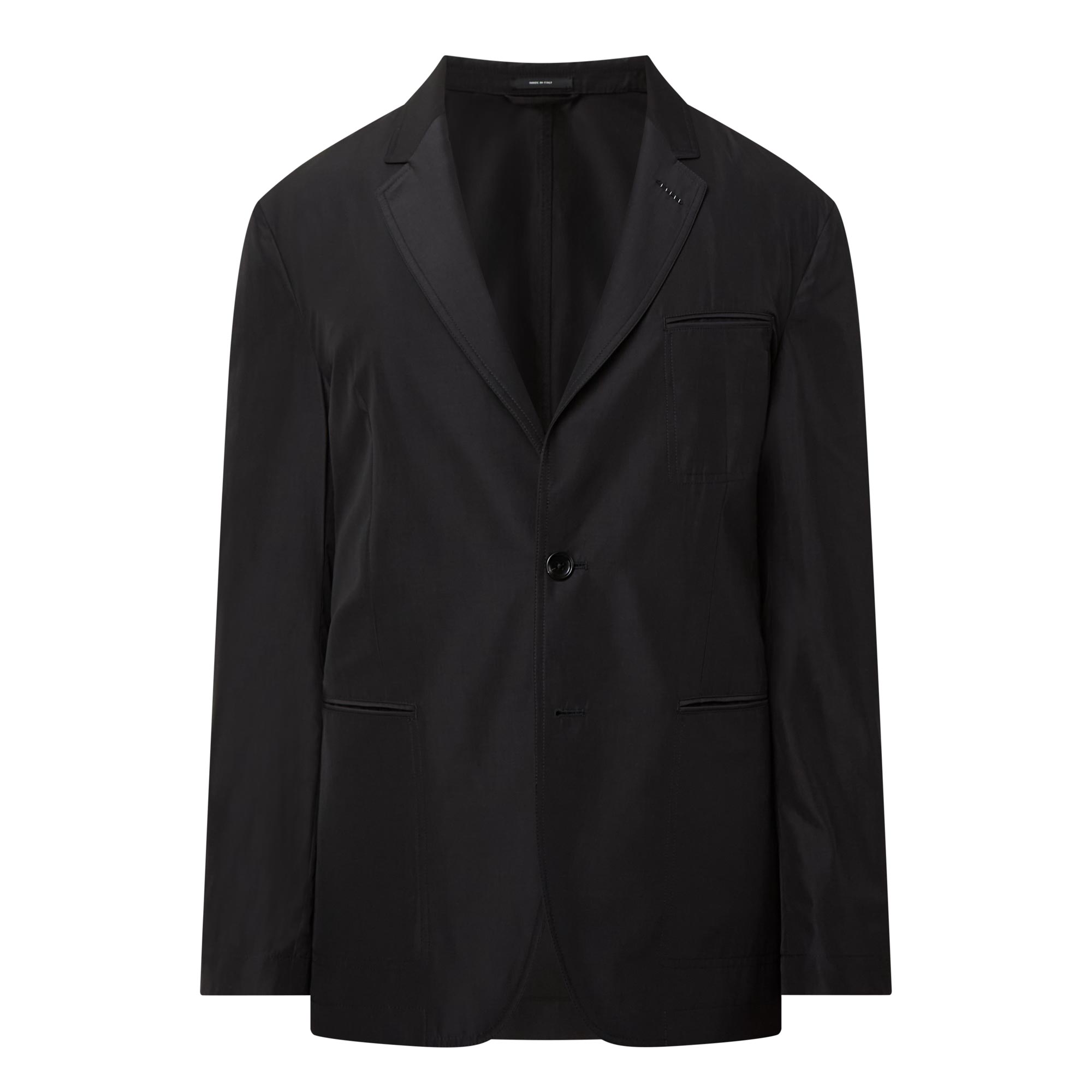 • Single breasted design, notch lapel collar, long sleeves, split cuffs, front button fastening, one chest and two hip jetted pockets, curved front hem, textured finish, lined