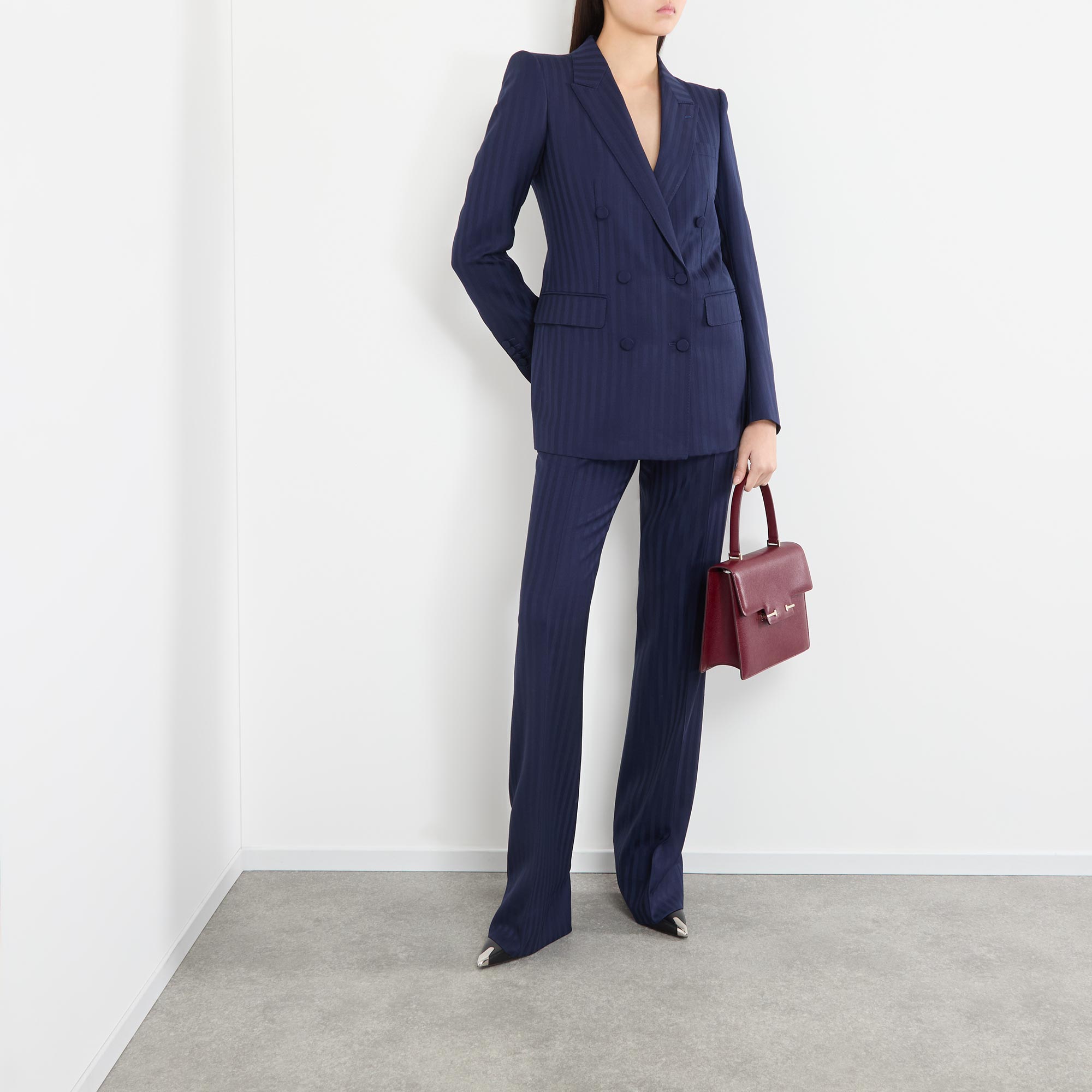 • Composition and Care: Main: 100% virgin wool. Lining: 59% cupro, 41% silk. Dry clean