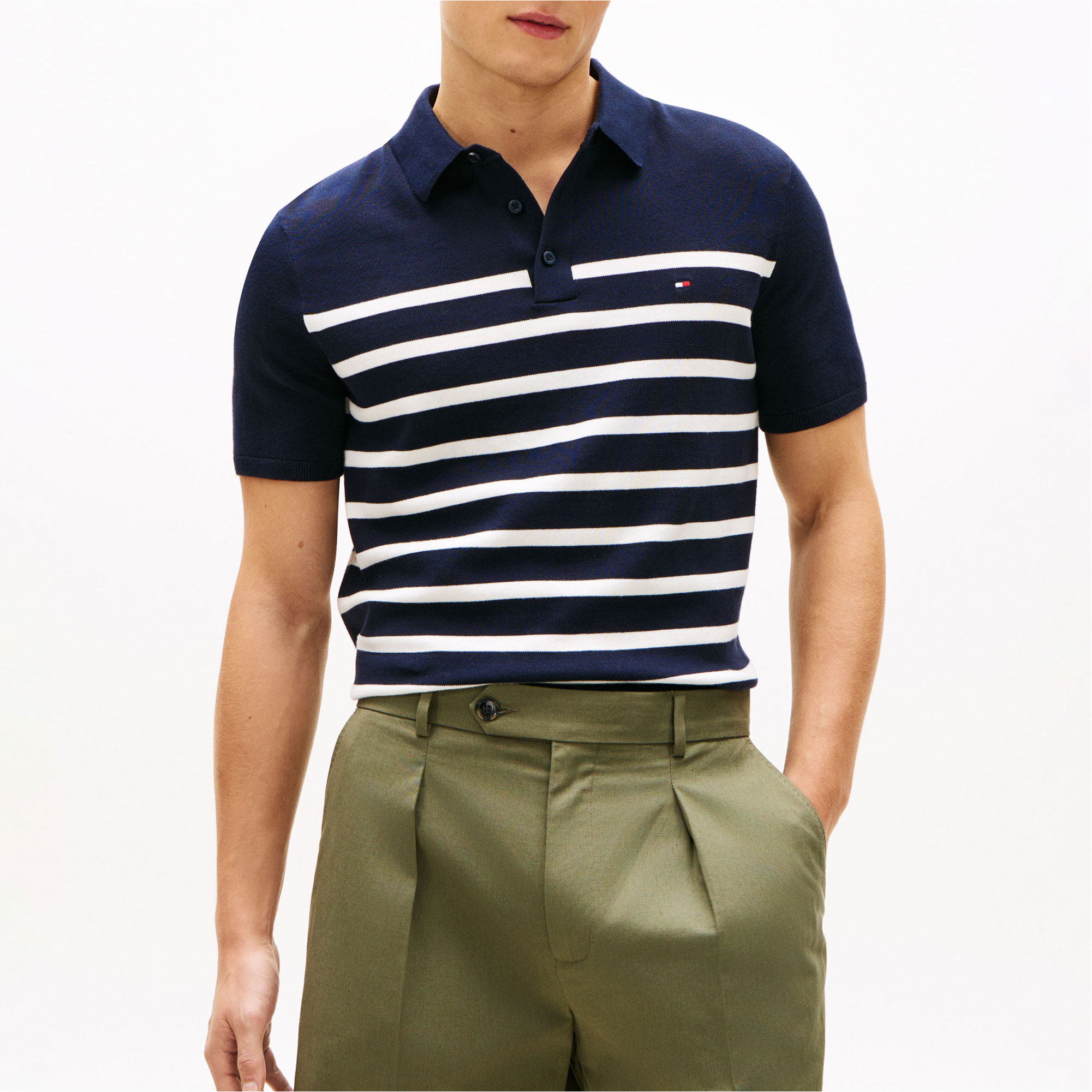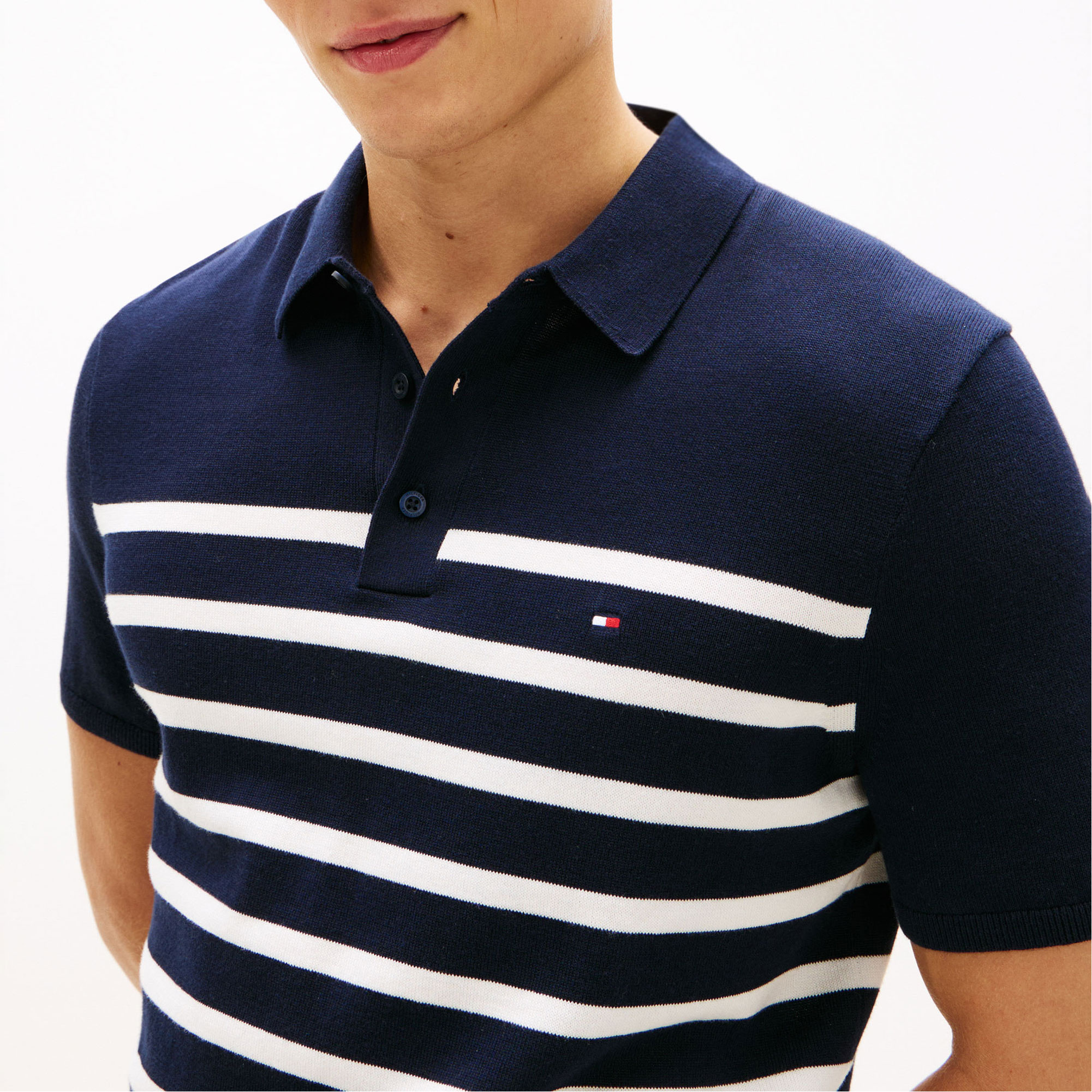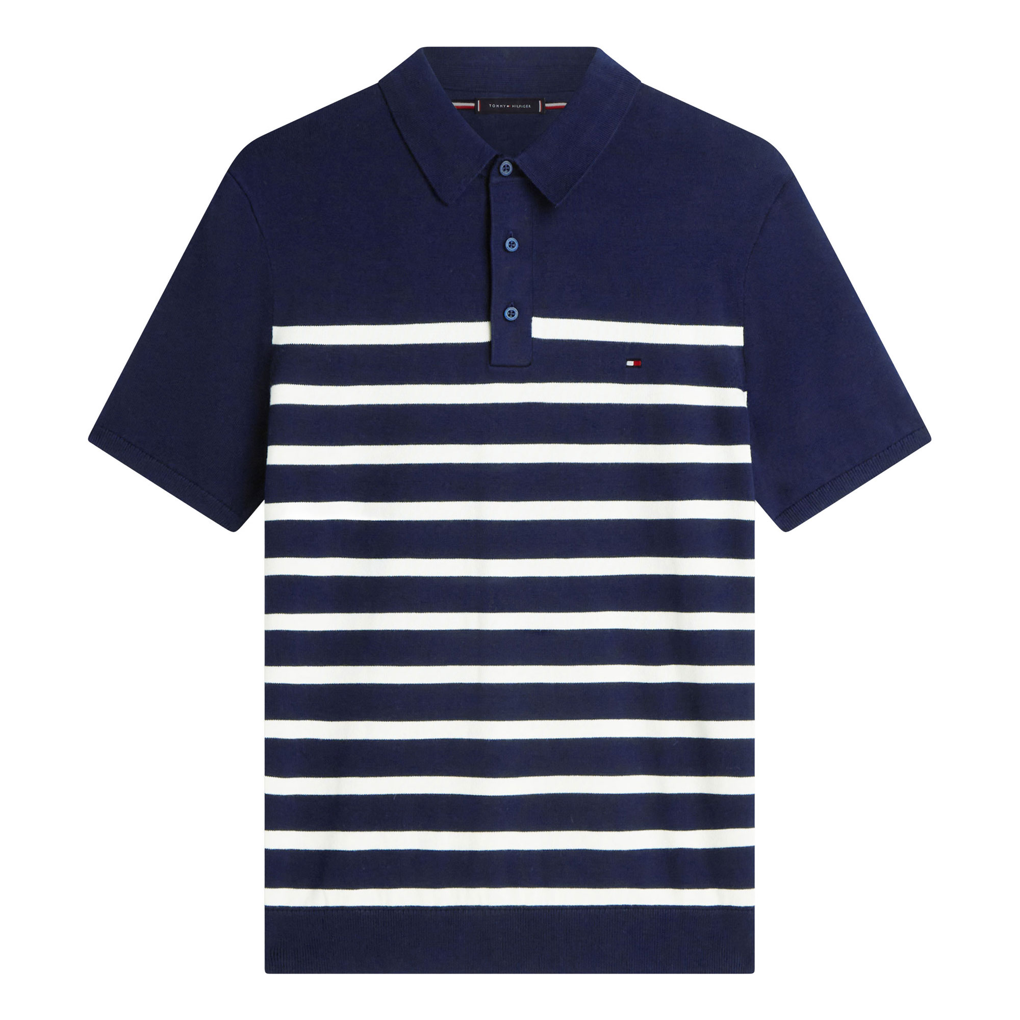 TOMMY HILFIGER Flag Logo Striped Knitted Polo Shirt