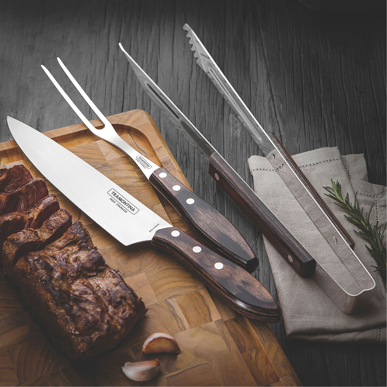 TRAMONTINA Wooden Handle 3 Piece Carving Set