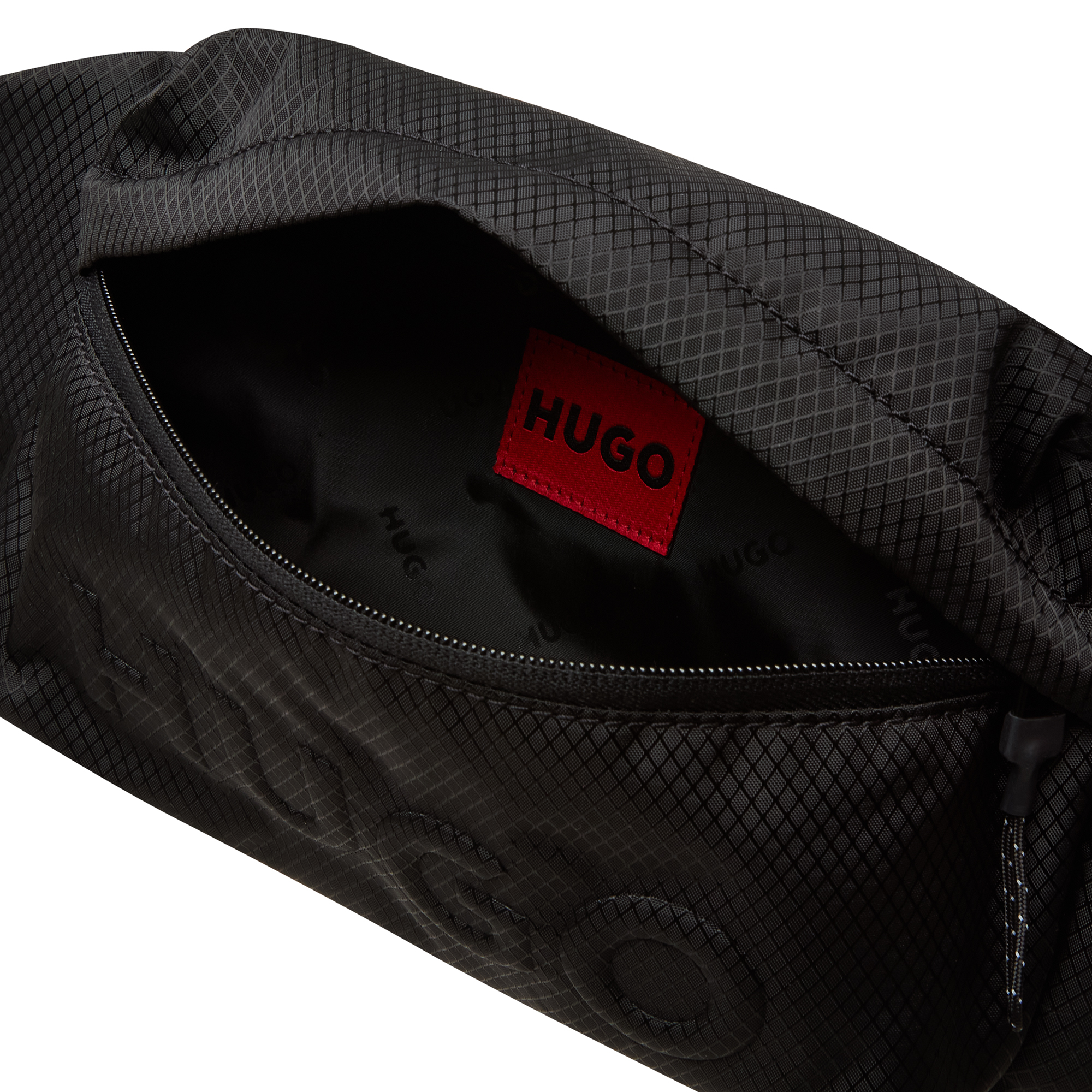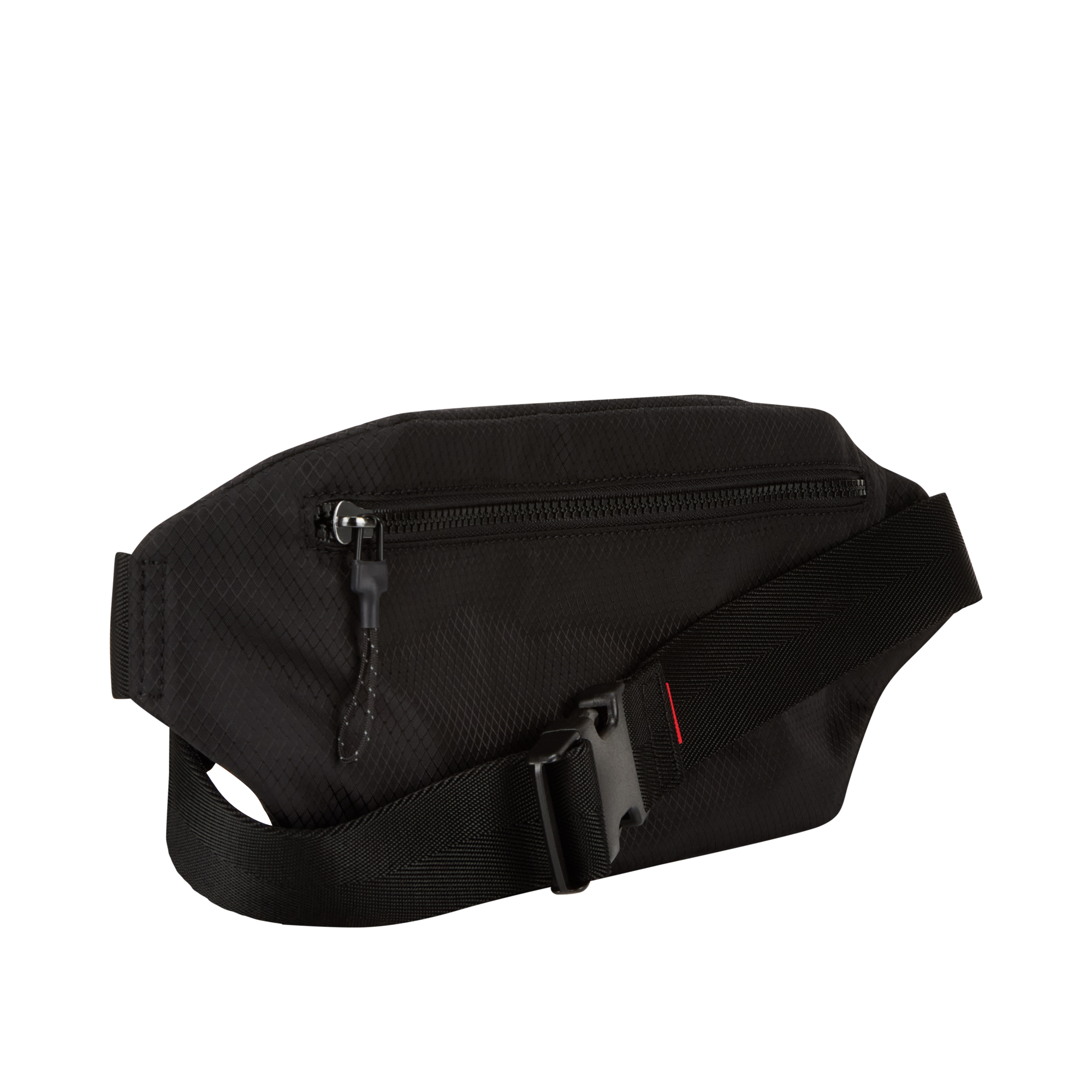 • Concealed zip closure, adjustable woven strap with buckle closure, tonal hardware, zipped pocket to the front and rear, logo details